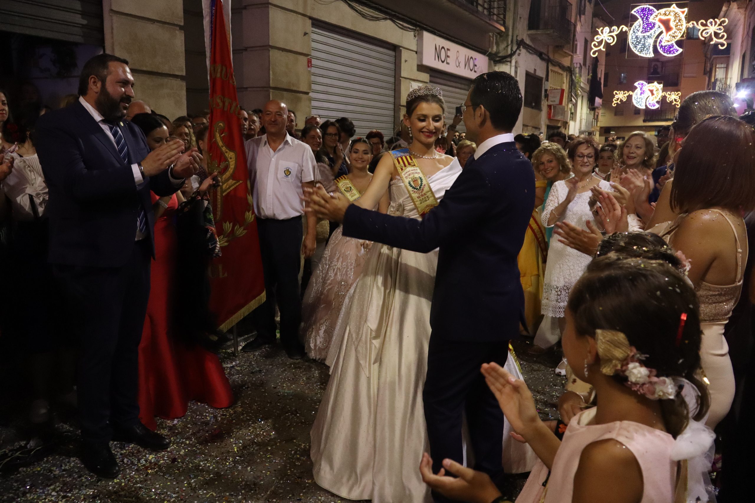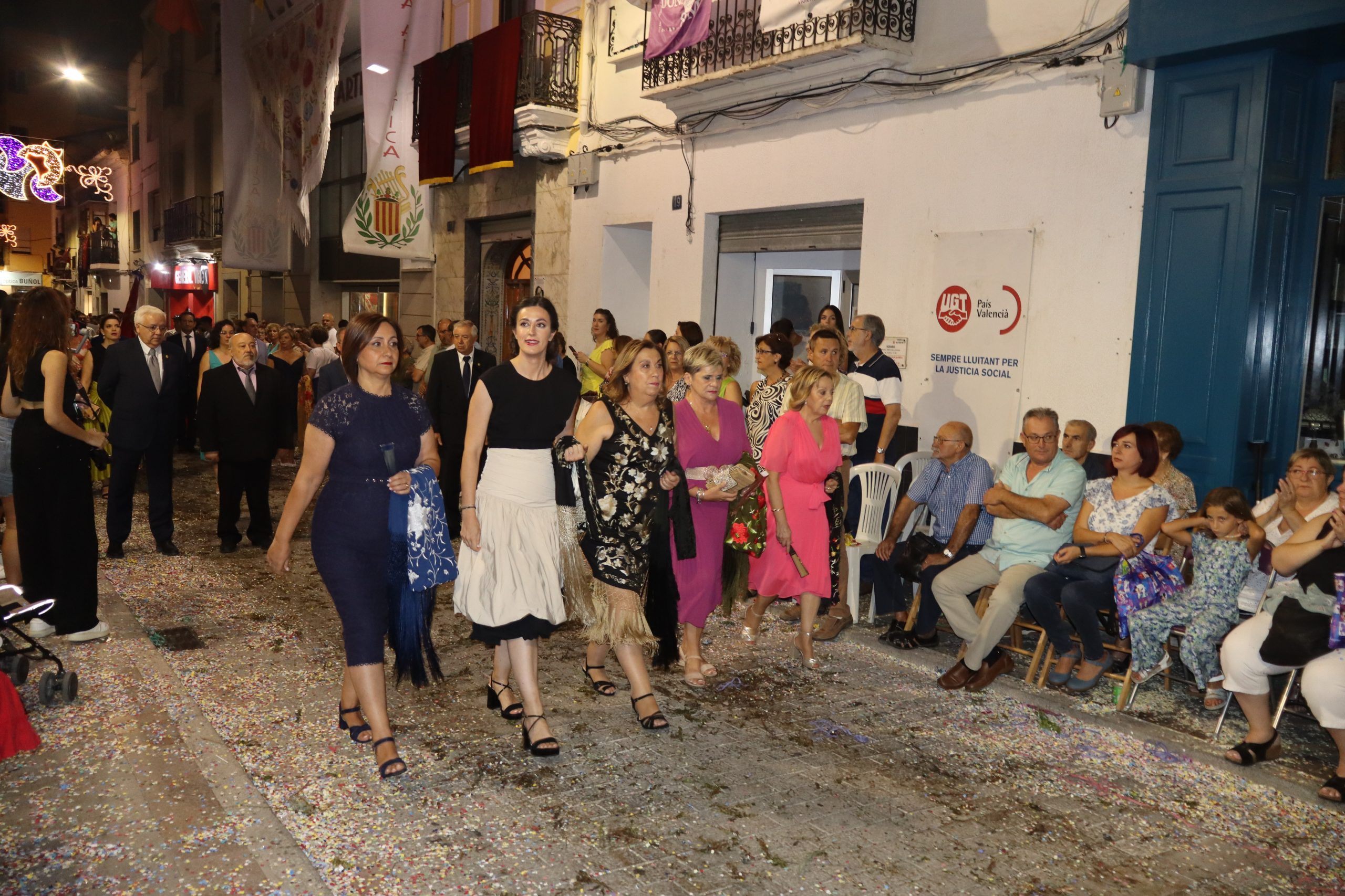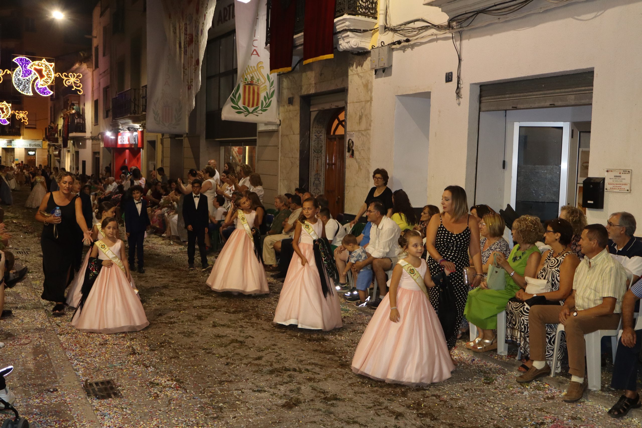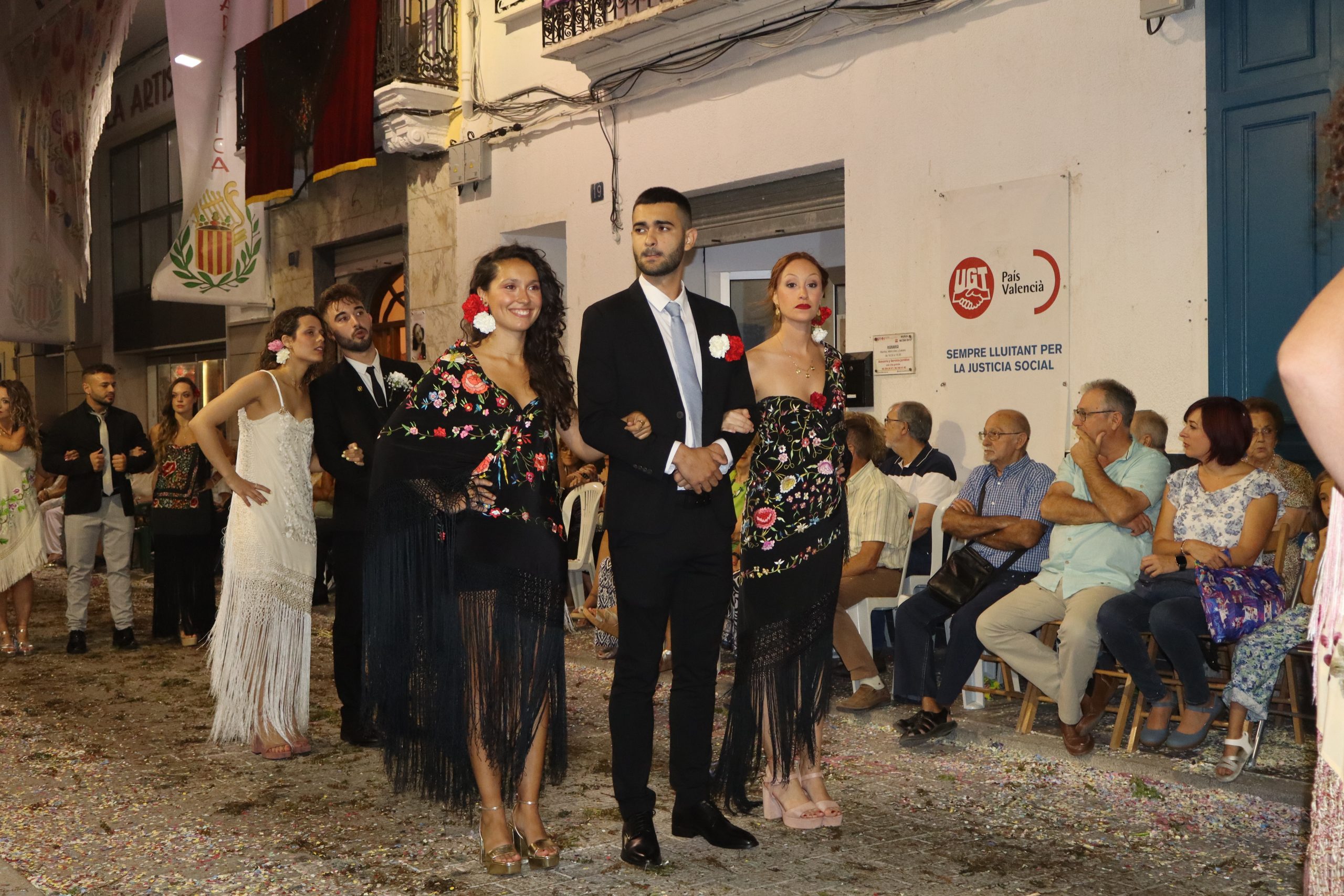 El desfile se cerró con la carroza de las Reinas y Representante del año pasado, mientras que las de este ejercicio –Paula Gisbert, Virginia Miñana Carrascosa y Sira Blanes García– desfilaron a pie por las calles buñolenses, acompañadas de diferentes formaciones musicales. La última, como no, «La Artística» de Buñol, dirigida por Mario Ortuño y que acompañaba a la Reina del «Mantón» y a la Junta Directiva, Presidida por Francisco Blasco.
