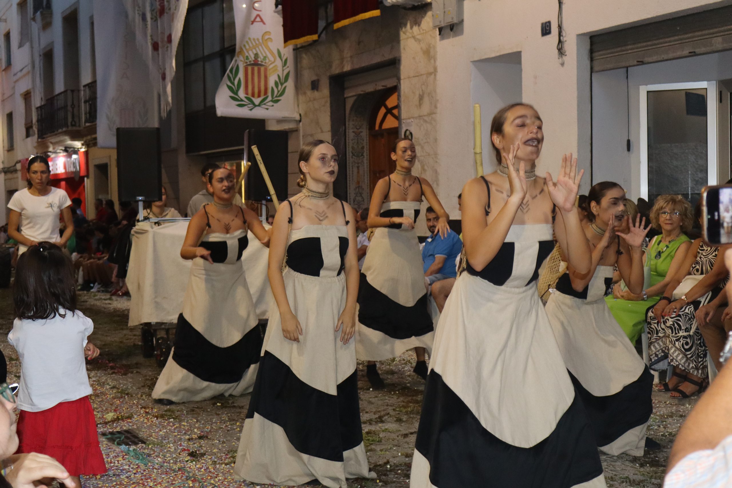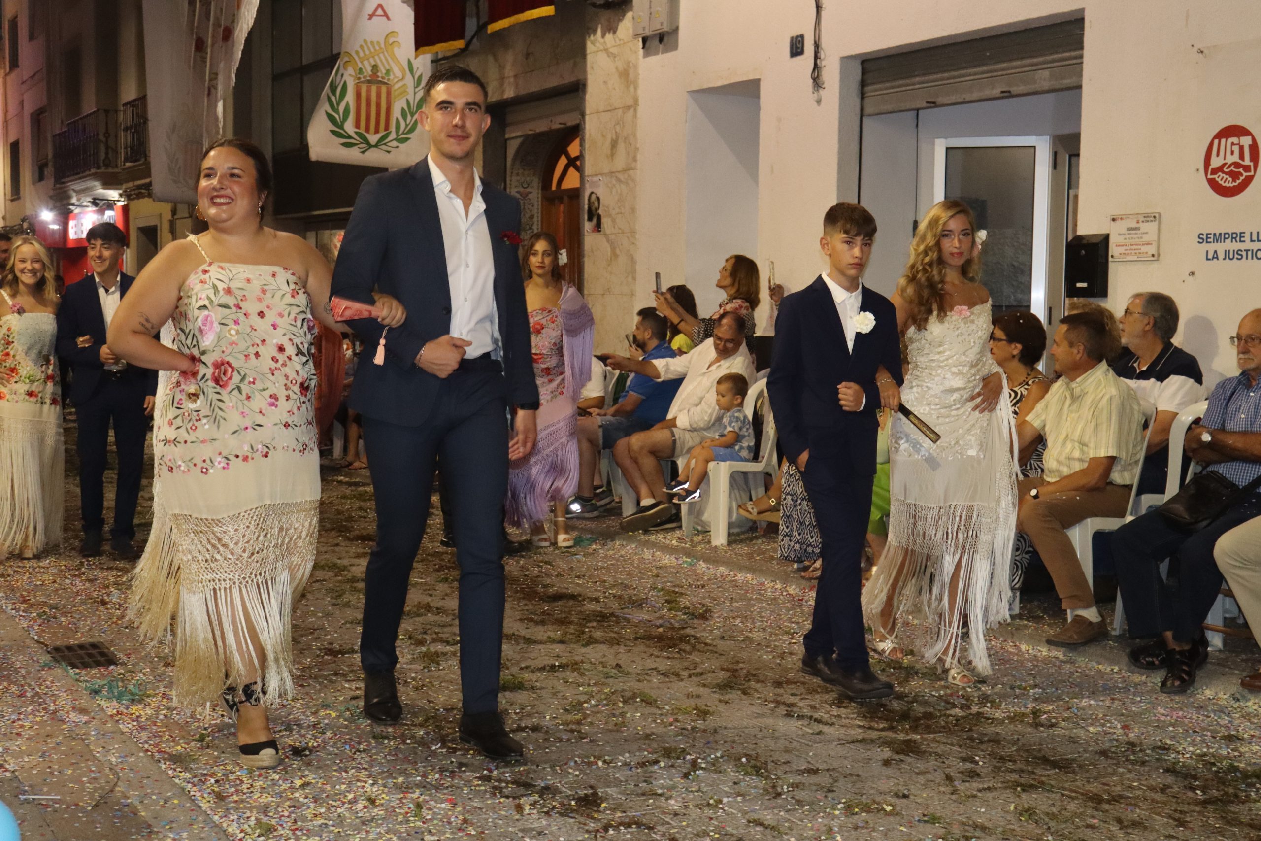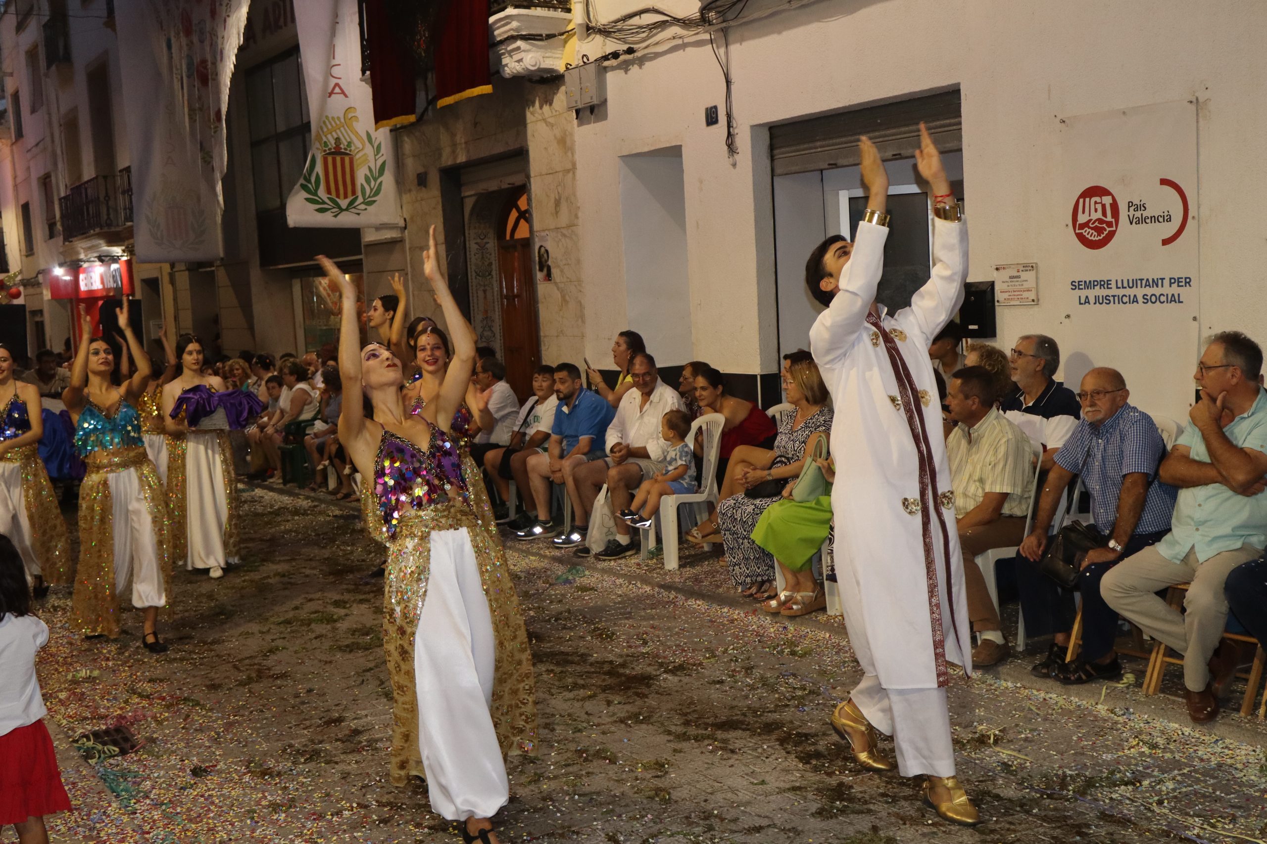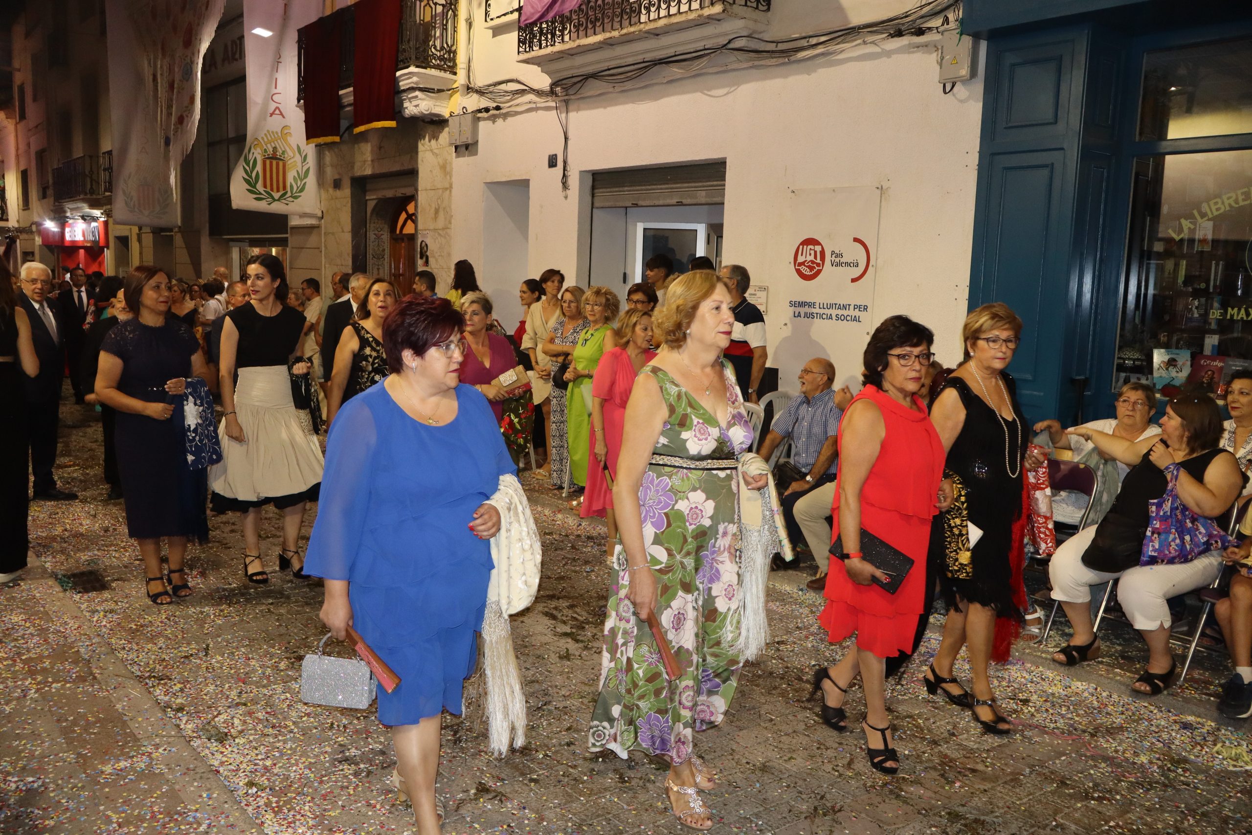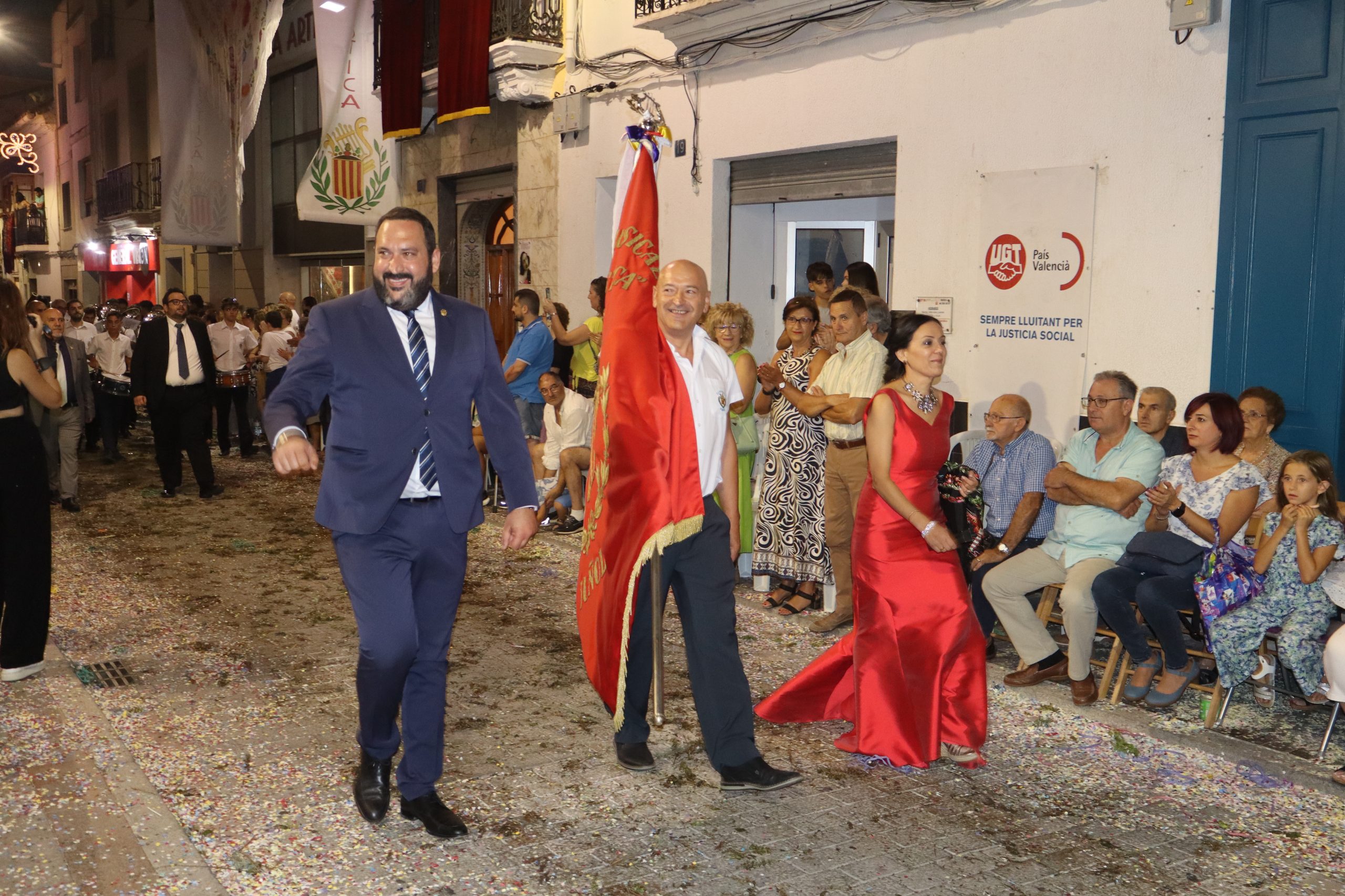 El desfile se cerró con la carroza de las Reinas y Representante del año pasado, mientras que las de este ejercicio –Paula Gisbert, Virginia Miñana Carrascosa y Sira Blanes García– desfilaron a pie por las calles buñolenses, acompañadas de diferentes formaciones musicales. La última, como no, «La Artística» de Buñol, dirigida por Mario Ortuño y que acompañaba a la Reina del «Mantón» y a la Junta Directiva, Presidida por Francisco Blasco.