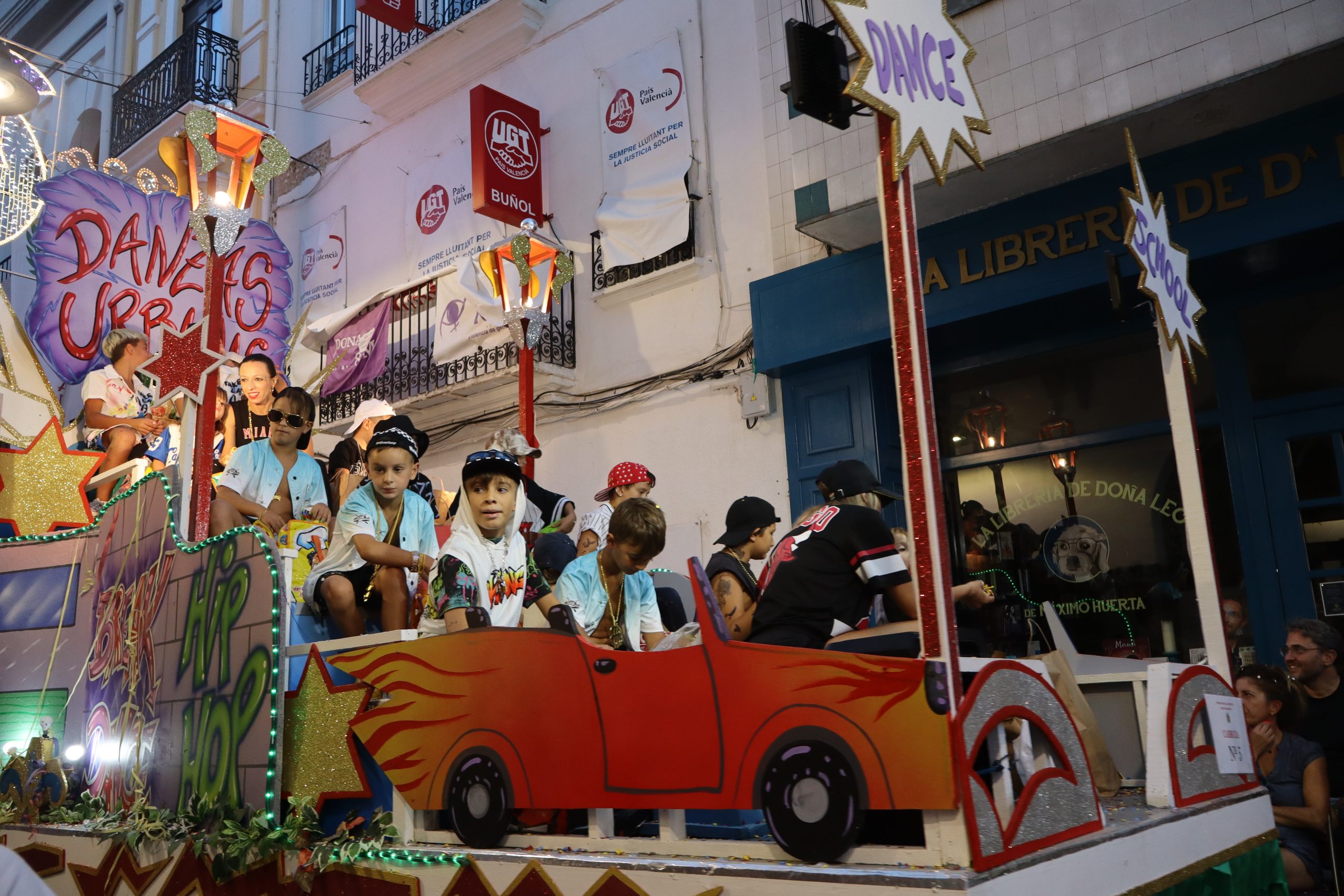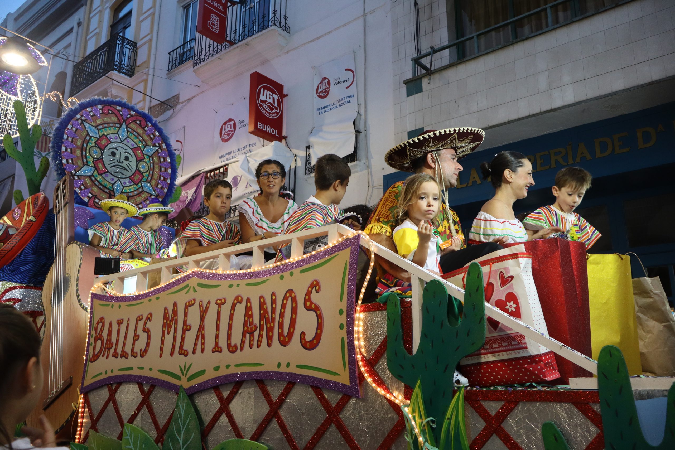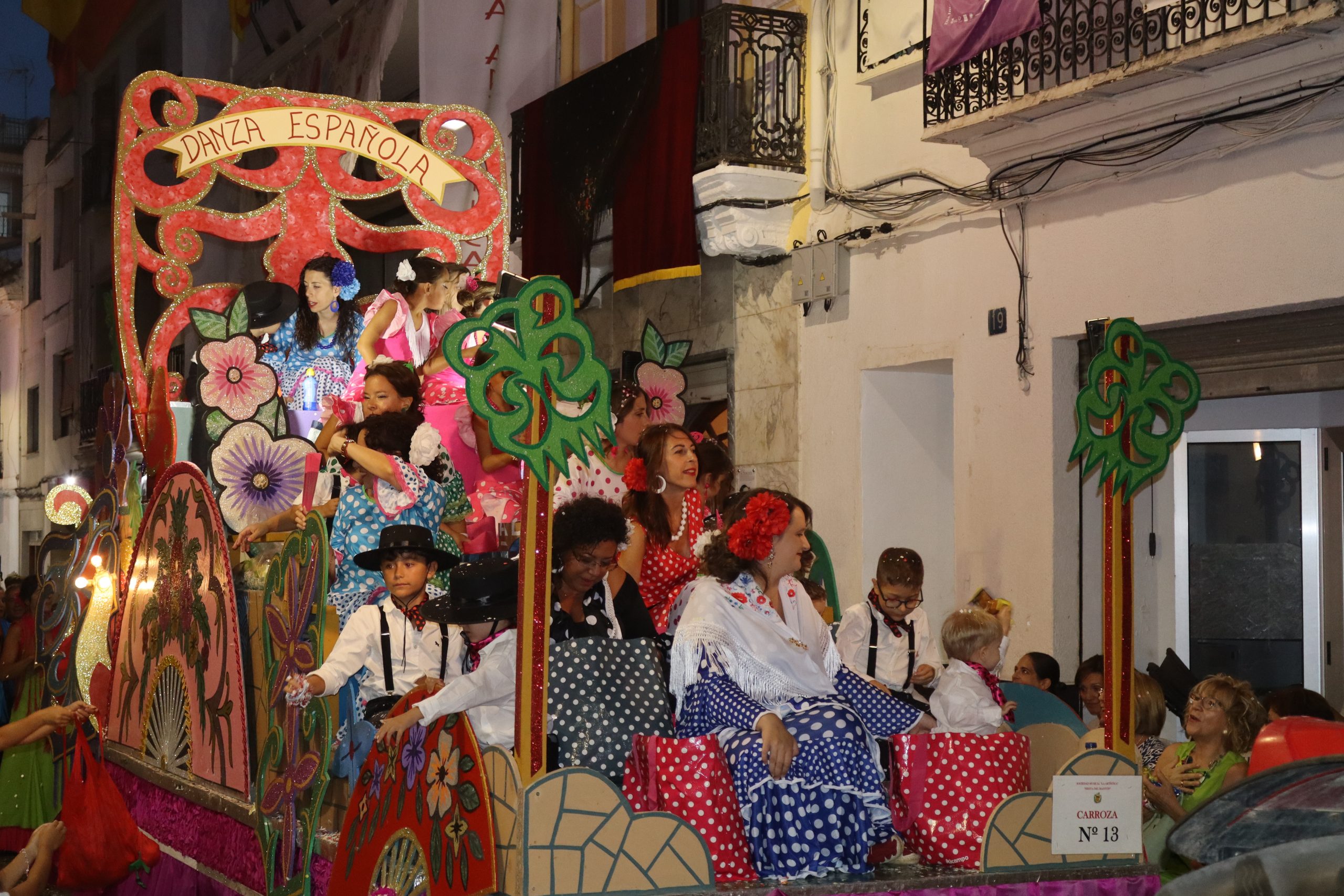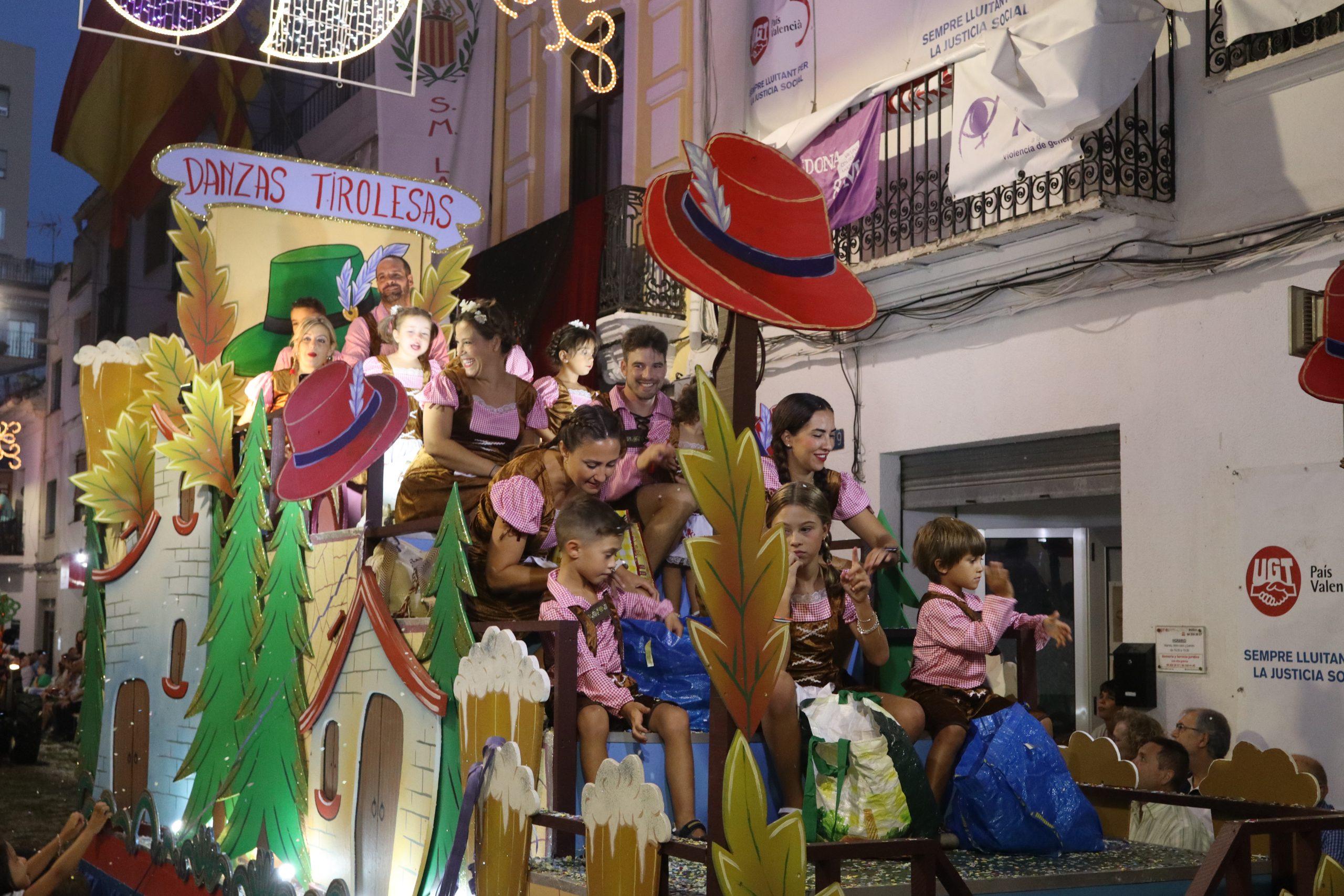 Hacia las 20h, desde la Avenida de la Violeta las comparsas de baile, las formaciones musicales, las carrozas temáticas llenas de madres, padres y niñas y niños bajo el lema «Bailes del mundo», sirvieron para abrir boca al numeroso público que se agolpó a lo largo del recorrido de la cabalgata a un lado y a otro de las aceras.
