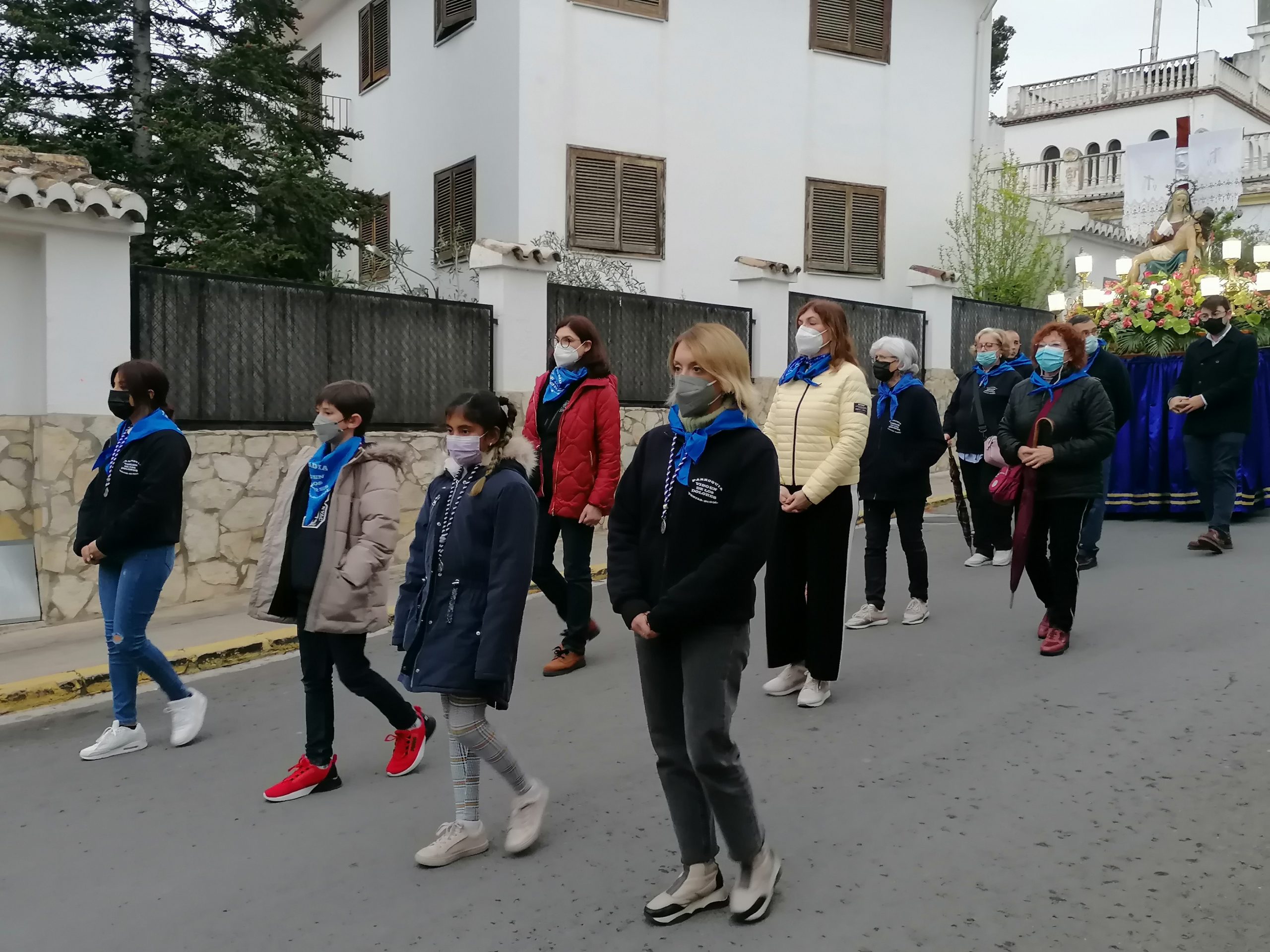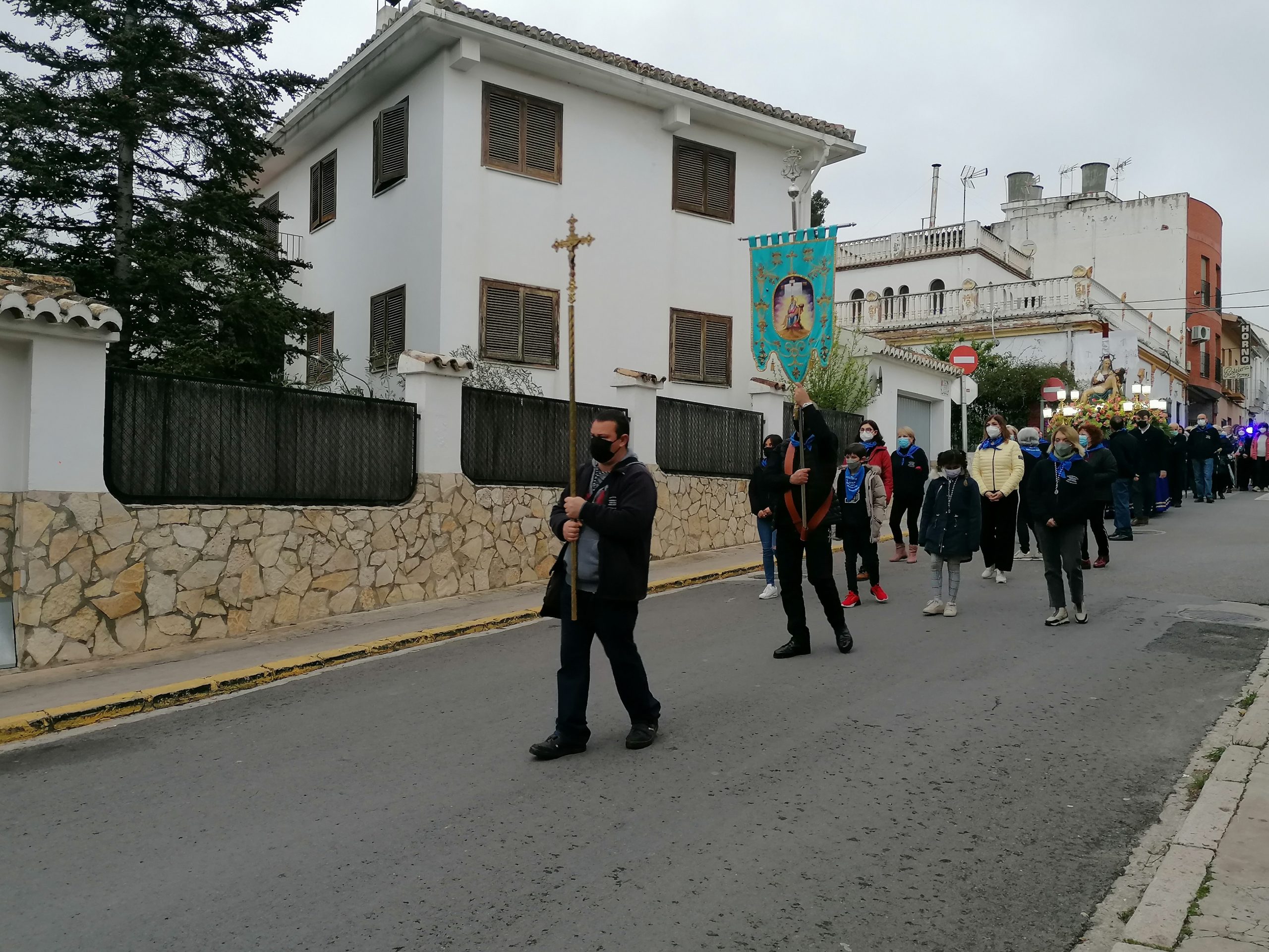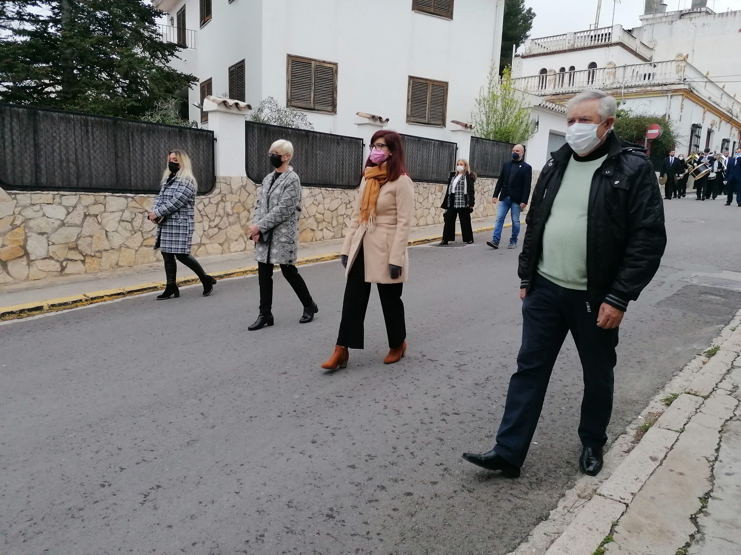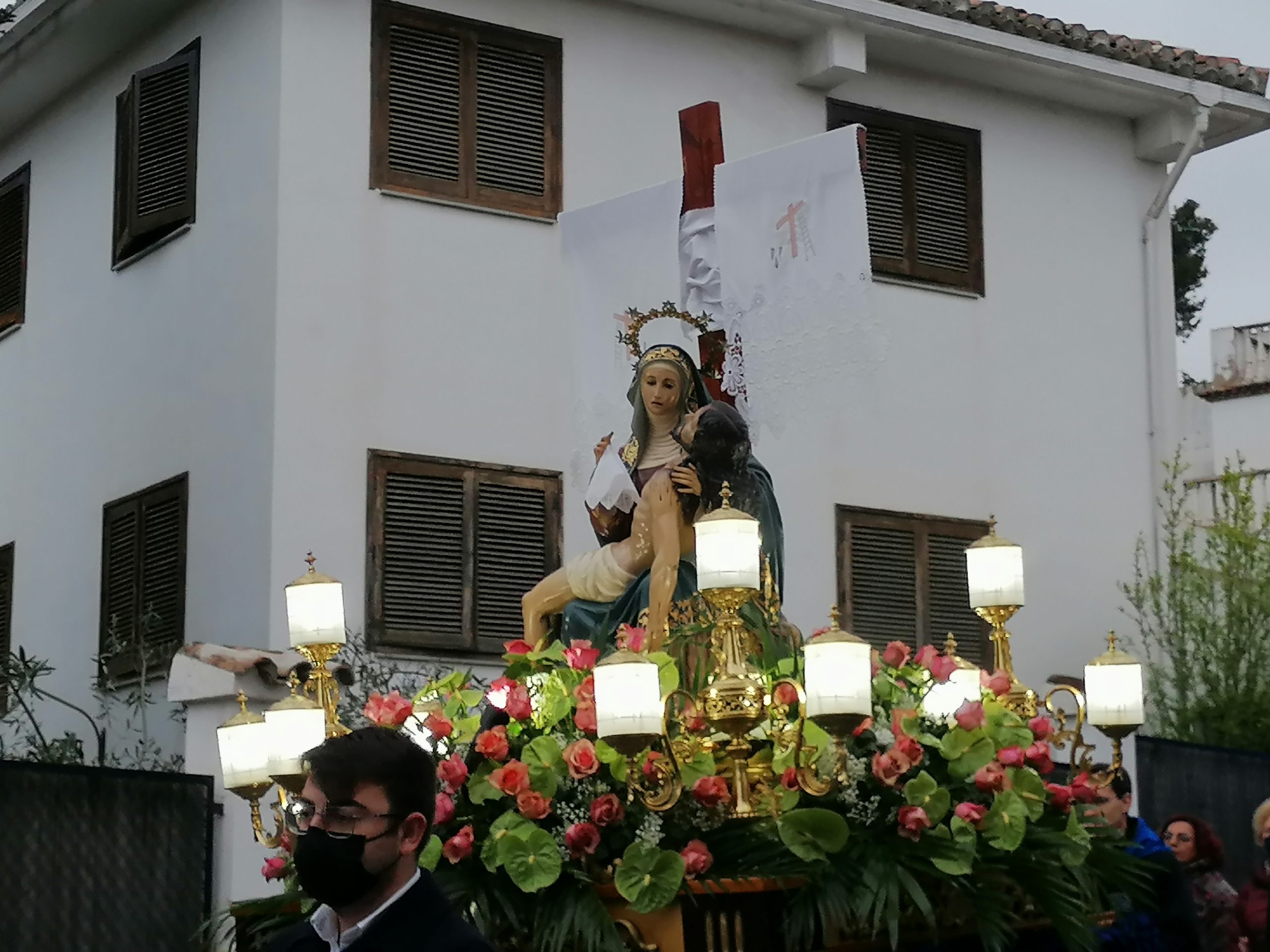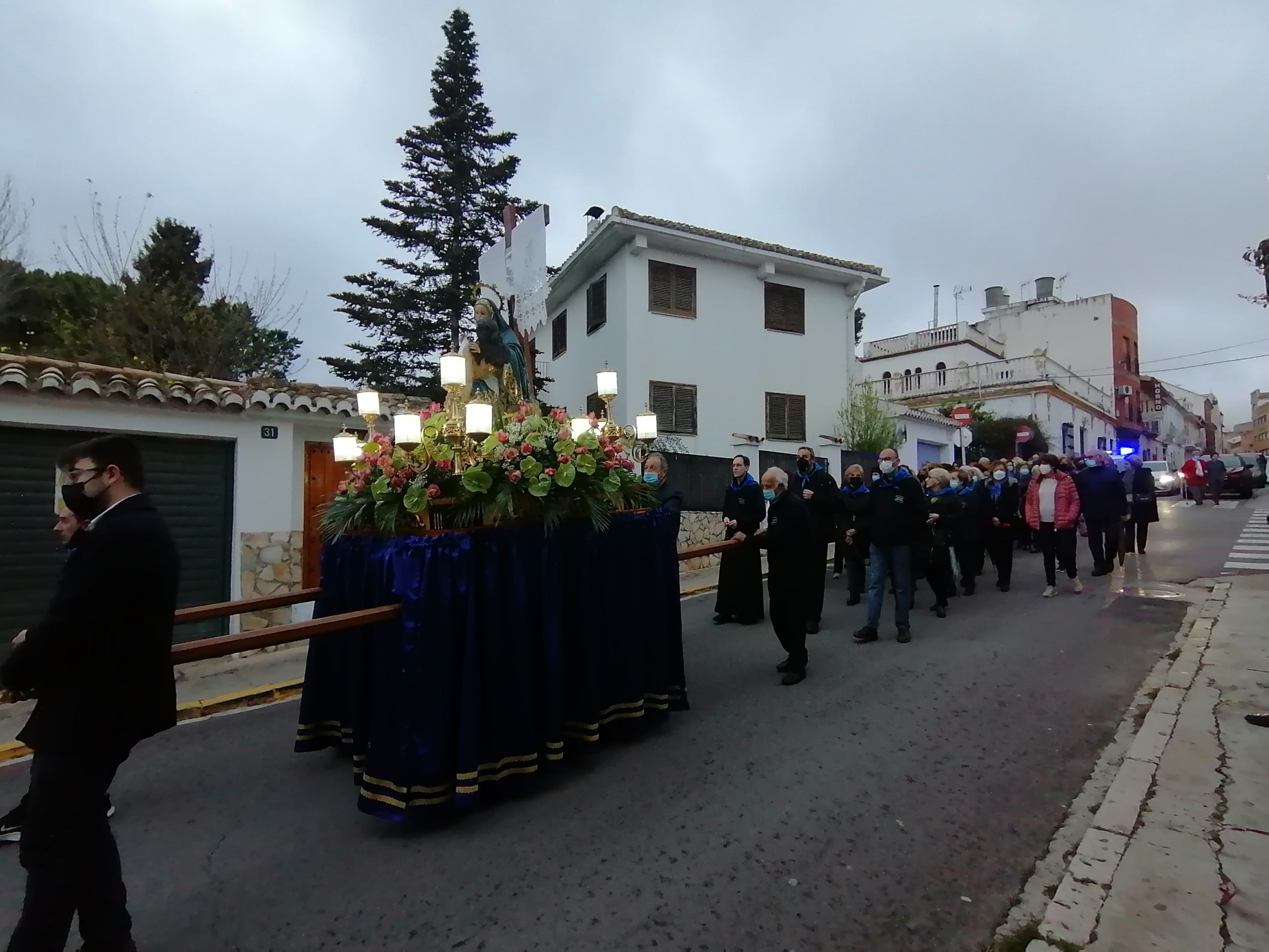 Ya por la tarde, sobre las ocho, se realizó el traslado en romería de la Virgen Ntra. Sra. de los Dolores, que estrenaba restauración de la mano de la restauradora buñolense Alicia Hernández Vallés. Esta romería estuvo presidida por párroco de localidad Enrique Boronat, junto a los vicarios parroquiales Arturo y Borja, acompañados por la junta directiva y la banda de la Sociedad Musical la Artística. También asistieron las clavarias, clavarios y la junta directiva de la cofradía.