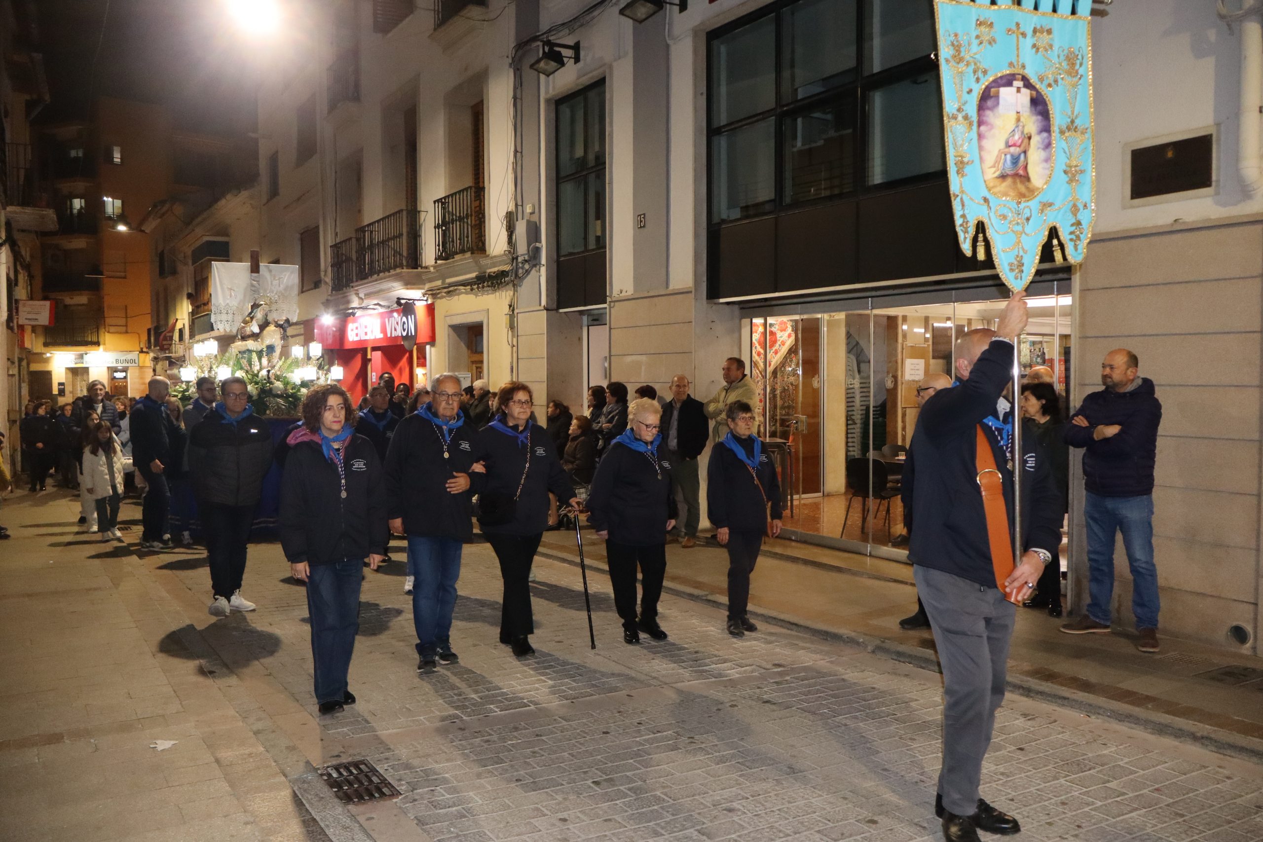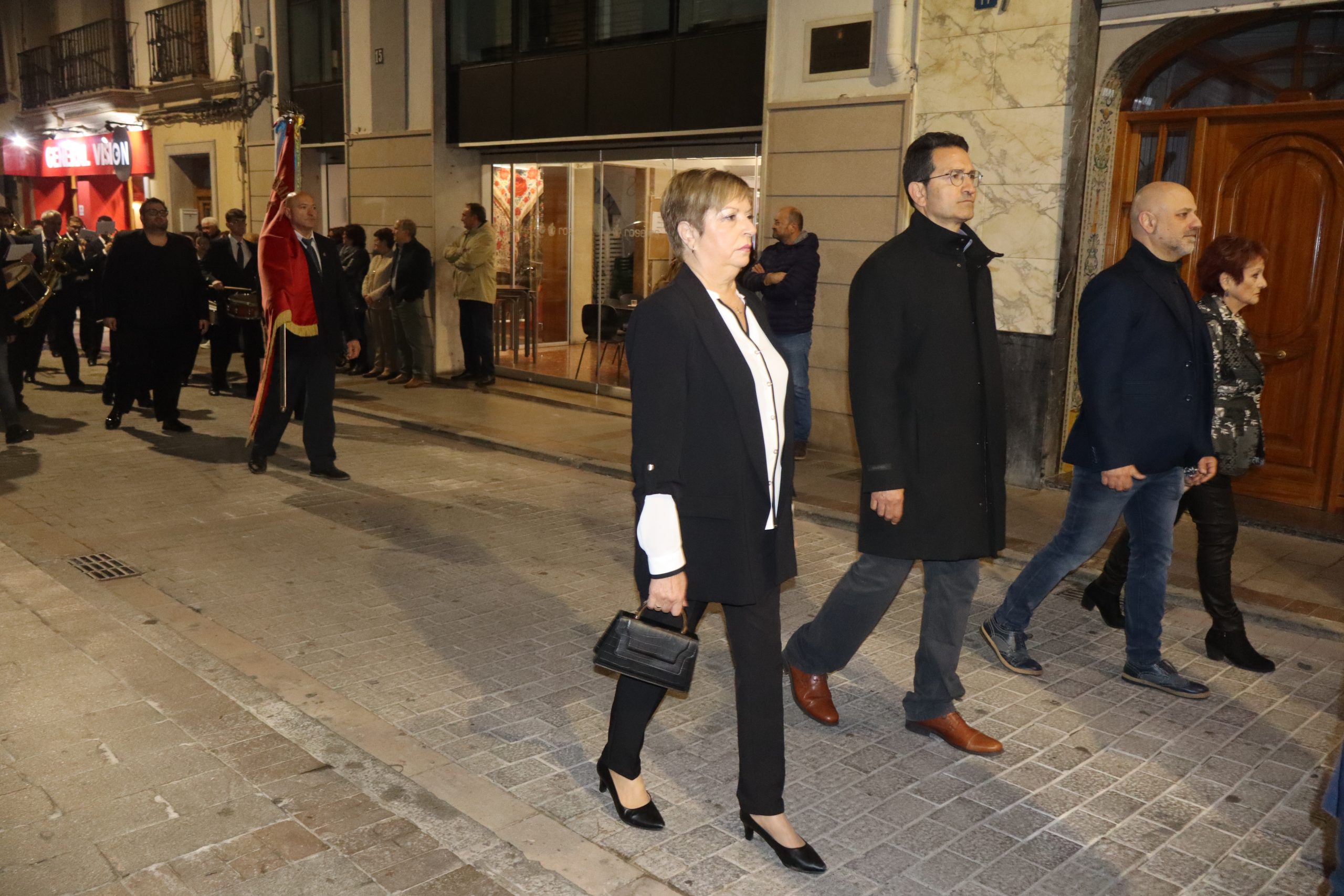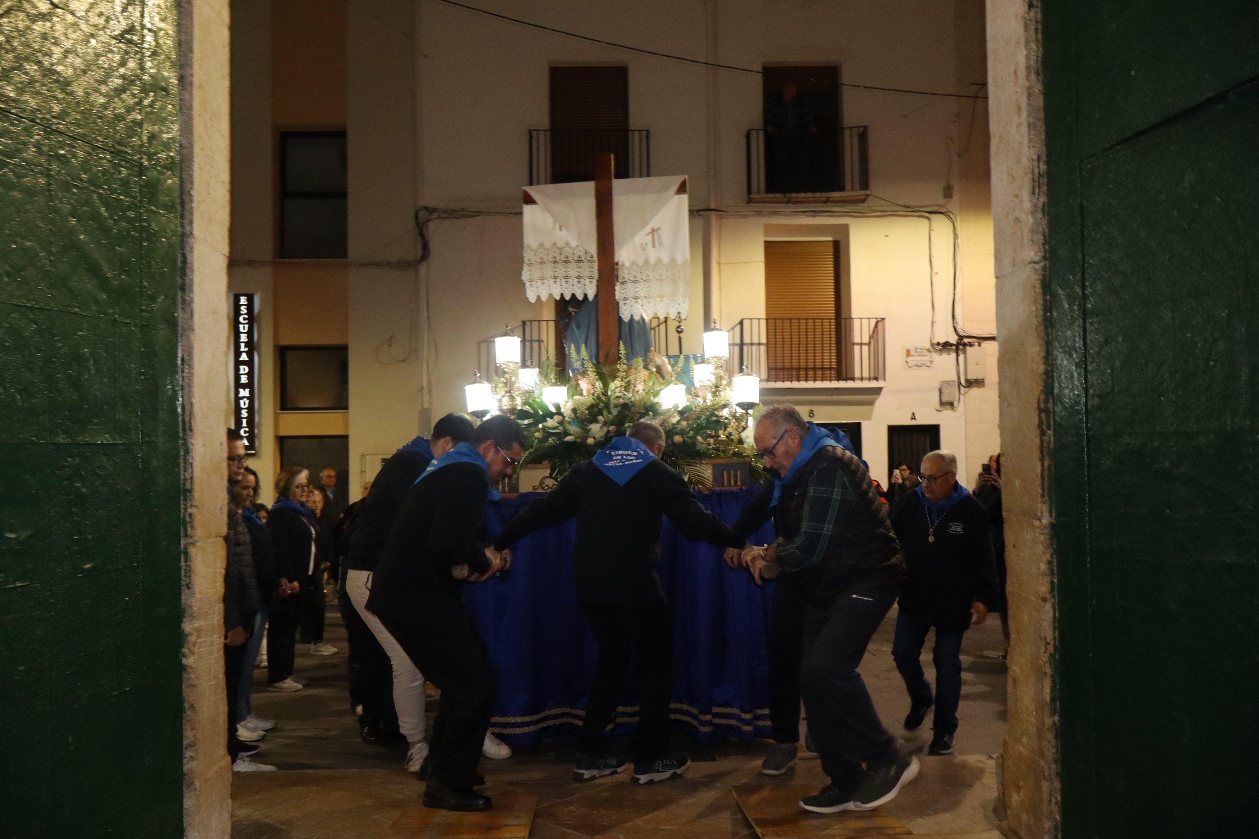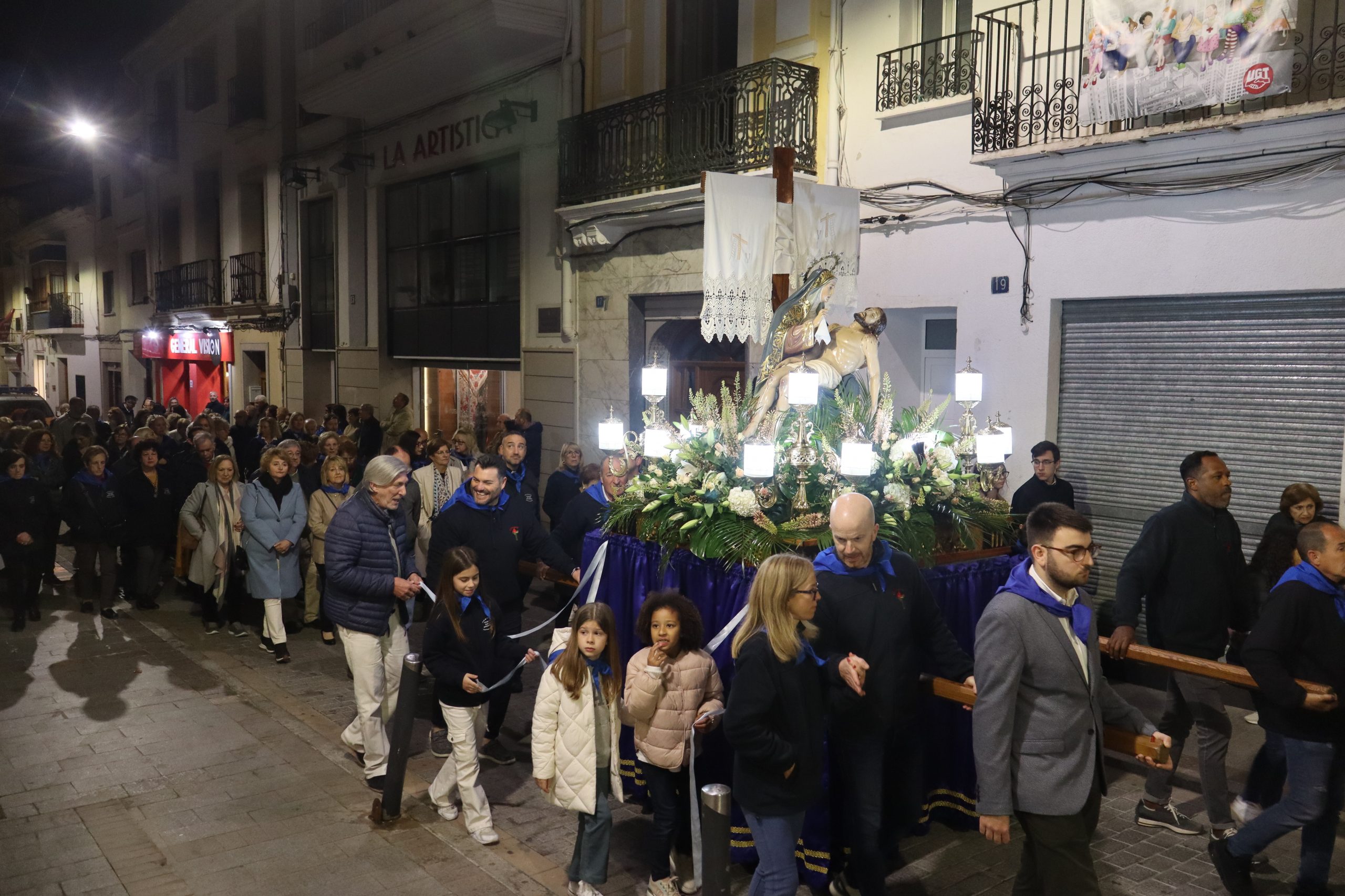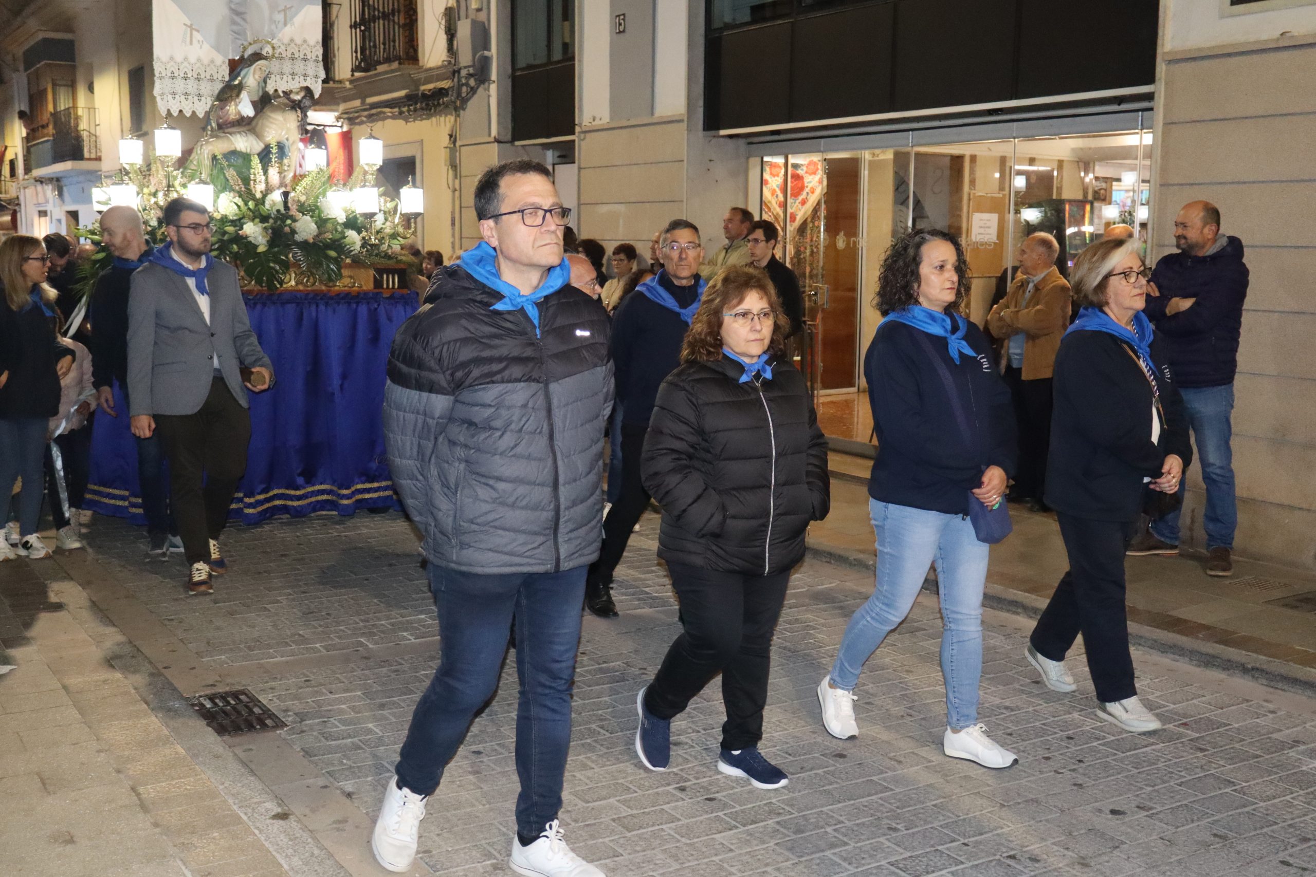 Ya por la tarde, a las ocho, se realizó el traslado en romería de la Virgen Nuestra Señora de los Dolores desde la parroquia que lleva su nombre hasta iglesia de San Pedro Apóstol. Esta romería fue presidida por párroco de localidad Enrique Boronat y los vicarios parroquiales Arturo y Borja, que estuvieron acompañados por la alcaldesa de la localidad, Virginia Sanz y el equipo de gobierno. También participaron las reinas del Mantón, la junta directiva y la banda del Sociedad Musical La Artística. En la procesión participaron además, los clavarios y los cofrades de honor y la junta directiva de la cofradía.