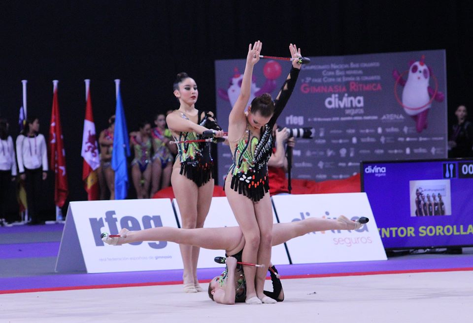 El Club de Gimasia Rítmica inició su andadura en el nacional base de conjuntos el jueves por la tarde con el conjunto Benjamín (Paola Iranzo, Amaia Fuertes, Anna Isabel María, Alba Giménez y Anna Castillo) que a pesar de algún fallito que las dejó fuera del podium, obtuvieron una 6° posición y su merecido diploma nacional.