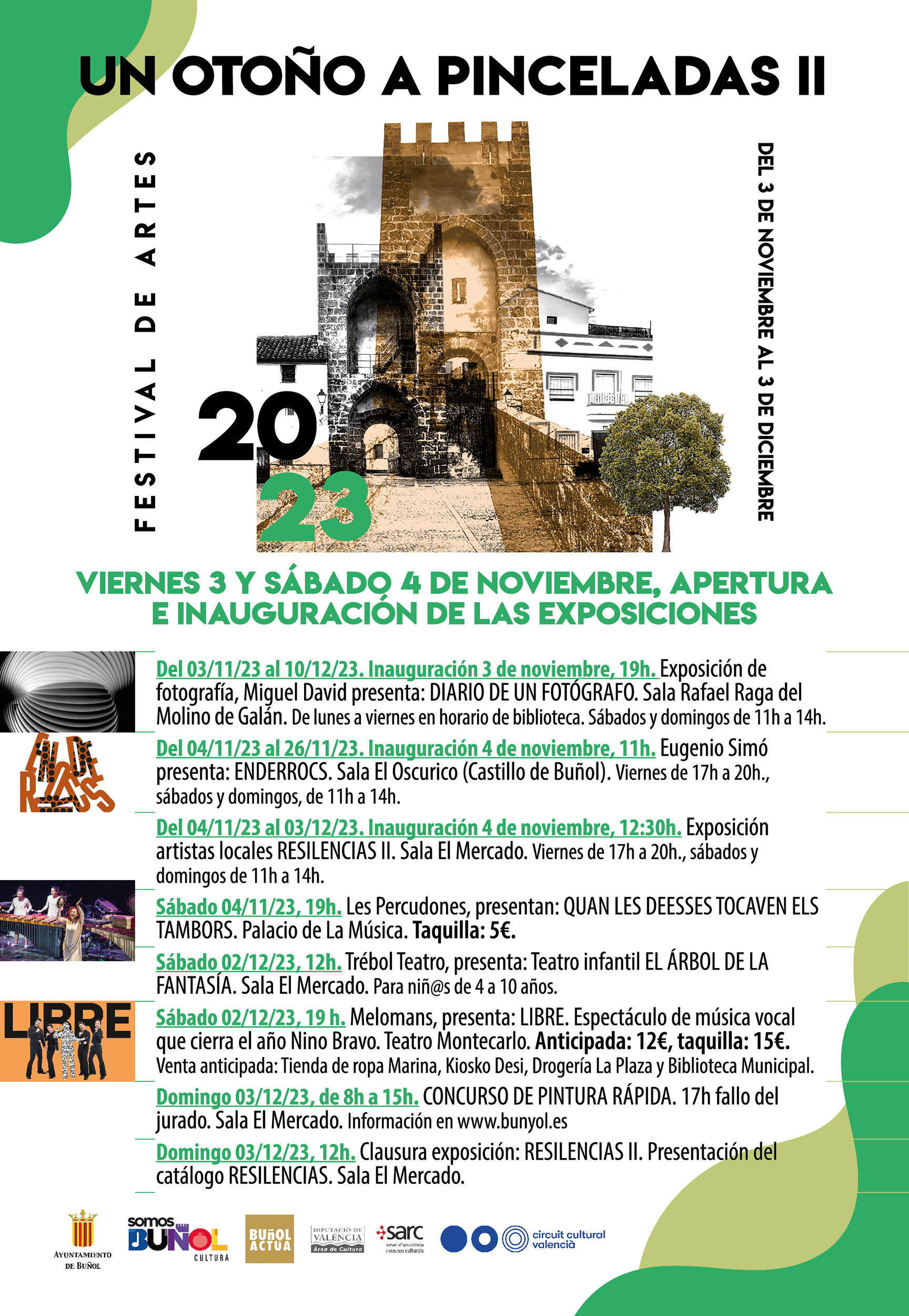Redacción.- La localidad de Buñol se volverá a llenar de arte este mes de noviembre con el Festival de arte «Otoño a pinceladas». Los actos, que serán para todos los públicos, regresan este fin de semana y se extenderán durante todo el mes. Aquí os dejamos el programa: