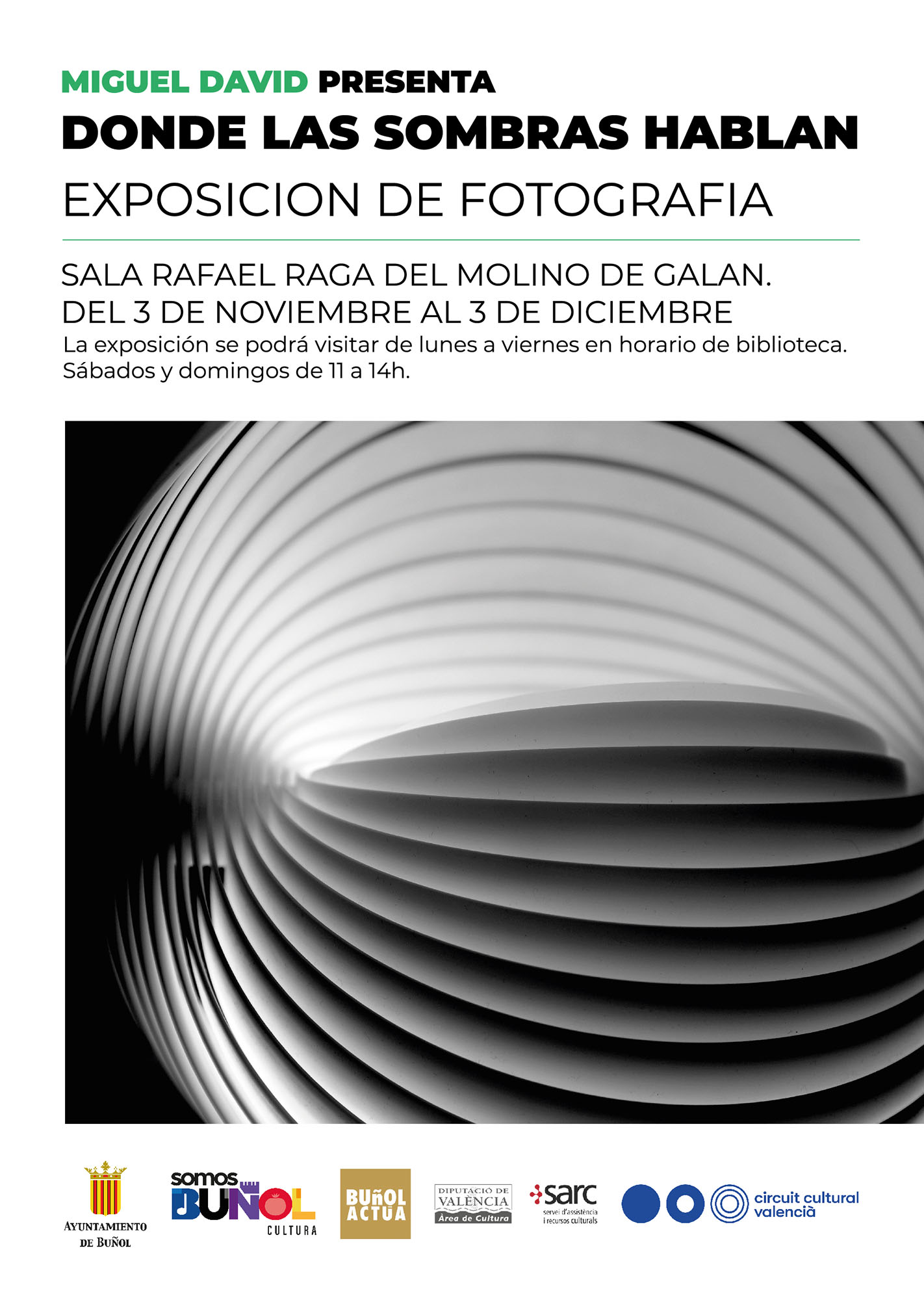 EXPOSICIÓN DE FOTOGRAFIA MIGUEL DAVID PRESENTA: “DONDE LAS SOMBRAS HABLAN”. LA EXPOSICIÓN SE PODRA VISITAR HASTA EL 10 DE DICIEMBRE DE LUNES A VIERNES EN HORARIO DE BIBLIOTECA y SÁBADOS Y DOMINGOS DE 11 A 14H