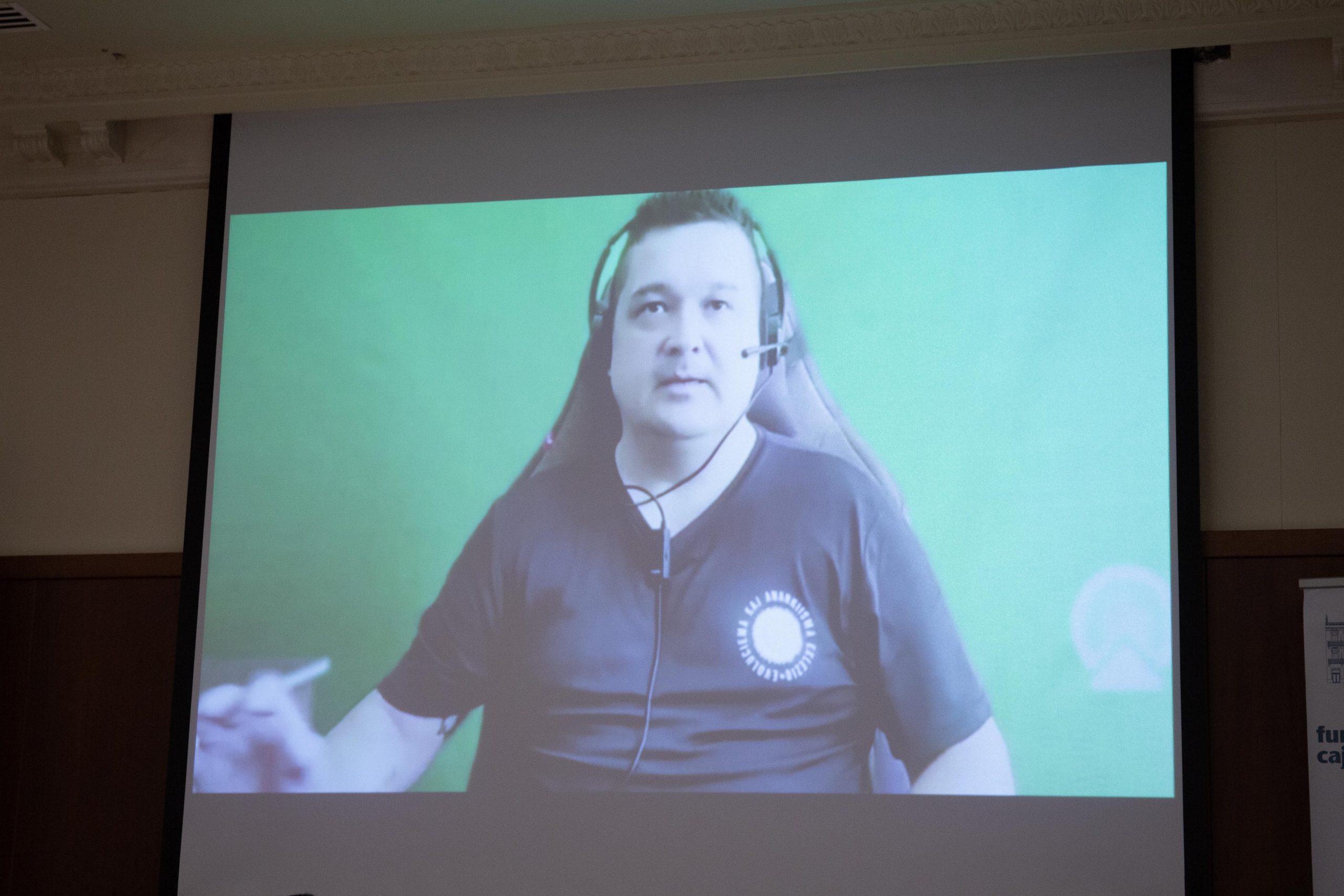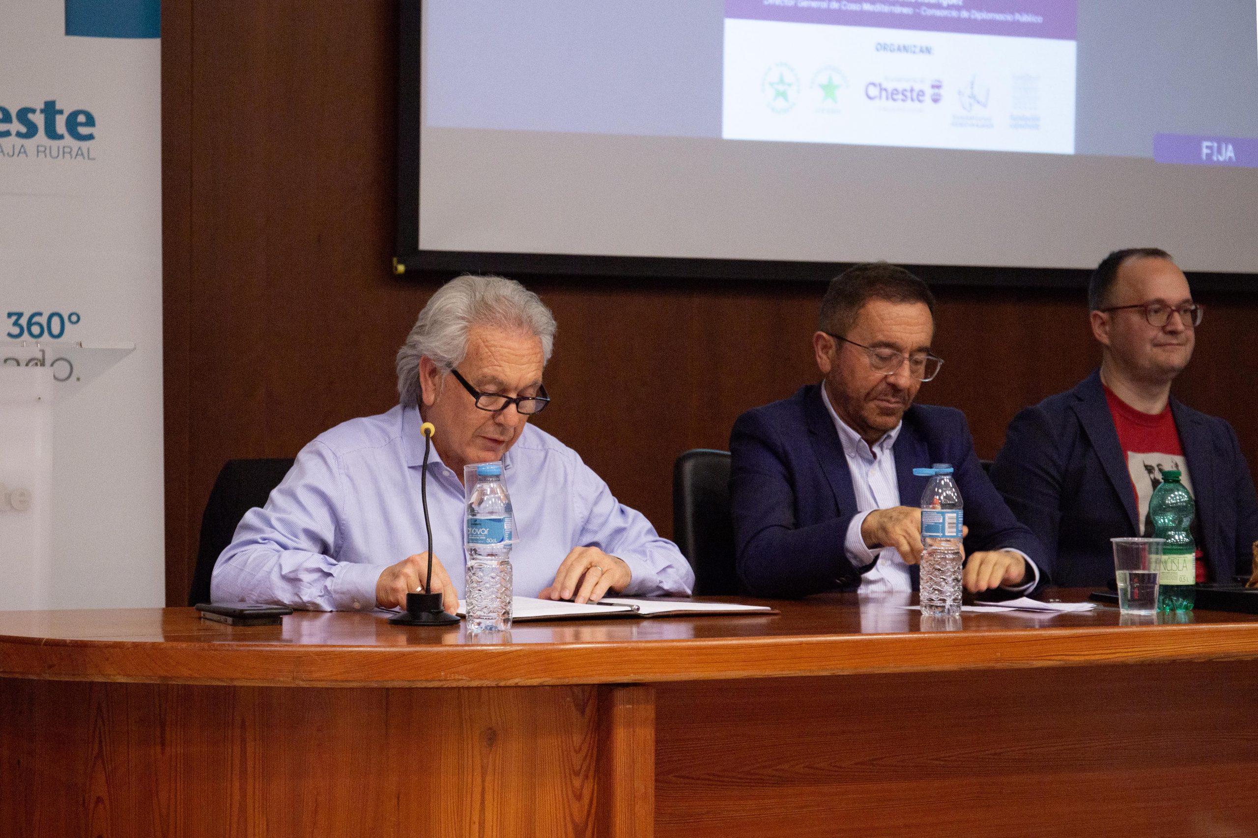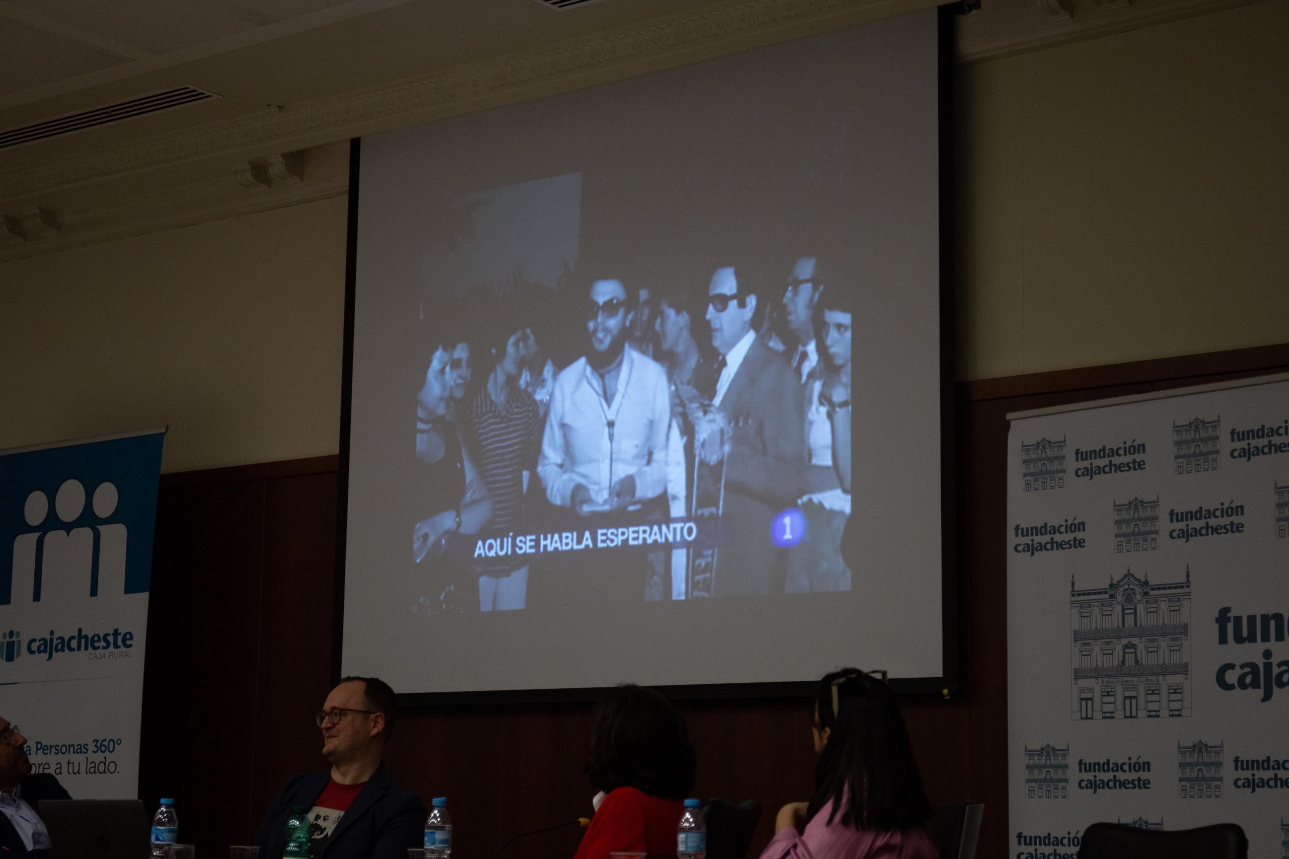 Tras el visionado del vídeo intervino Andrés Perelló Rodríguez, director general de Casa Mediterráneo, el consorcio de diplomacia pública que busca fomentar el conocimiento mutuo entre España y el resto de países de la cuenca Mediterránea. Perelló encomió la labor del concurso para la promoción del Esperanto y reflexionó sobre los actuales conflictos mundiales en base a su experiencia como Embajador Delegado Permanente de España ante la UNESCO, cargo que desempeñó hasta 2021, y otros anteriores como la presidencia de la Misión de Observación Electoral en la República Democrática del Congo.