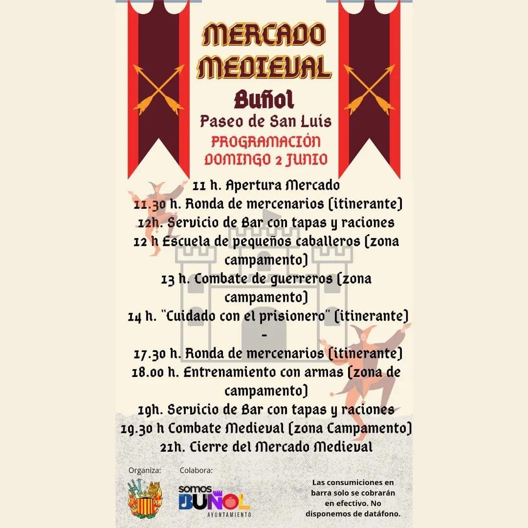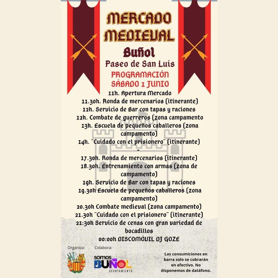 Redacción.- El Mercado Medieval de Buñol regresa este fin de semana a la localidad. Lo hace desde este viernes y hasta el domingo en el Paseo de San Luis del municipio. La decoración, los trovadores y los malabaristas que representarán a varios personajes medievales, garantizan un ambiente vivo y auténtico.