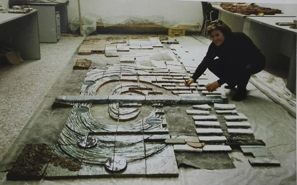 Fueron unos meses de trabajo intensivo para poder llegar a la fecha requerida. Recuerdo particularmente las Pascuas de ese año haciendo viajes al taller, peleando con el color del agua que no daba el tono y rompiéndome la cabeza mirando los colores que se reflejaban en una balsa al lado de donde estábamos almorzando. La cerámica gasta esas bromas. Según la situación en el horno puede dar variación en los colores y complicarte la vida por muchas pruebas que hayas hecho. Tenía que estar colocado el 23 de mayo y no se podía perder tiempo.