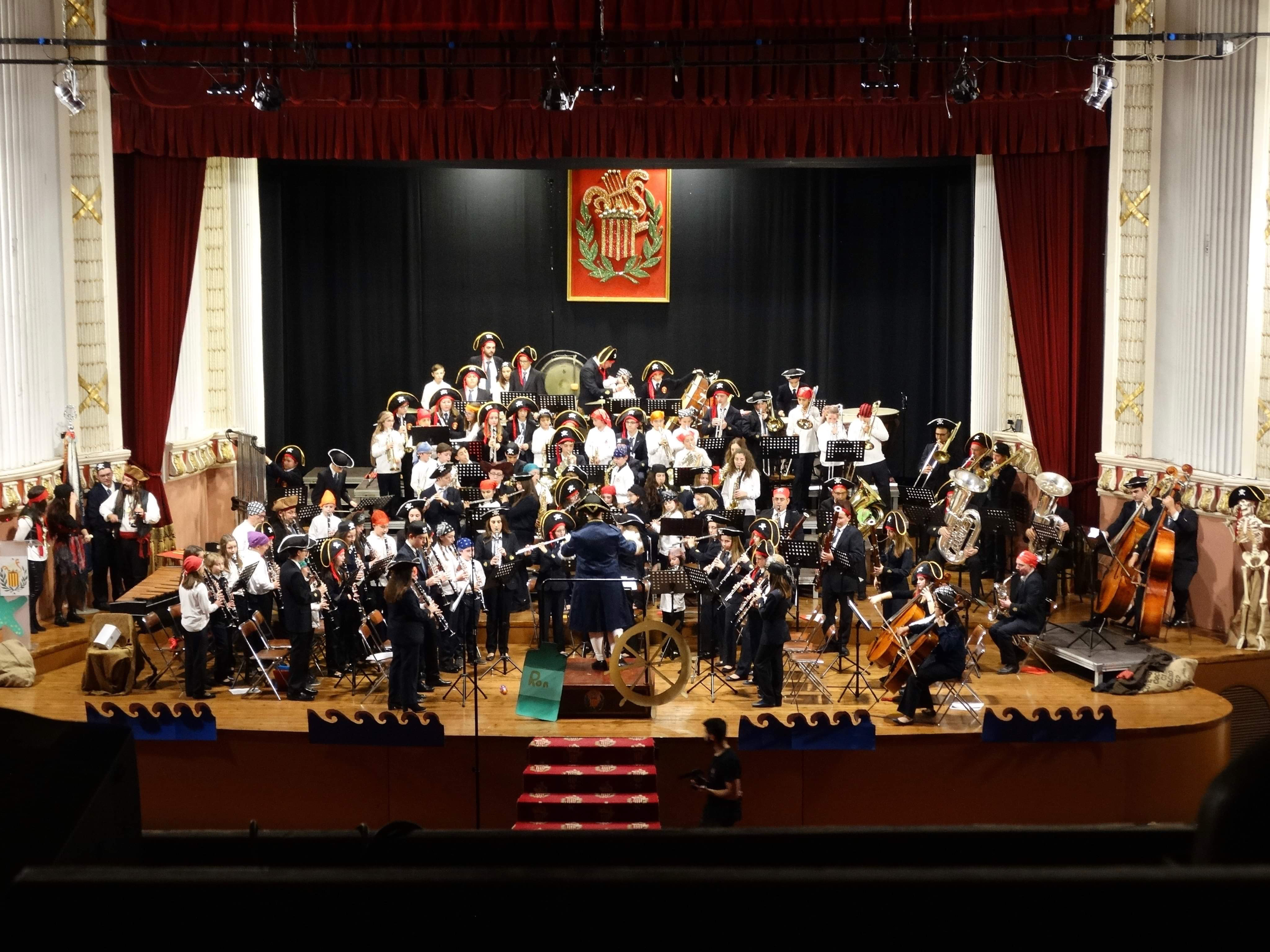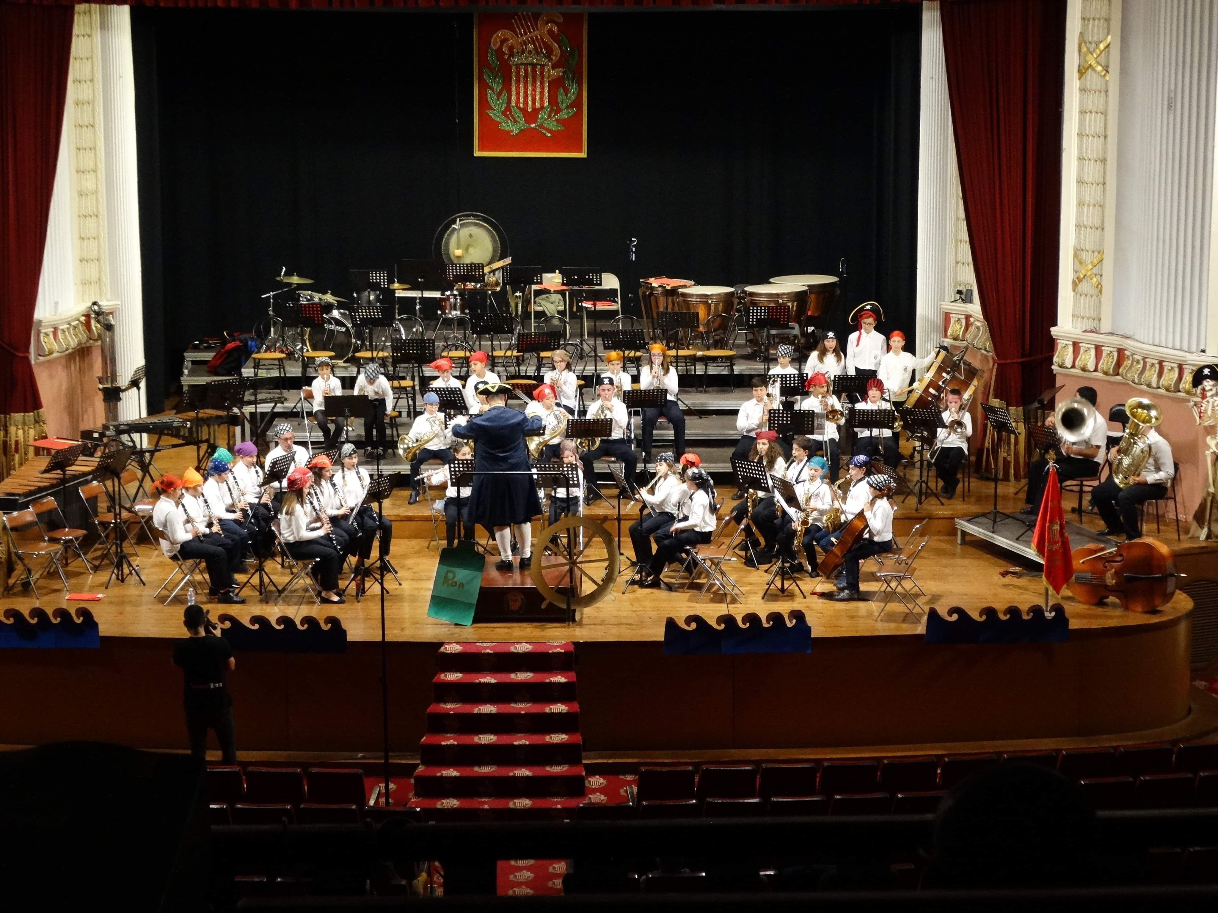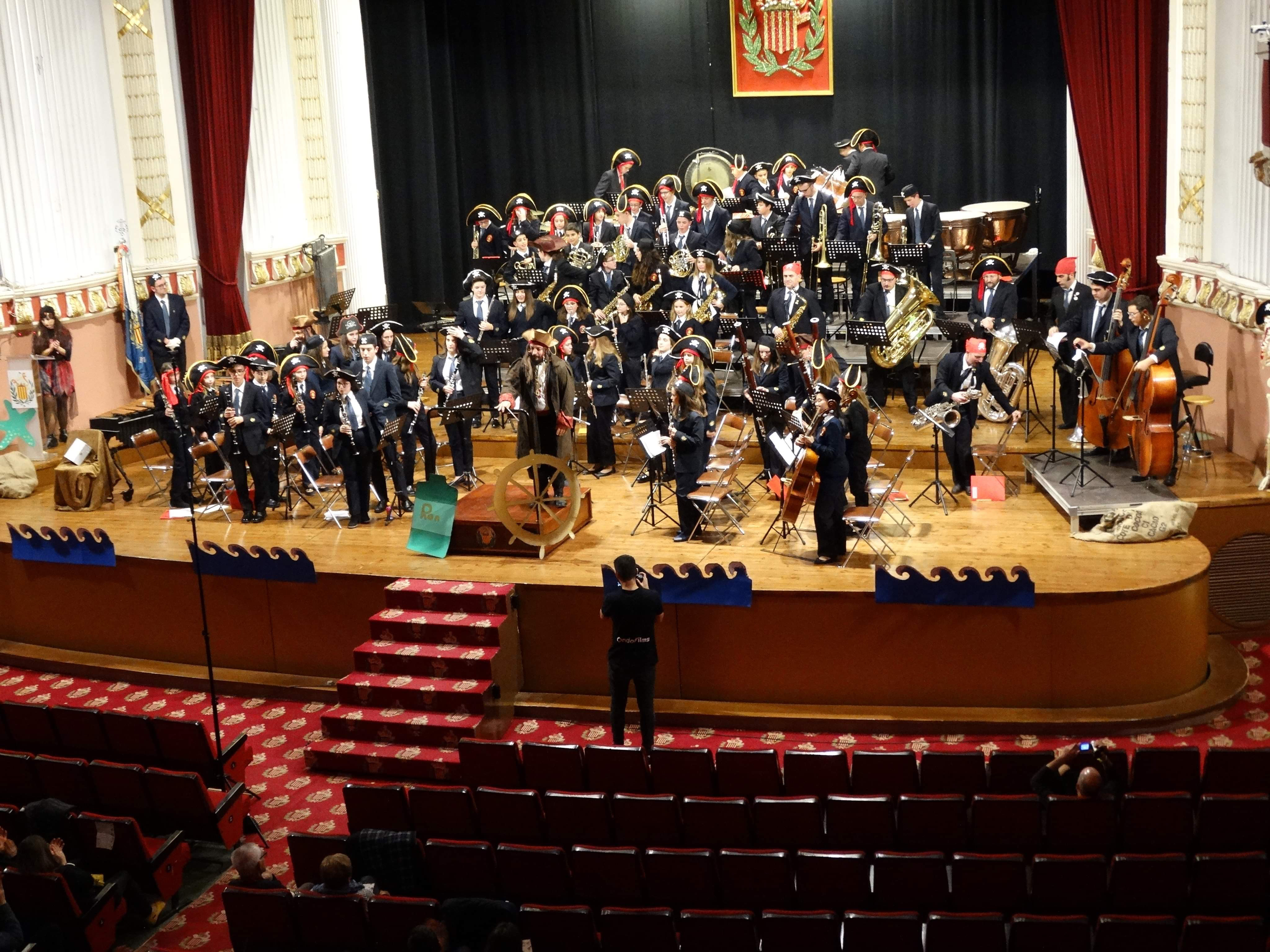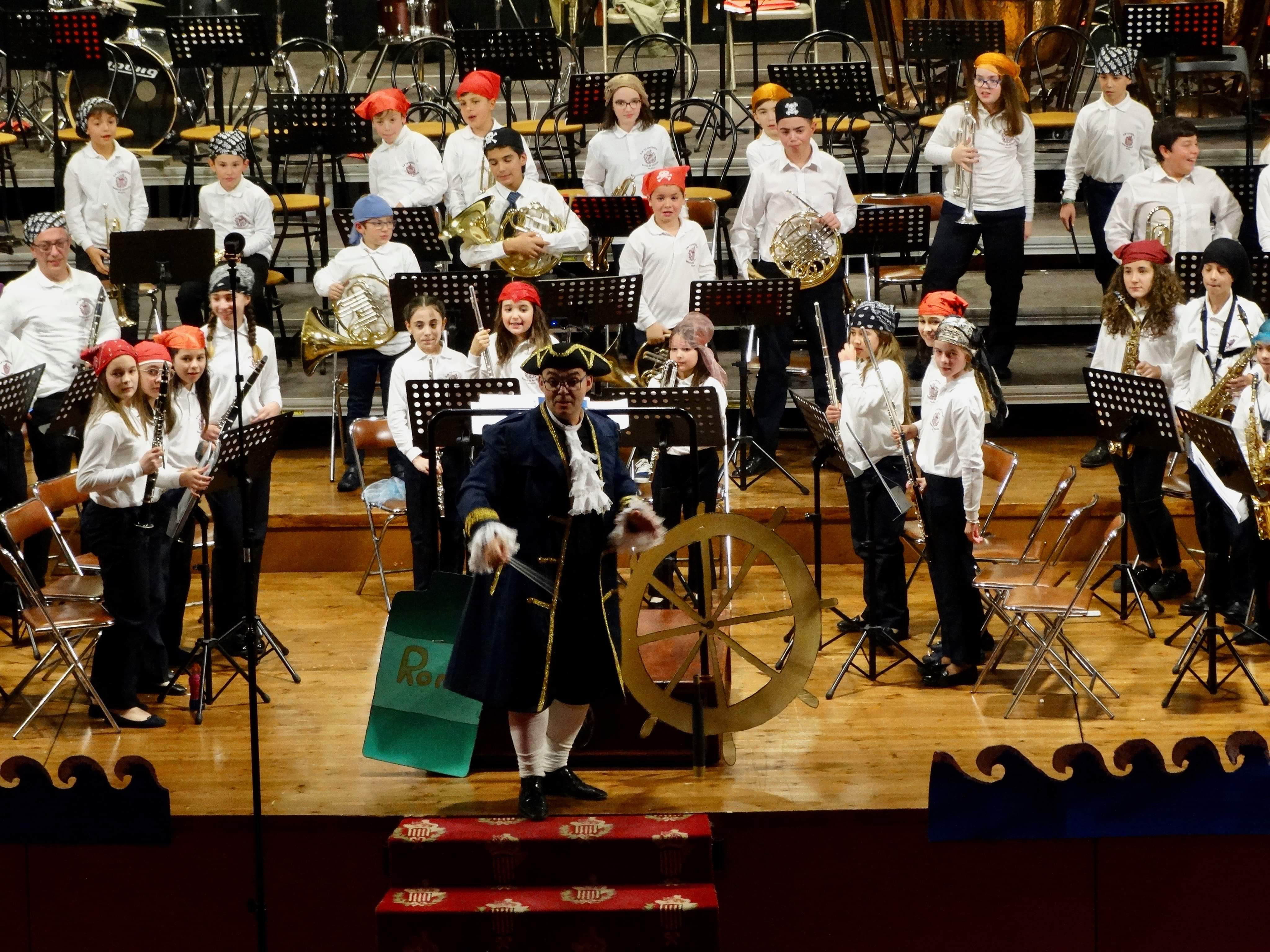 Redacción.- El Ciclo de Conciertos Navideños de «La Artística» de Buñol arrancó el pasado sábado 14 de diciembre con el Concierto de la Banda de Iniciación y la Banda Juvenil. Este concierto, bajo el título de «El Tesoro de Montecarlo», sirvió como presentación de los nuevos músicos de estas dos jóvenes agrupaciones. Con un Teatro Montecarlo decorado para la ocasión, los pequeños grandes músicos piratas interpretaron obras como «Els poblets», «La leyenda del Maracaibo» o la Banda Sonora de «Piratas del Caribe». Una tarde de aventuras y diversión que se cerró con un bis en el que ambas agrupaciones actuaron unidas bajo la batuta de sus directores, Abel Clemente Riera y David Tarín Díaz.