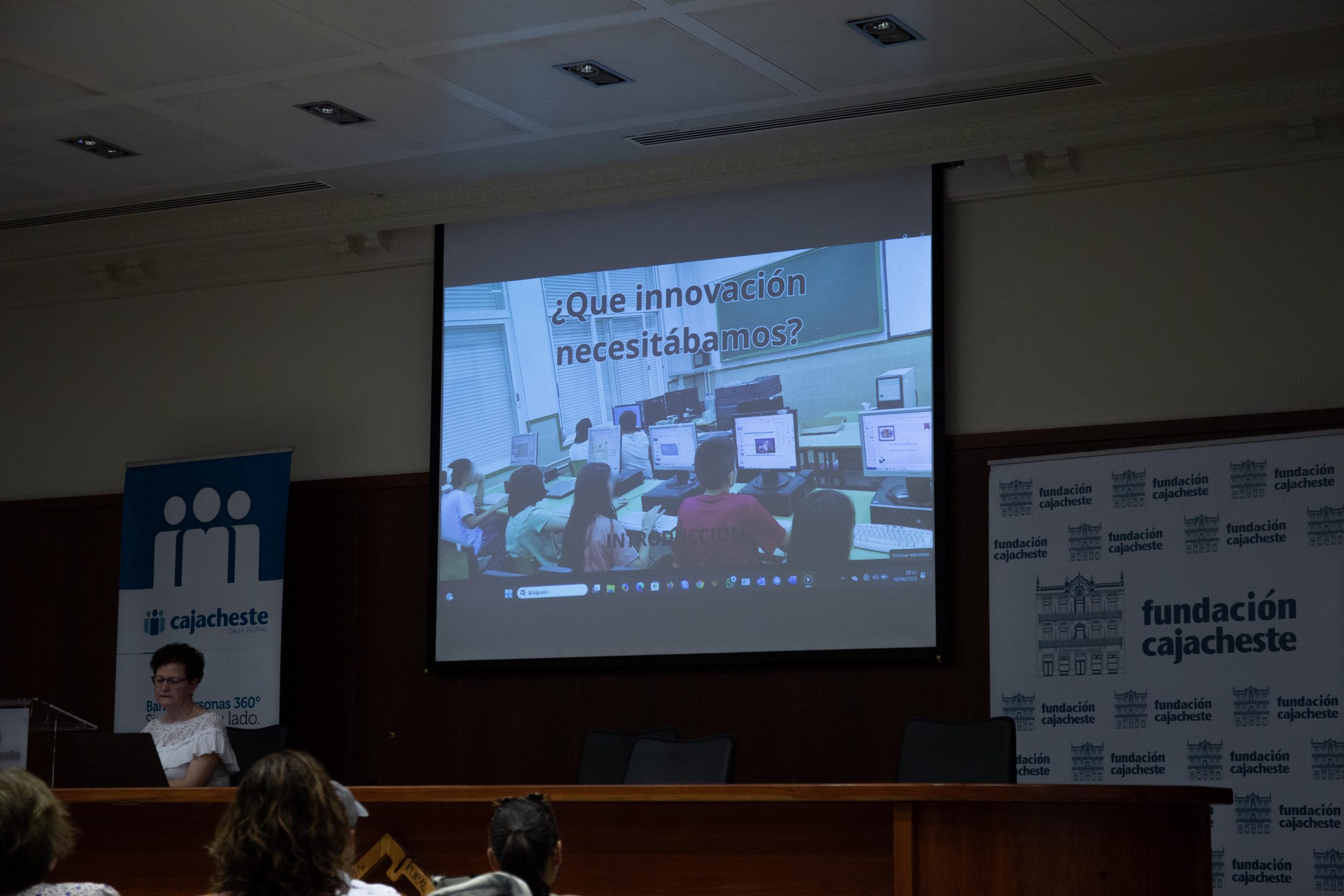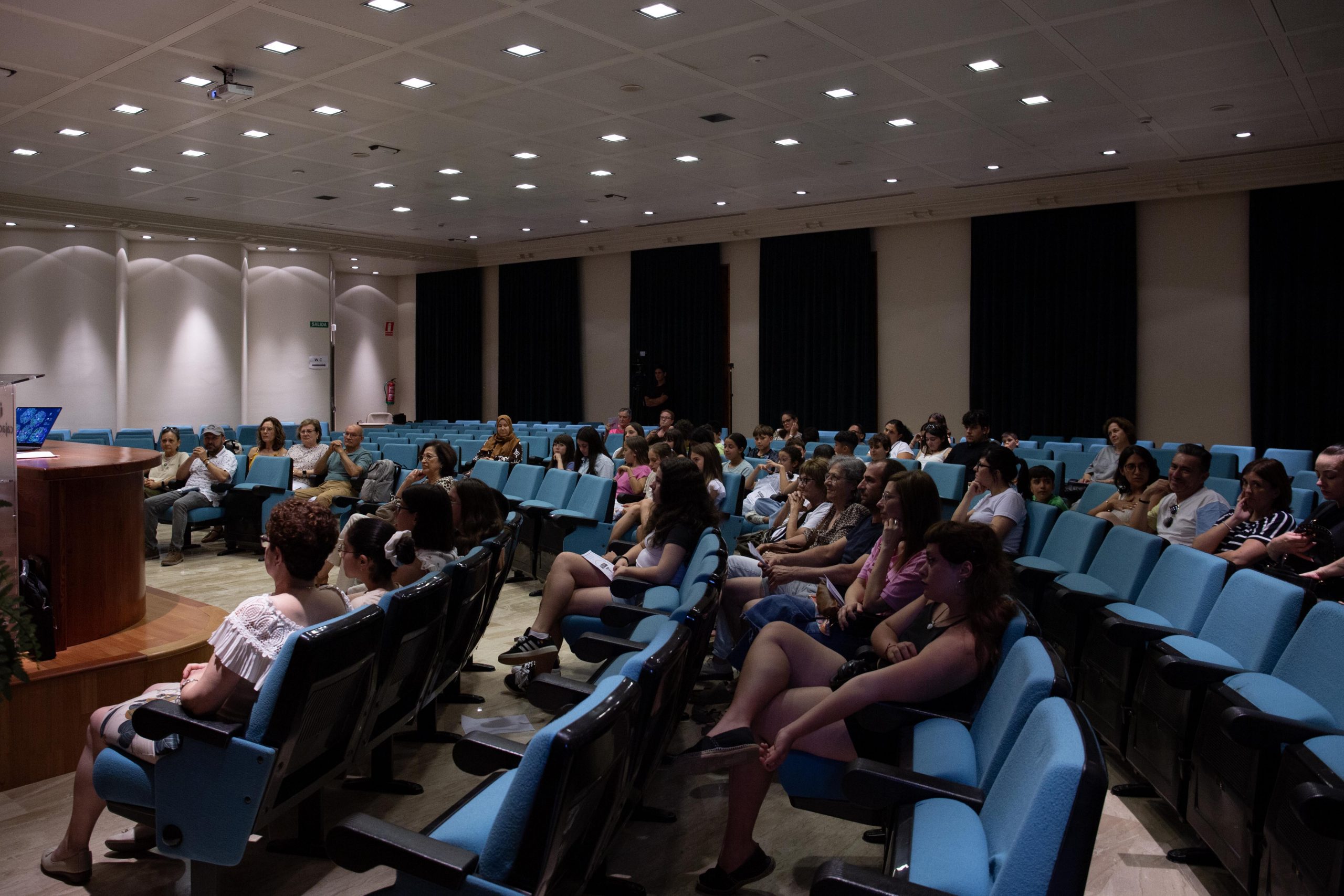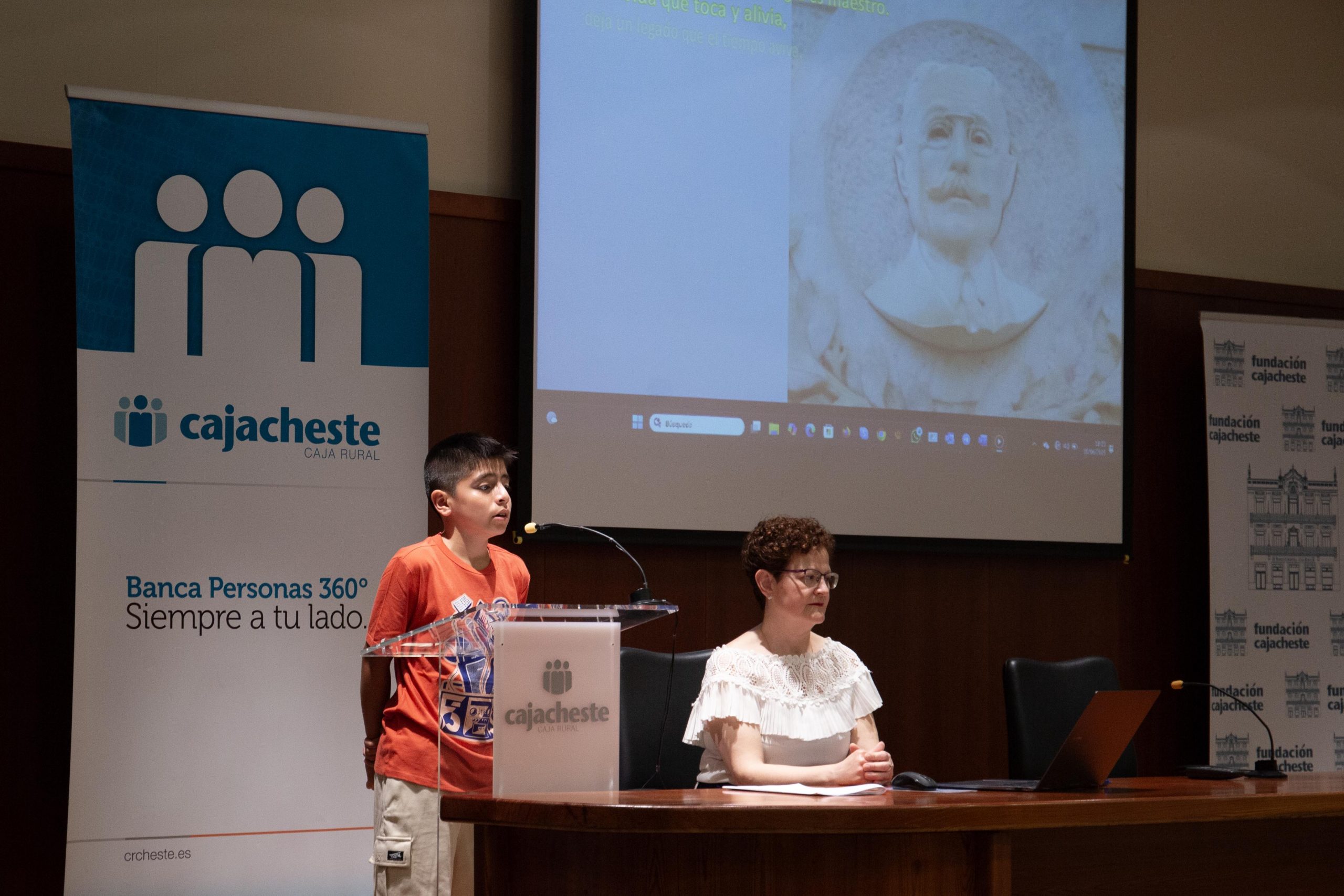 Tras las palabras de la maestra, se proyectó un vídeo del making off sobre el proyecto y su impacto. El alumnado también recitó el poema “La ciencia y alma, me encanta la medicina”, para presentar las figuras de los médicos, creado con inteligencia artificial, y se proyectó un vídeo explicativo sobre cómo acceder a los contenidos del proyecto.