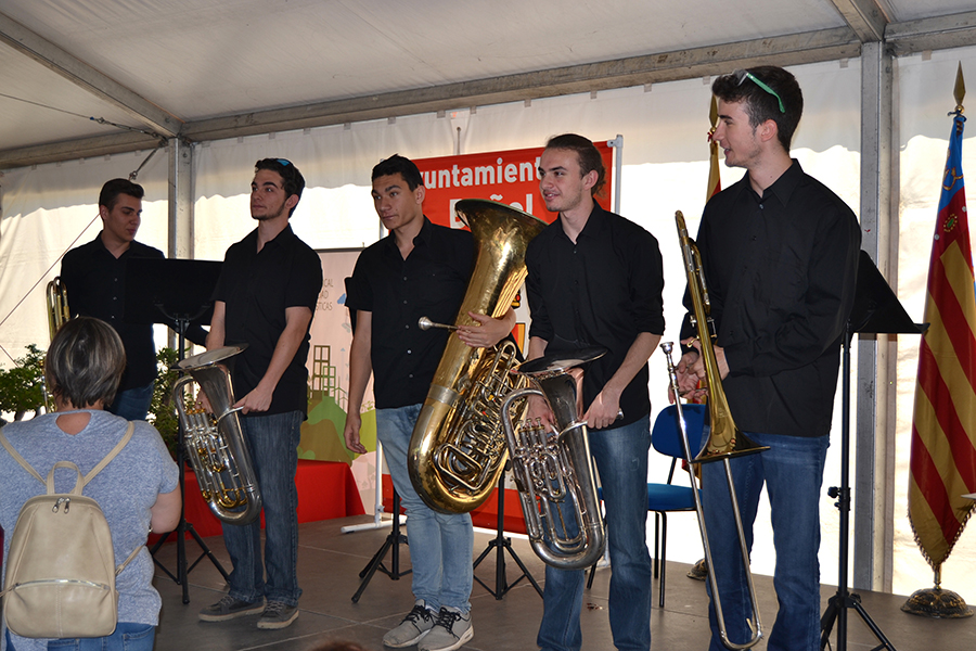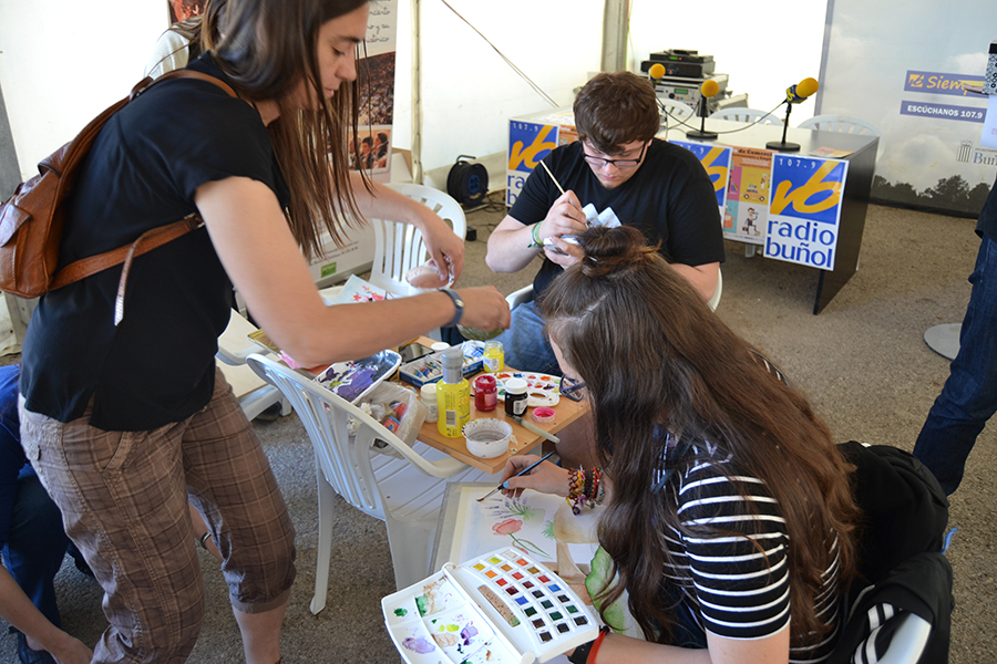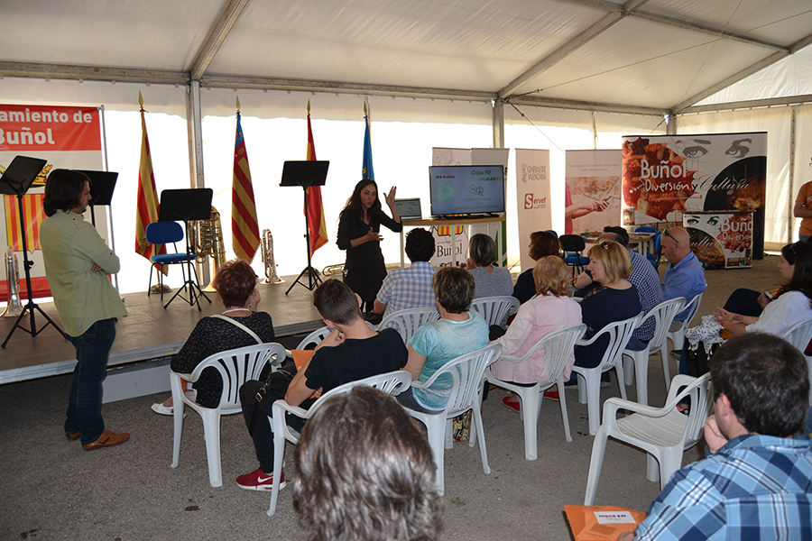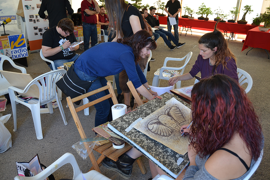 Por otro lado, la carpa del Ayuntamiento acogía una frenética actividad, con el Instituto de Buñol como protagonista. Gabriel Corachán, director del centro, presentaba las nuevas especialidades formativas del IES, exponiendo además todo el proyecto educativo. Se ha anunciado que a partir de este curso se va a poder ofertar el FP básico de Industrias Alimentarias y se han explicado, con demostraciones prácticas, el FP de agraria y el destacable valor del bachillerato de Artes, único en la zona. Los alumnos de artes han estado creando algunas obras durante la mañana, que posteriormente se han subastado, con el objetivo de recaudar fondos para mejorar la biblioteca del instituto. Además, según palabras de Corachán, «se ha presentado con orgullo la creación de una asamblea de estudiantes que se ha constituido este año y que tiene una tremenda actividad, algo esencial para que el instituto avance y sea algo dinámico«.