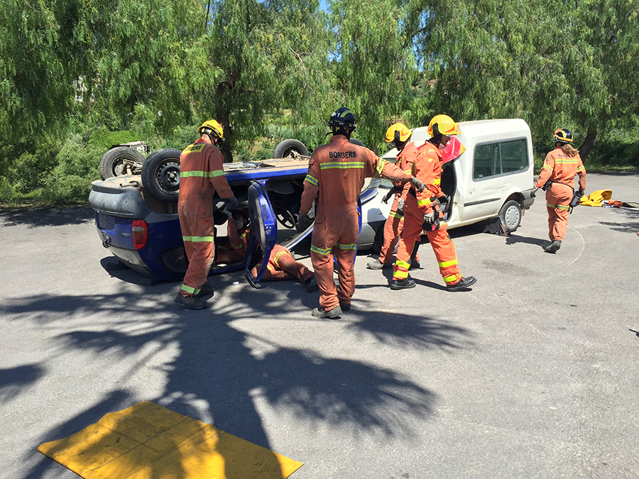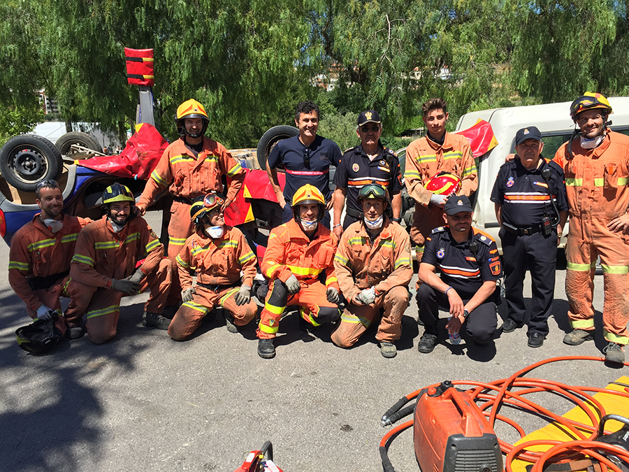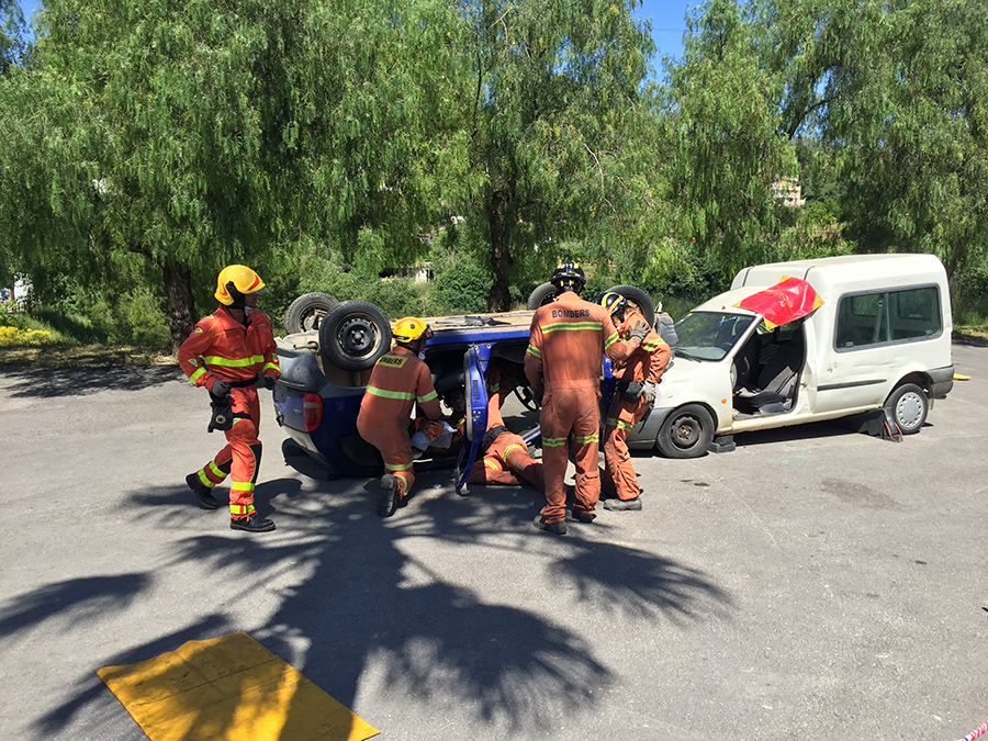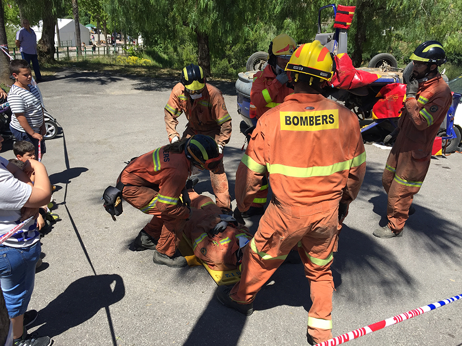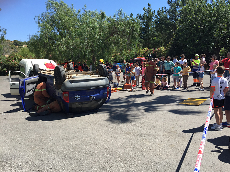 El segundo día de la Feria del Comercio comenzaba con una exhibición de la excarcelación de dos heridos en un accidente de tráfico a cargo del Consorcio Provincial de Bomberos en la zona de aparcamiento, organizada por Protección Civil y la Policía Local de Buñol.