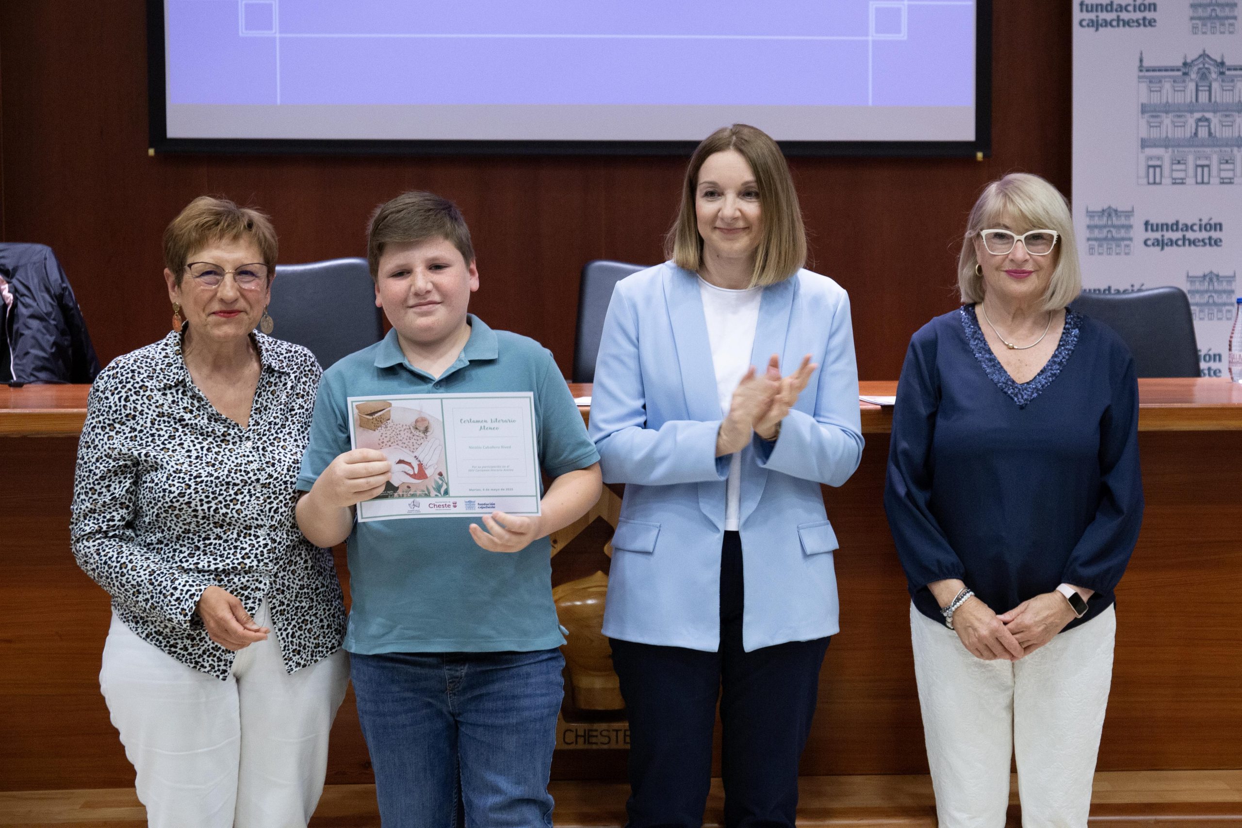 Ayer, martes 6 de mayo, el salón de actos de la Fundación cajacheste acogió la celebración de la Entrega de Premios de la 24ª edición del certamen literario, una iniciativa de la Concejalía de Cultura, la Fundación cajacheste y la sociedad Ateneo la Alianza, en la que participan los centros educativos públicos de Primaria, el colegio San José de la Montaña, el IES Ricardo Marín, el CEE Virgen de la Esperanza y el Centro de Formación de Personas Adultas. Un año más, el certamen ha superado el medio millar de obras presentadas, alcanzando la cifra de 552 trabajos en las modalidades de relato breve, poesía y cómic.