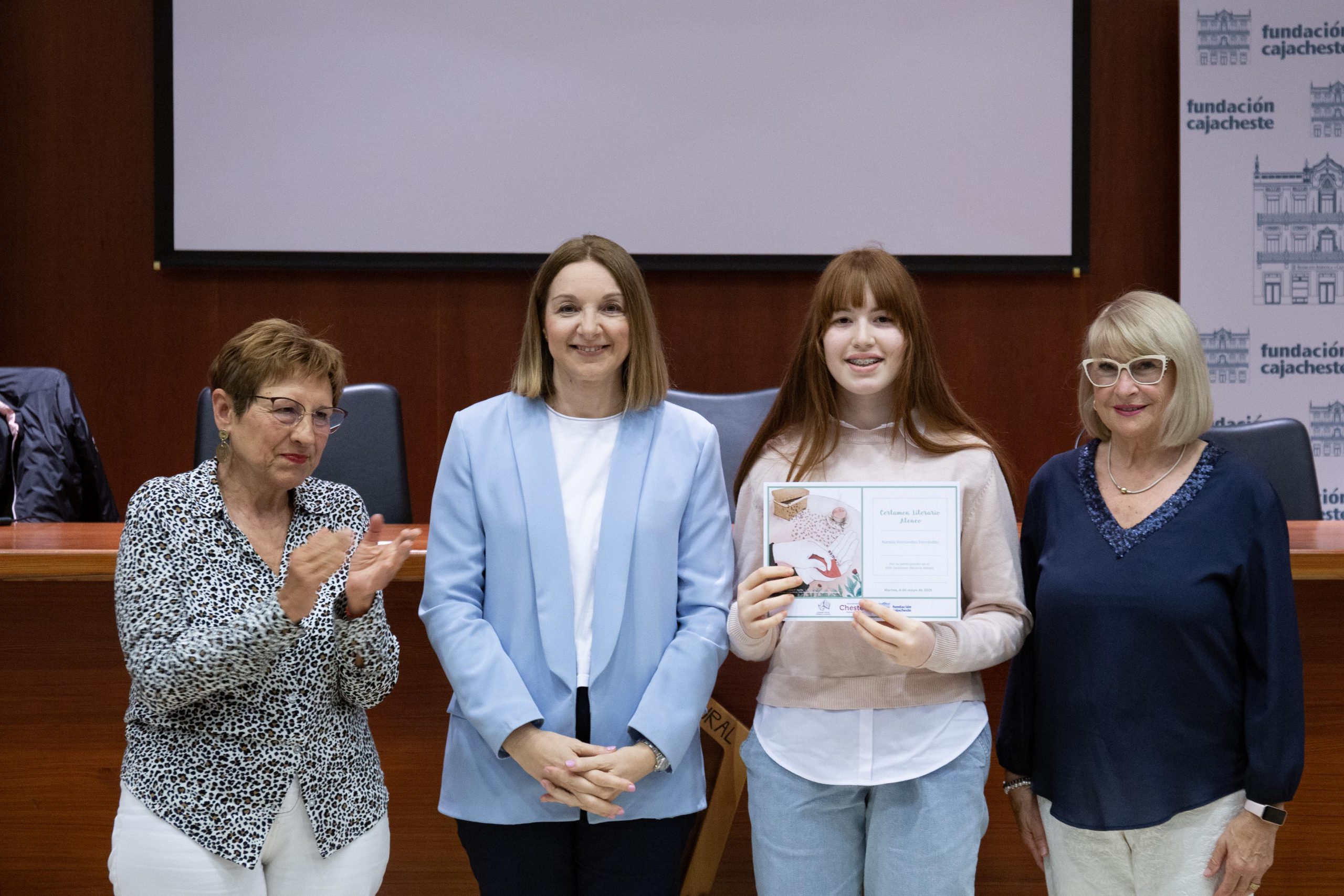 Por su parte, Gemma Hercio, miembro del patronato de la Fundación cajacheste, dedicó unas palabras a reconocer la capacidad de la escritura para unir a las personas. “Hoy celebramos el acto de escribir como una forma de encontrarnos. Nos convoca la palabra escrita, esa herramienta humilde y poderosa que atraviesa edades, realidades, orígenes y trayectorias. Cada texto premiado y también cada texto presentado es un acto de generosidad, es una huella, una semilla, una posibilidad. A todos los participantes, y especialmente a los del Colegio Virgen de la Esperanza, que lo hacen por primera vez en este certamen, gracias por escribir”, declaraba Huercio.
