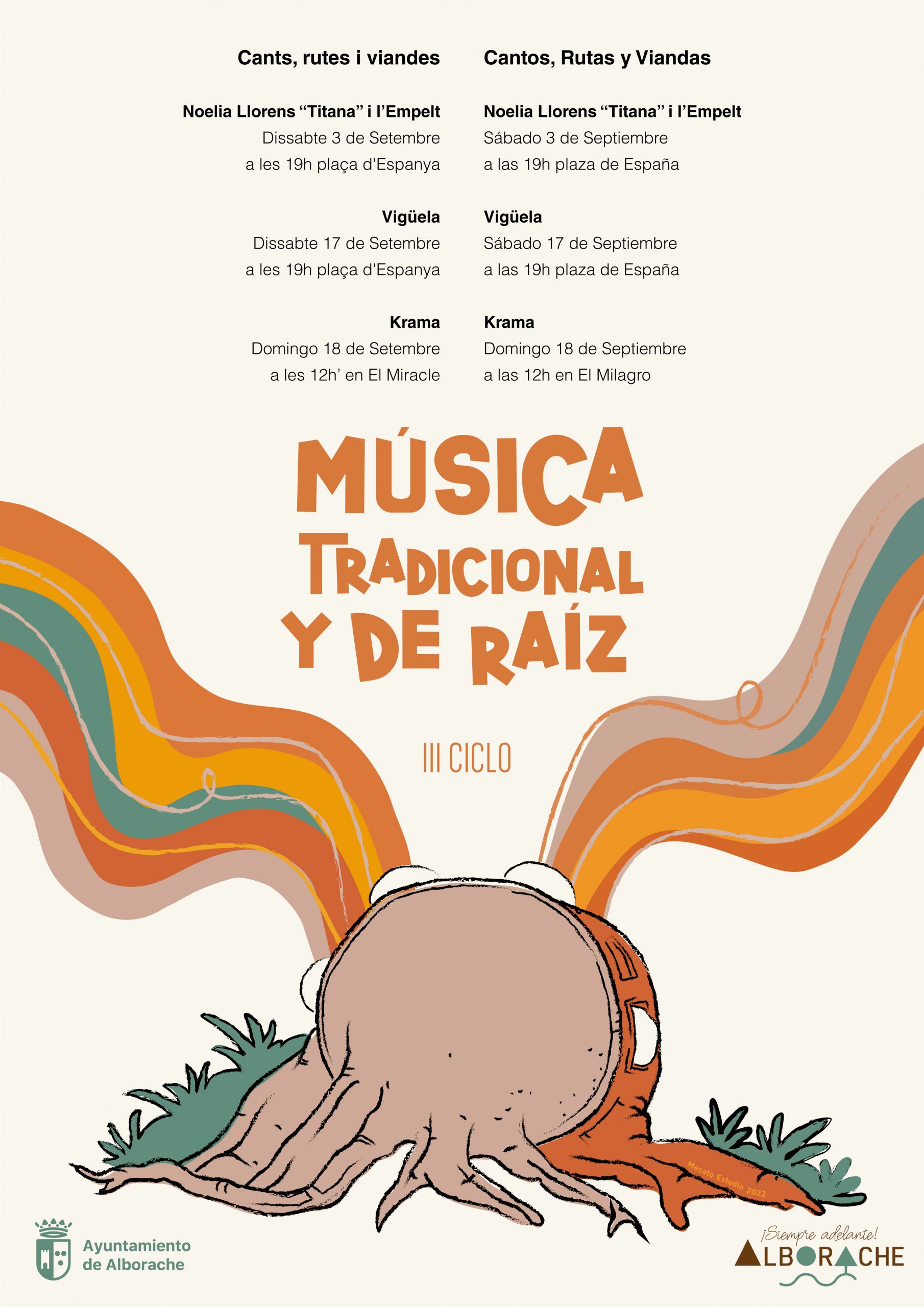 Con esta tercera edición de este ciclo, la Concejalía de Cultura del Ayuntamiento de Alborache consolida una propuesta cultural que ha sido valorada muy positivamente, como punto de encuentro de especialistas en la música tradicional, y que mantiene el objetivo que impulsó la primera edición: enseñar y difundir conceptos musicales e históricos de “la música tradicional de la Comunitat Valenciana, de otras regiones e incluso de otros países”, como ha explicado el concejal de Cultura, Vicente Dader quien ha adelantado que en esta edición se contará con el grupo Krama con raíces griegas y valencianas, o el grupo Vigüela de Toledo.