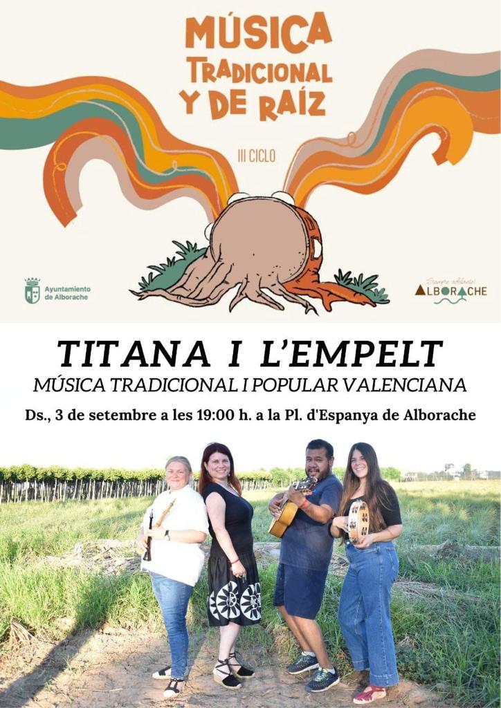Redacción.- Alborache inaugura a partir del próximo sábado, 3 de septiembre, el III Ciclo de Música Tradicional y de Raíz, un encuentro de “Cantos, Rutas y Viandas”, que recupera una muestra de distintos tipos de folclore aplicados a la llamada música culta o clásica.