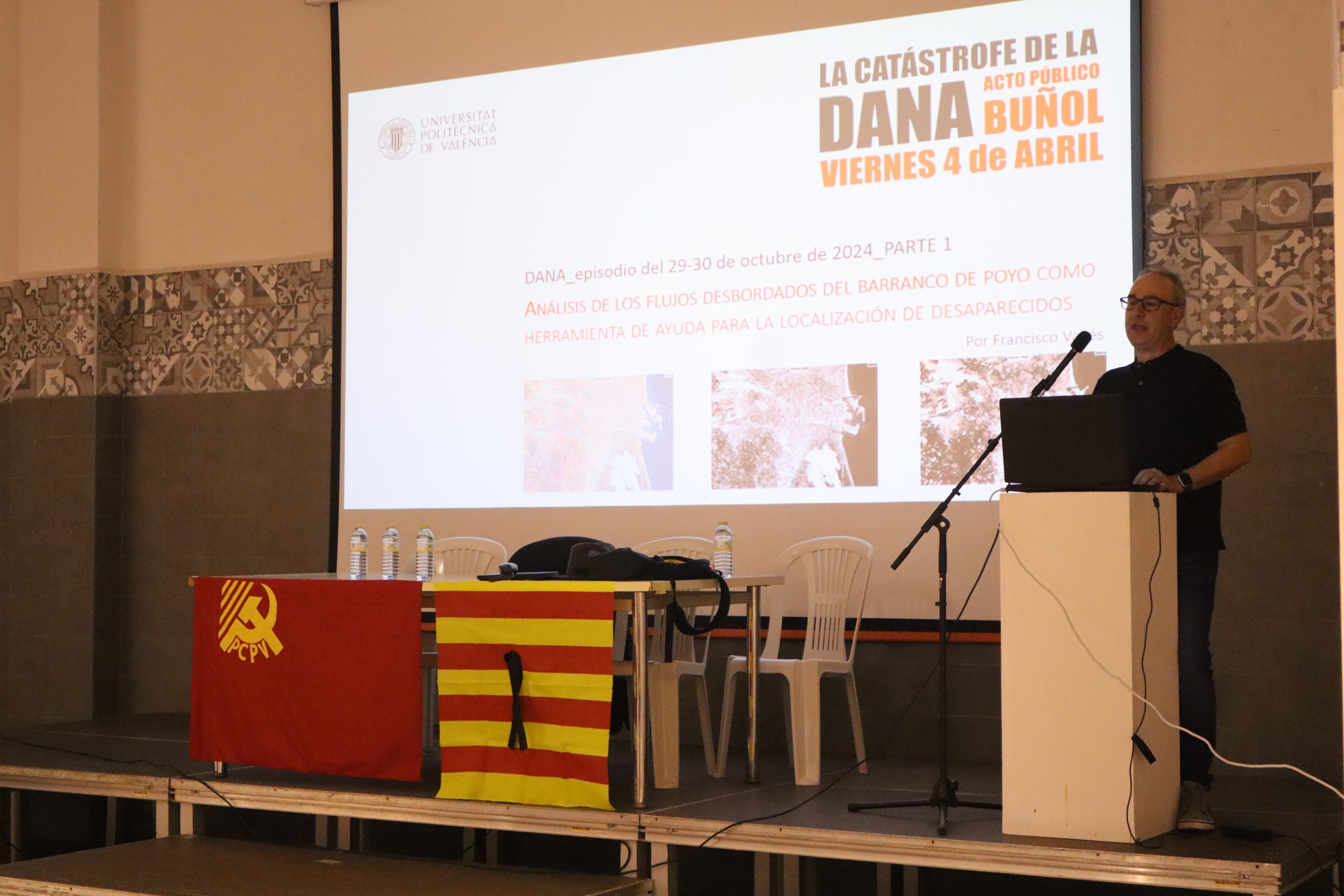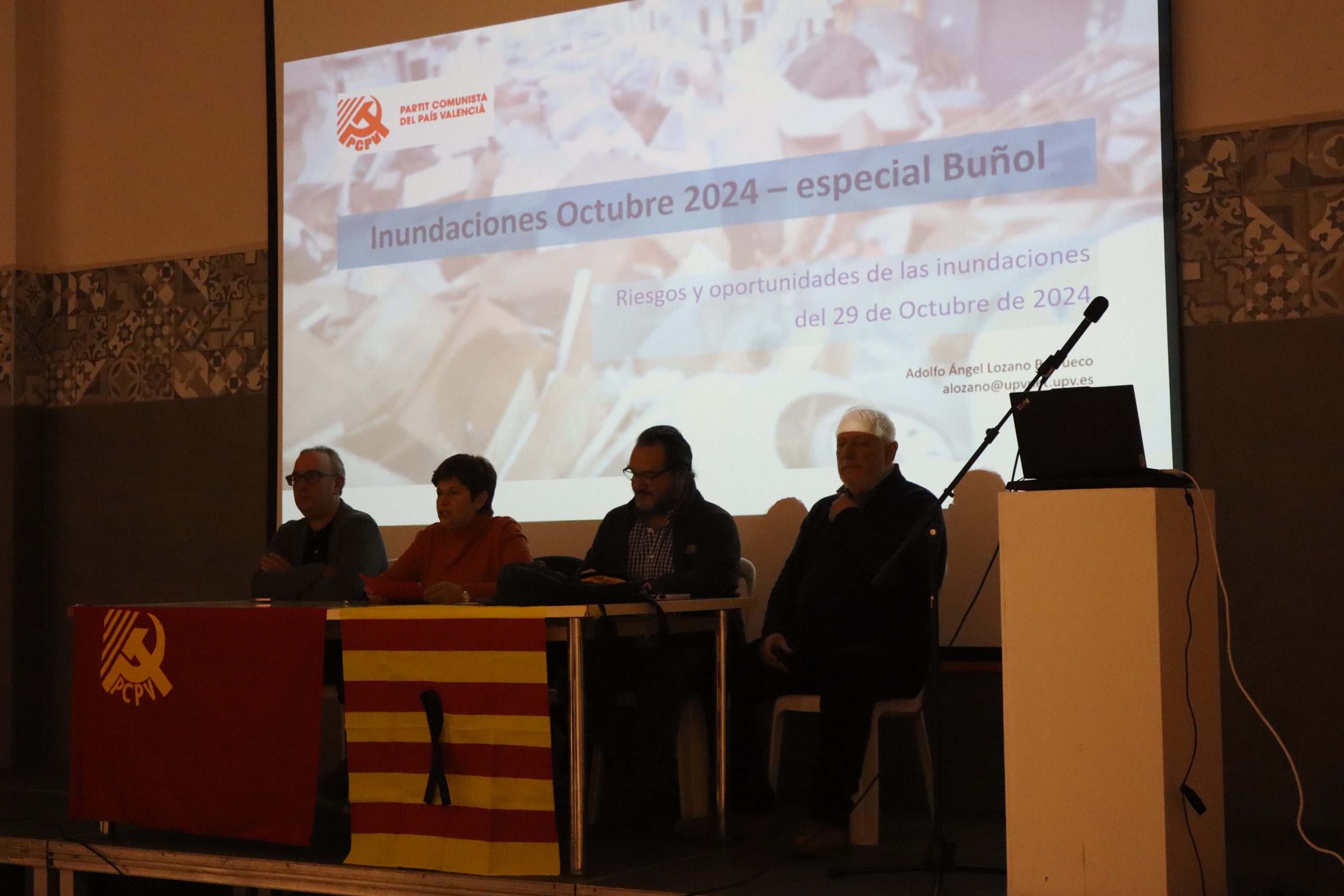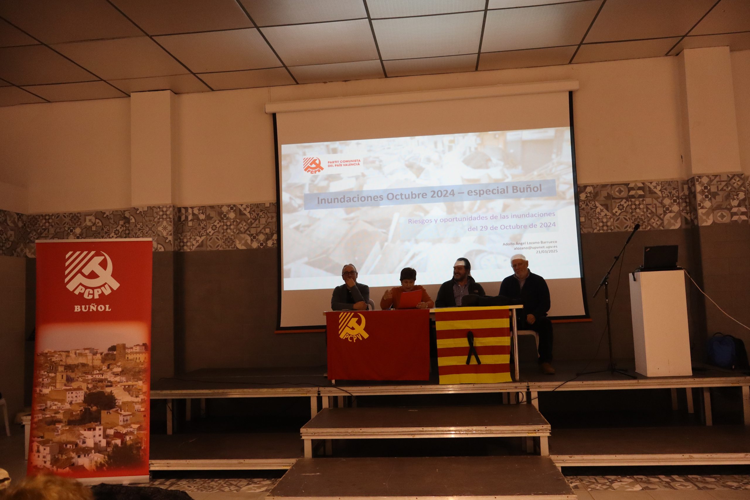 El pasado viernes 4 de abril, la Sala El Mercado de Buñol acogió una conferencia divulgativa organizada por el Partit Comunista del País Valencià (PCPV) y Esquerra Unida del País Valencià (EUPV) de Buñol, cuyo tema central fue la catástrofe provocada por la DANA que azotó la provincia de Valencia el 29 de octubre. La intención de los organizadores fue promover un análisis crítico y propositivo sobre lo ocurrido, así como buscar soluciones ante un contexto climático cada vez más extremo.