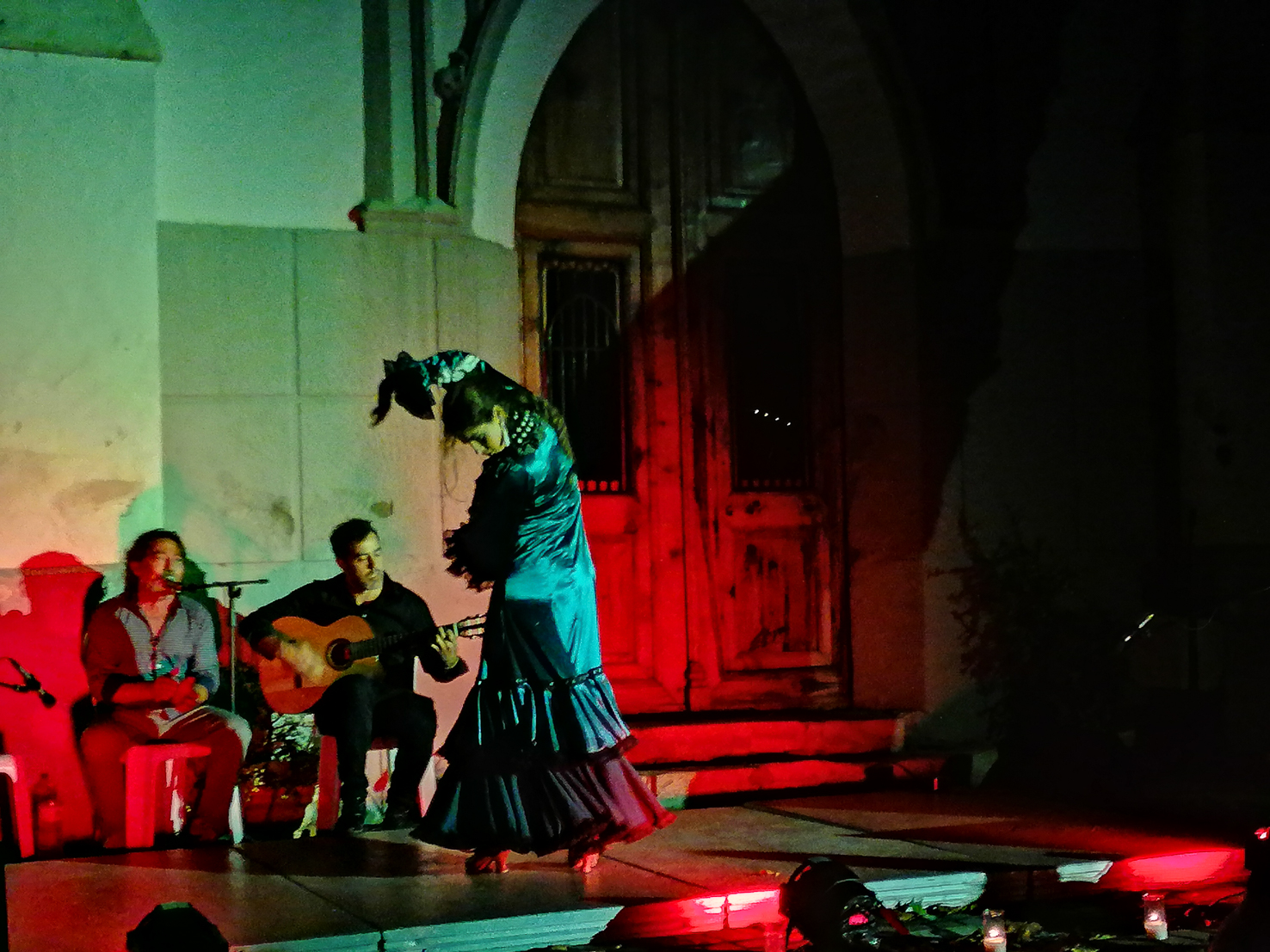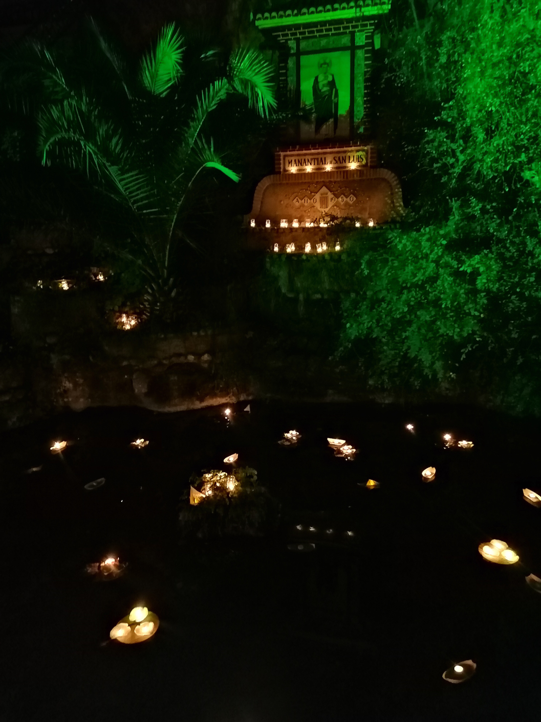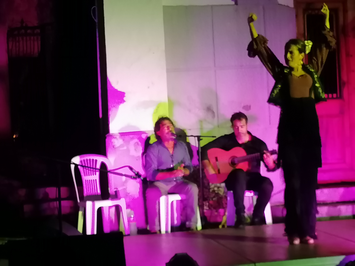 Y ya para finalizar este fin de semana, el domingo por la noche hubo velada nocturna en el paseo de San Luis con intervenciones luminosas acompañadas de música de Flamenco Trío y Amares. Un precioso espectáculo que dejó con la boca abierta a todos los presentes.