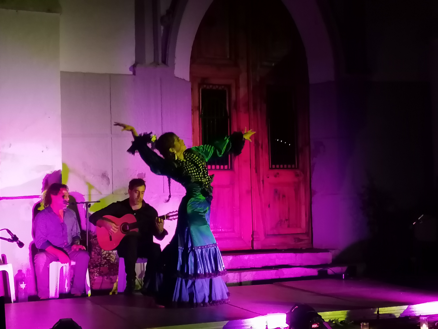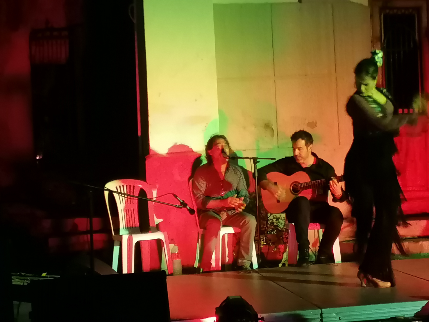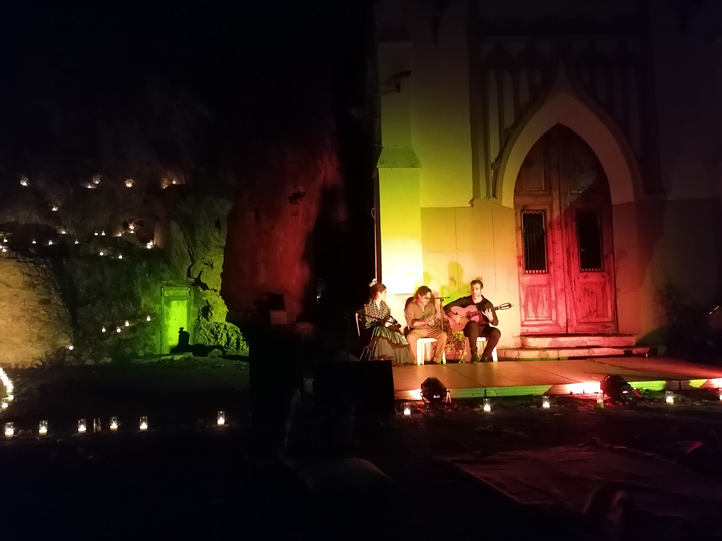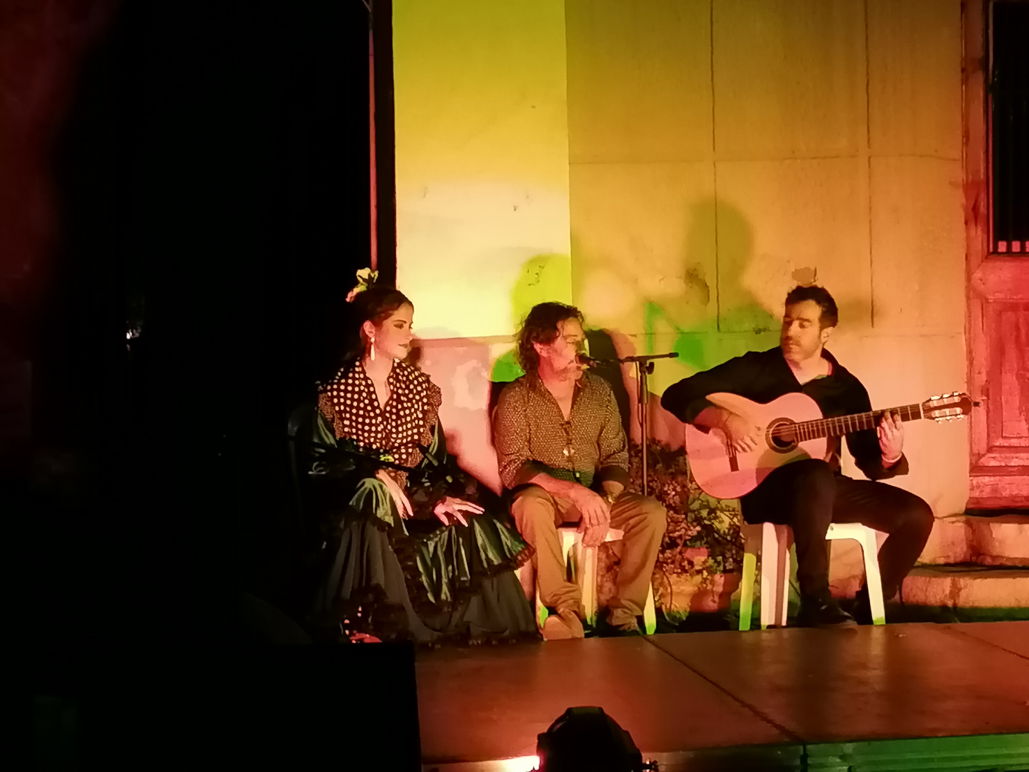 Y ya para finalizar este fin de semana, el domingo por la noche hubo velada nocturna en el paseo de San Luis con intervenciones luminosas acompañadas de música de Flamenco Trío y Amares. Un precioso espectáculo que dejó con la boca abierta a todos los presentes.