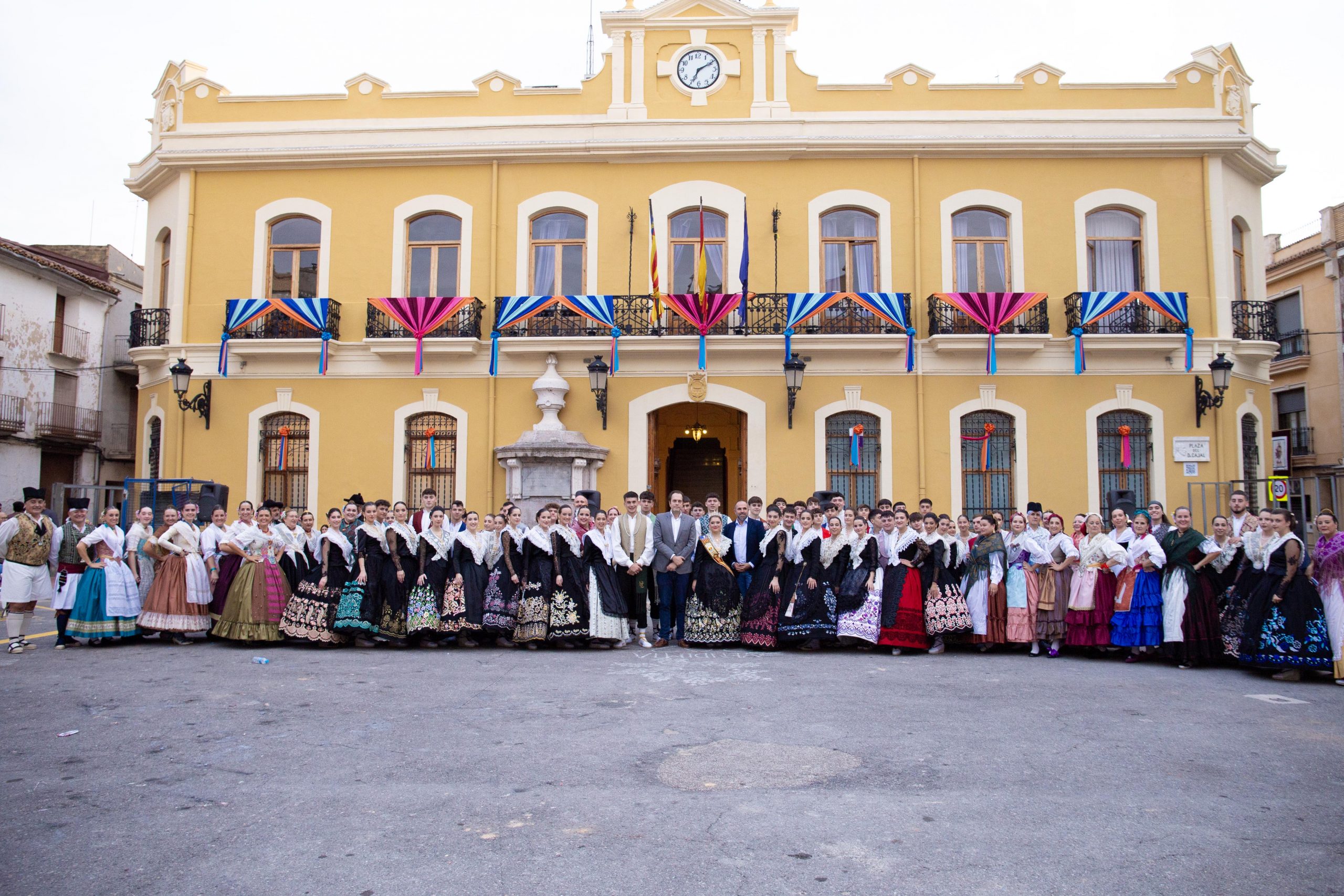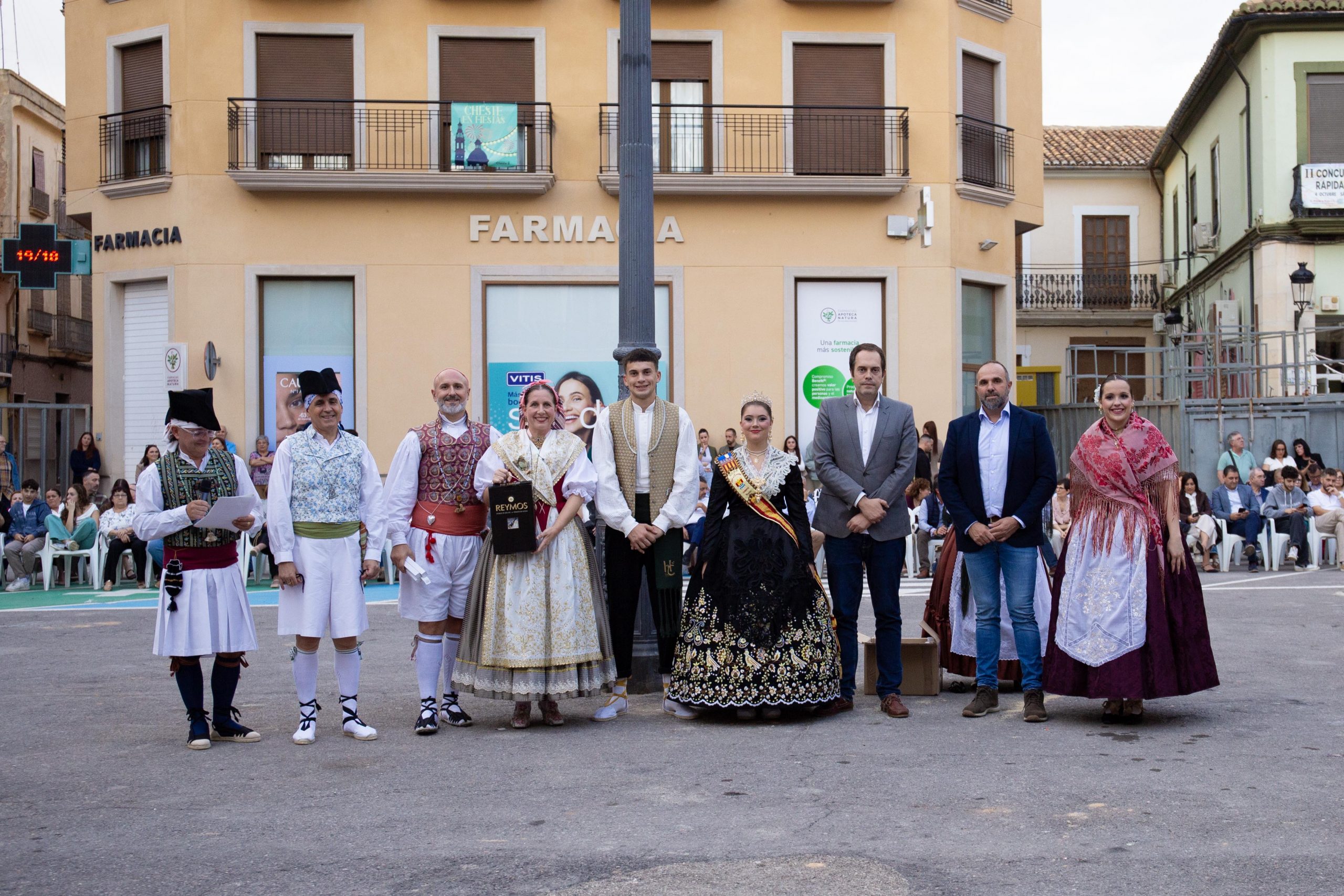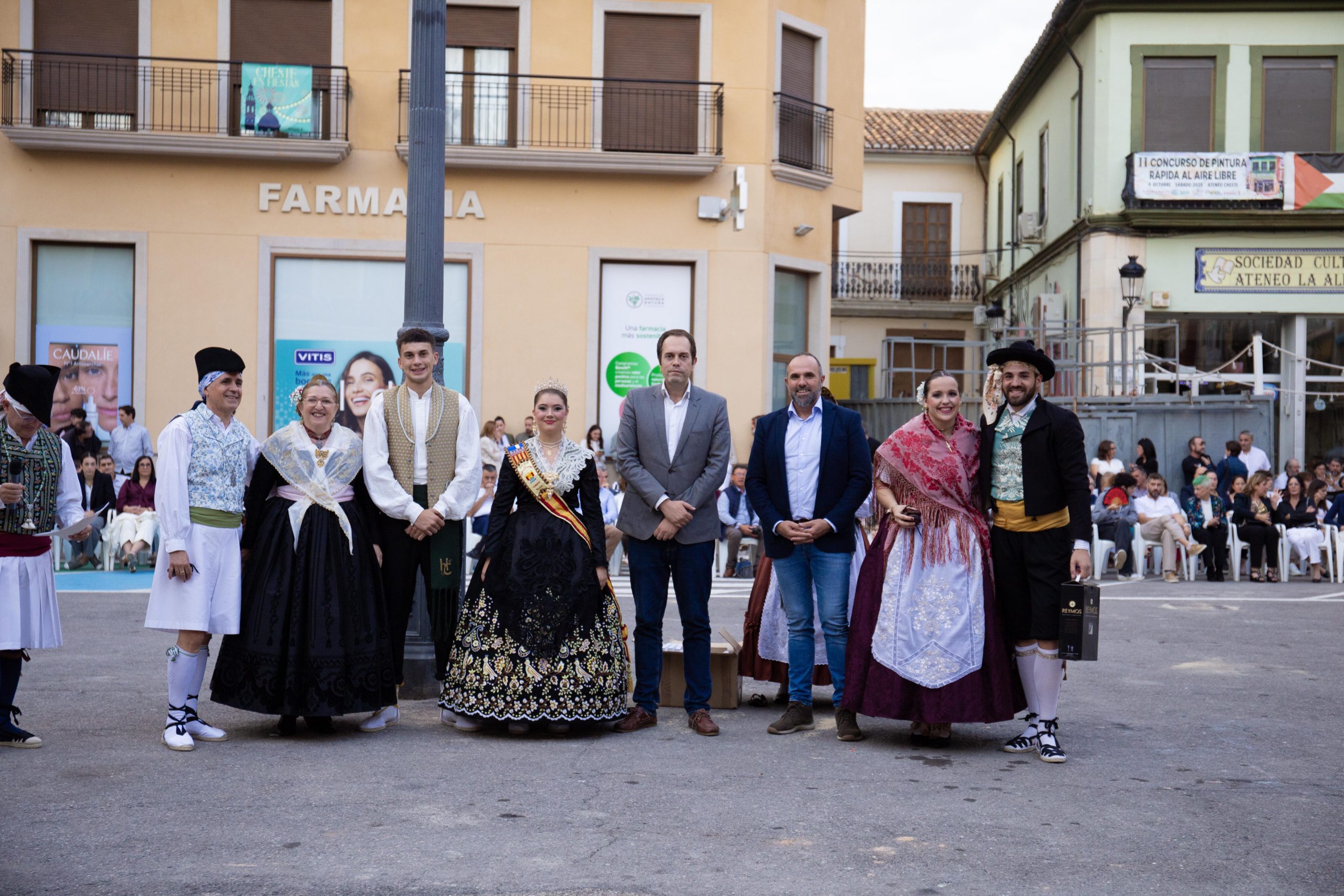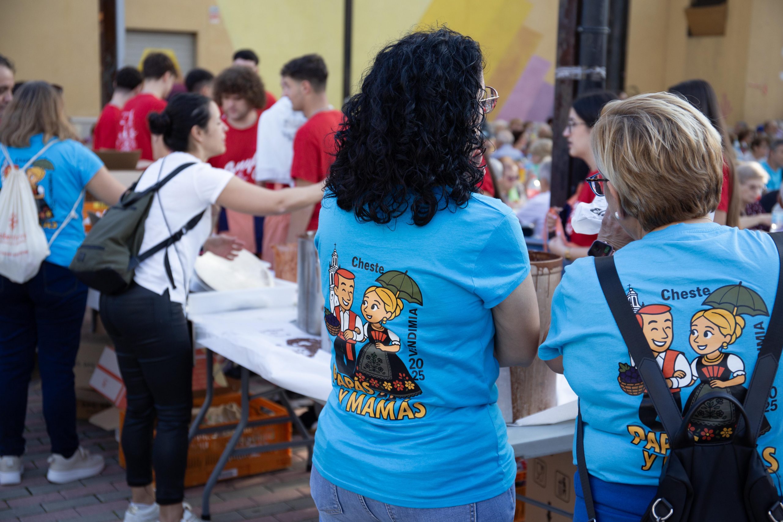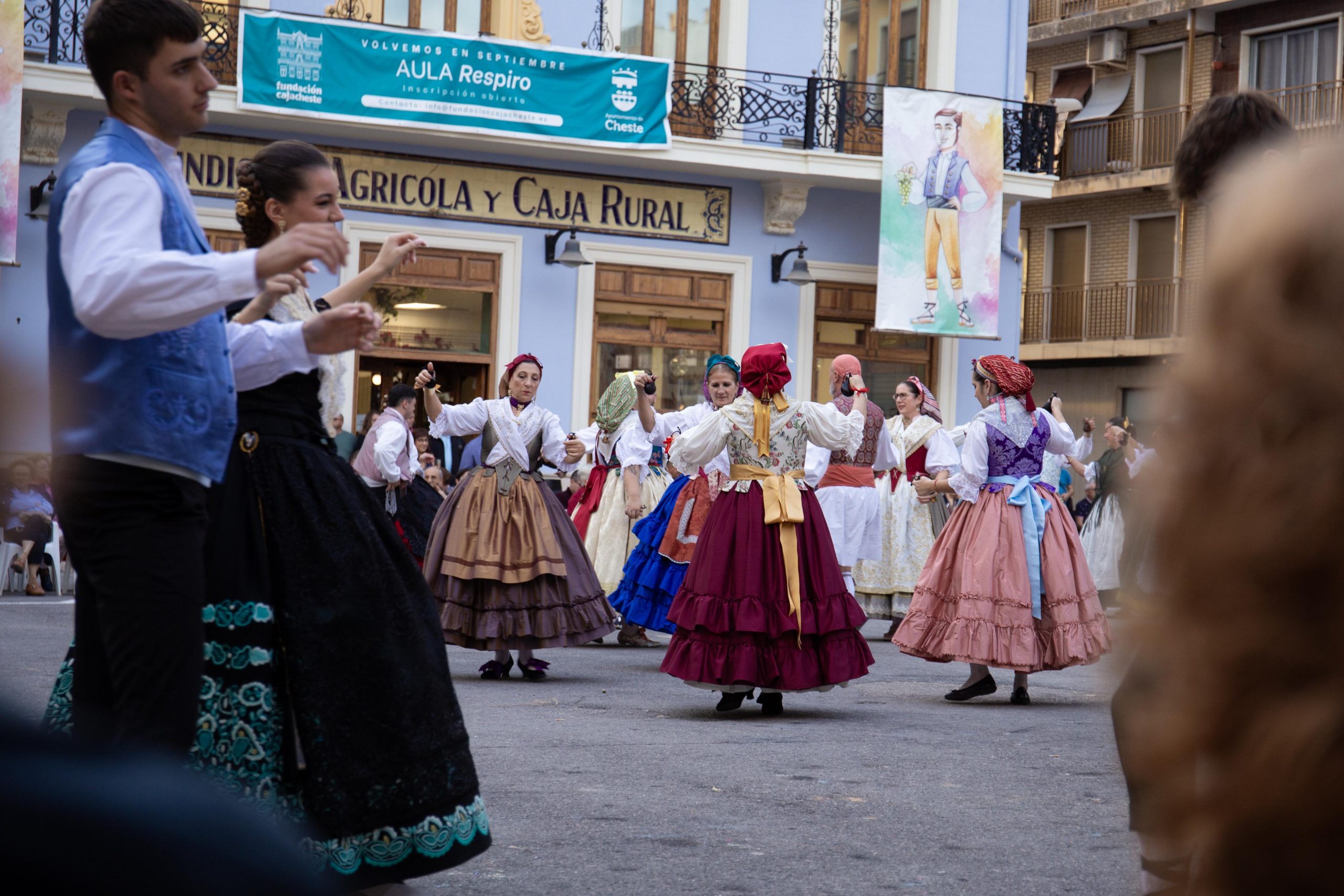 El fin de semana festivo terminó con la IV Dansá en honor al vino y a la cosecha recolectada, en la que participaron el Grupo de Danzas de Cheste, los chicos y chicas de la Vendimia 2025, las fallas “El Divendres de Massanassa” y “Castellón Segorbe”, y los grupos de danzas Danses i Pastorets de Vilamarxant, El Piló de Burjassot, Barri la Llum de Valencia y Ànima i Pobla de Xirivella. Esta exhibición multitudinaria de bailes populares, con música en directo de dolçaina y tabalet, reunió a decenas de personas en la plaza Doctor Cajal. Al finalizar el acto, el alcalde, José Morell, y el concejal de Flestas, Óscar Galdón, repartieron como obsequio abanicos y estuches de Reymos a las agrupaciones participantes. También hubo un agradecimiento especial a la profesora encargada de enseñar la coreografía a los chicos y chicas de la Vendimia, Mª José Albors.