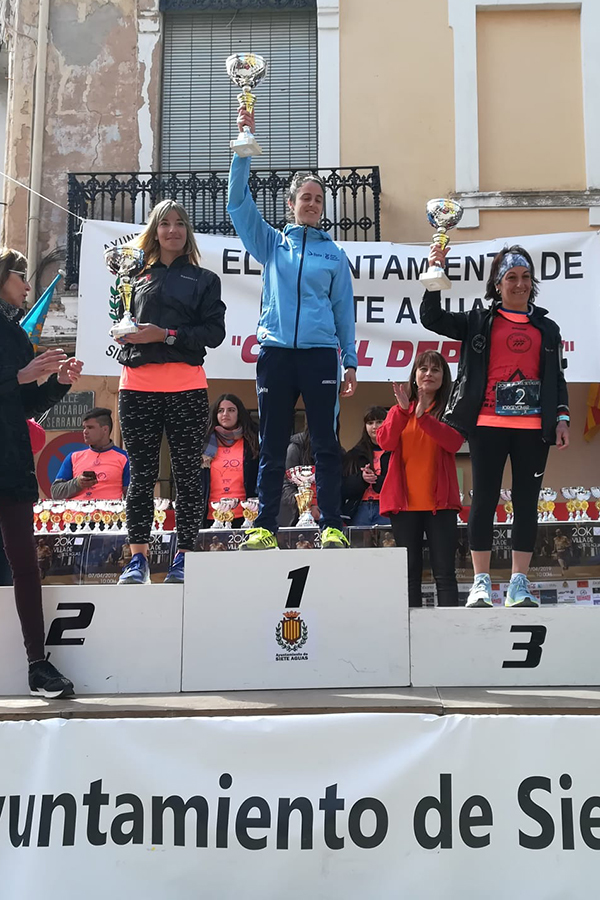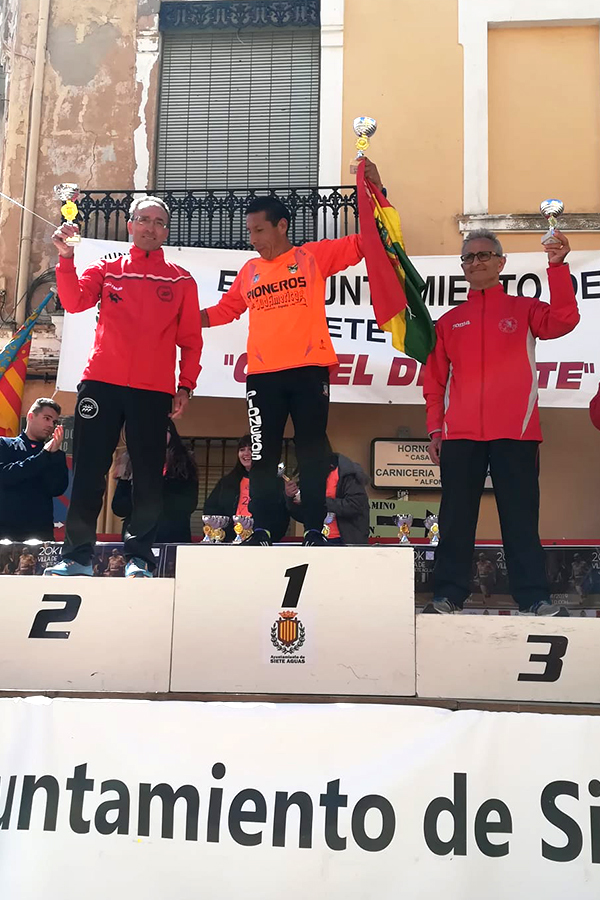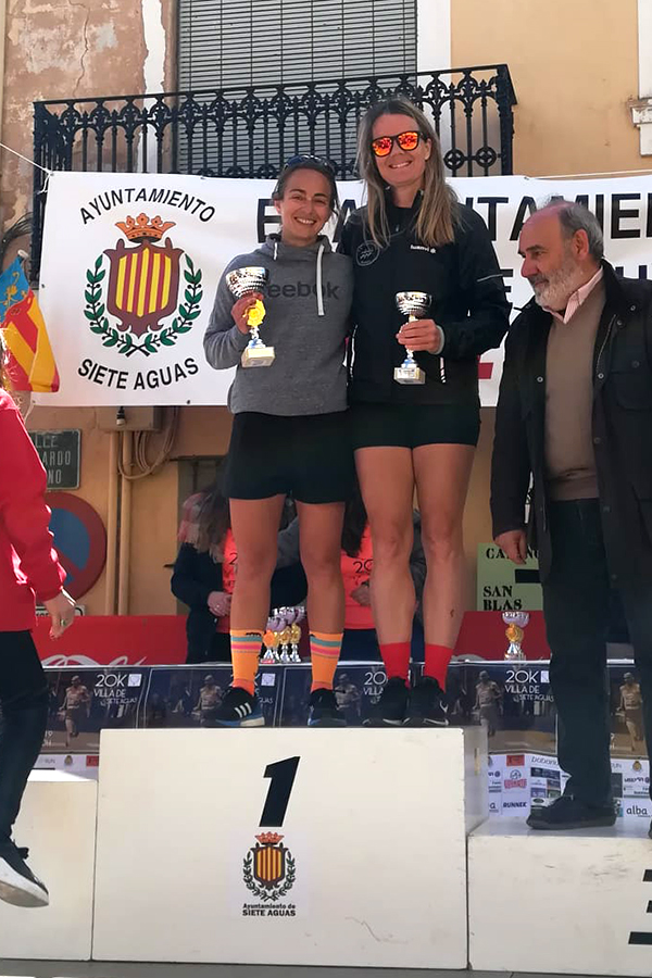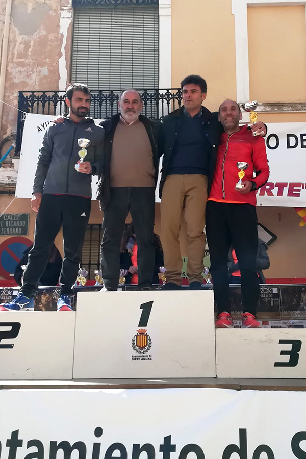 Este fin de semana el C.A. Correores de Buñol ha tenido una destacada actuación, que le ha valido para lograr multitud de podios. Comenzamos por la VI 20K Villa de Siete Aguas, celebrada el pasado domingo 7 de abril, donde se dieron cita casi 200 corredores. José Vicente Carrascosa “Peluko” volvió a demostrar su gran calidad finalizando en tercera posición de la general (2º senior), con un espectacular tiempo de 1:18:55 (a 3:56). Joaqui Garrigues (1:28:08) y Ramón Ginés (1:28:33) se colaron en el top20, logrando ambos subir al podio en sus respectivas categorías, veterano C y veterano D. Por su parte, Gema Cambres (1:38:40) acabó tercera de la general (2ª veterana A), mientras que Manuela Abel (1:50:51) subió al podio en categoría Veterana B. Además, participaron representando al C.A. Correores de Buñol Carlos Celda (1:33:42), José Celda (1:42:13) y Francisco Carrión (1:42:16).