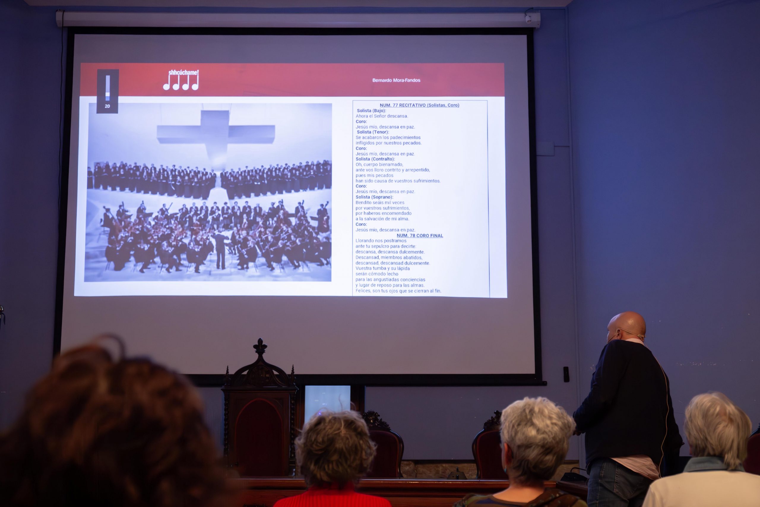 Durante el ciclo se han abordado diferentes épocas de la historia de la Música y otras temáticas como “Las profundidades emocionales” o “el amor en la música”. La última sesión ha versado sobre la Semana Santa y en ella se ha analizado en profundidad la obra Pasión según San Mateo de Johann Sebastian Bach.