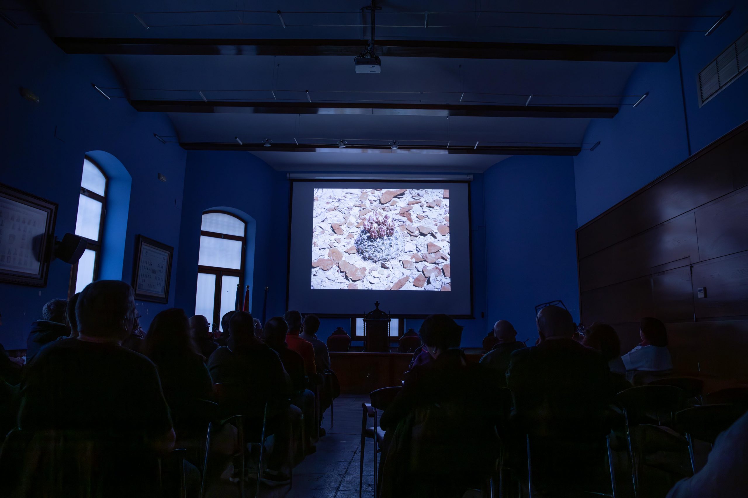En primer lugar las personas asistentes vieron la presentación de la historia de Joël Lodé, en la que el experto en cactus y suculentas explicó las estrategias de supervivencia de estas plantas, investigadas durante sus viajes por todo el mundo. “Hace decenas de millones de años la Tierra era como un invernadero tropical con vegetación frondosa, poco a poco el paraíso tropical se transforma en un infierno, pero afortunadamente el tiempo y la evolución permiten a las plantas y a los animales adaptarse al nuevo clima y soportar estas transformaciones del medio húmedo en árido, desarrollando cada uno su propio método; la selección natural hace que sobrevivan las plantas ancestrales, como las suculentas, que a día de hoy siguen en evolución y podrían seguir adaptándose a nuevos climas, a condición de que el hombre no interfiera”, explicaba Lodé.