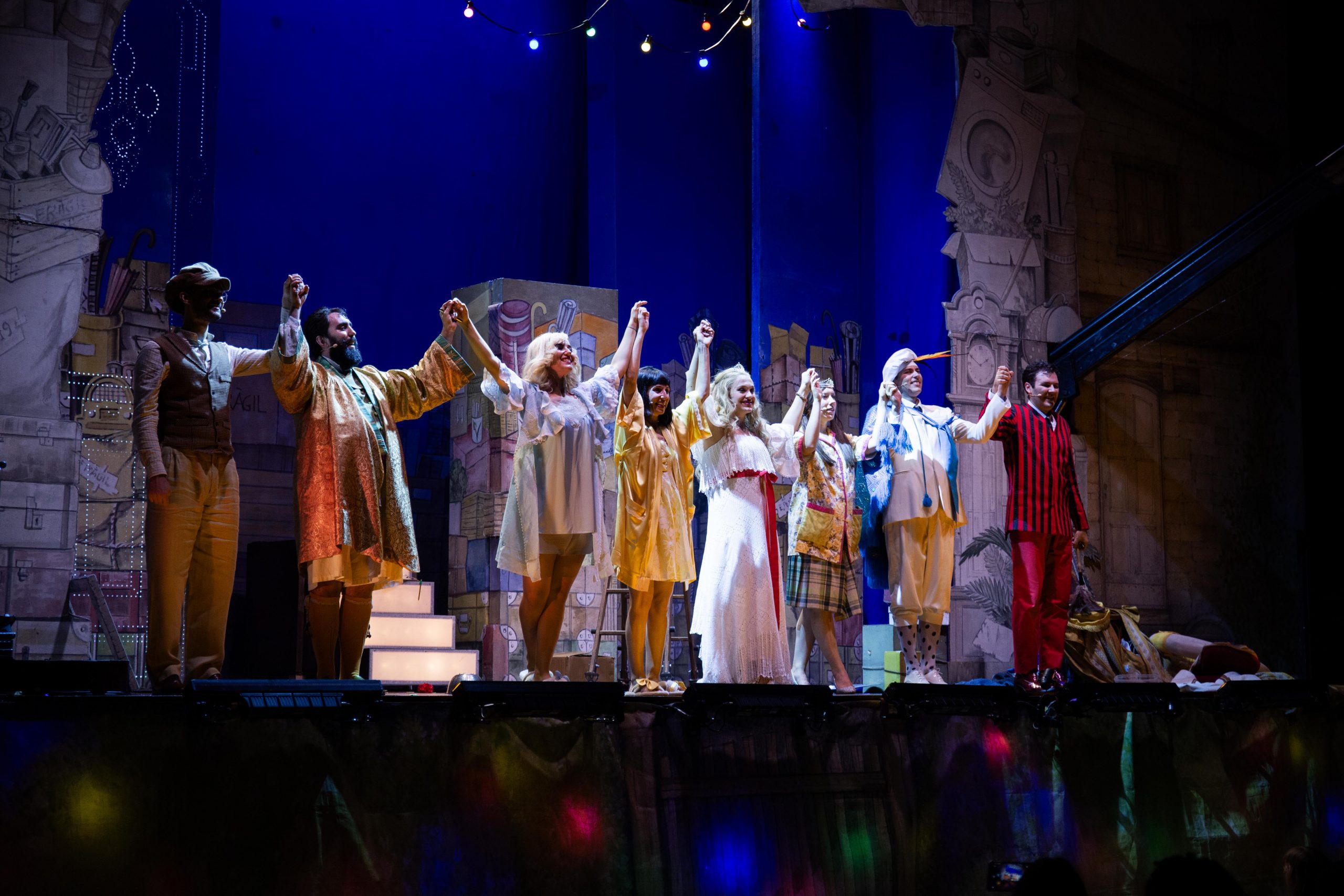 El espectáculo lírico se desarrolló en tres actos, en los que el público pudo contemplar a unos personajes influidos y rodeados por cantos y bailes alegres, entre los que se contaron valses, cuplés, polkas y mazurkas.