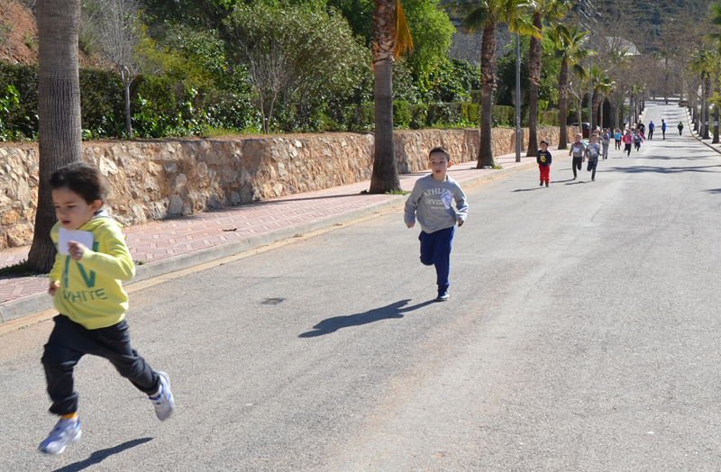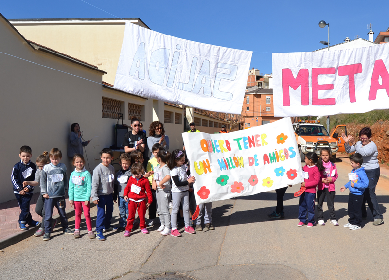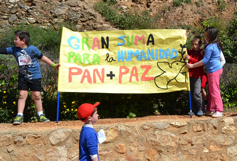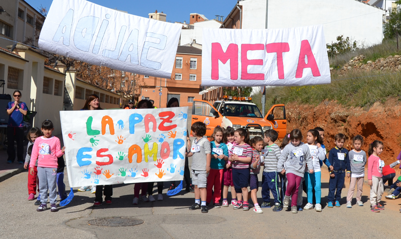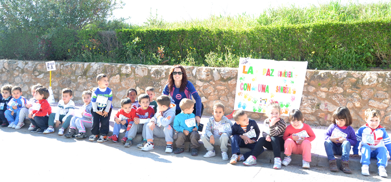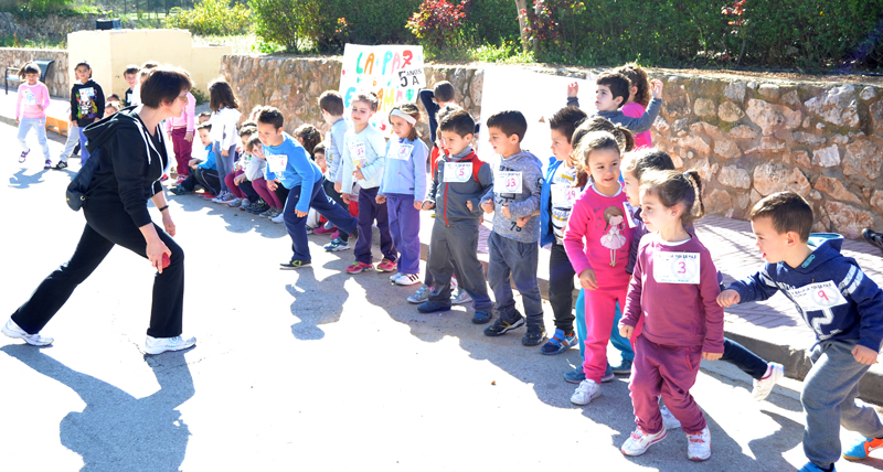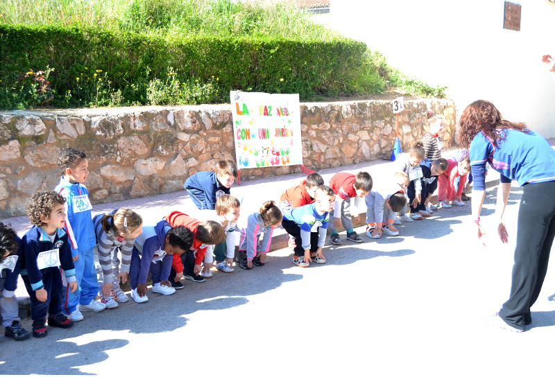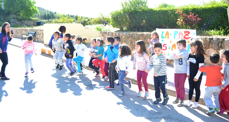 La carrera se dividió en dos turnos. Primero corrieron los más peques, de infantil, de 10 a 11 de la mañana, mientras que de 11.30 a 12.45 horas lo hicieron los alumnos y alumnas de primaria. Cada alumno llevaba un dorsal y cada clase había preparado una pancarta con un lema por la paz. Tras hacer un desfile mostrando sus pancartas, hicieron la carrera y cada grupo recibió un diploma por su participación.