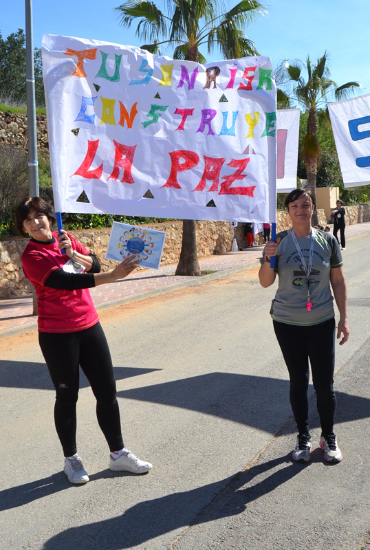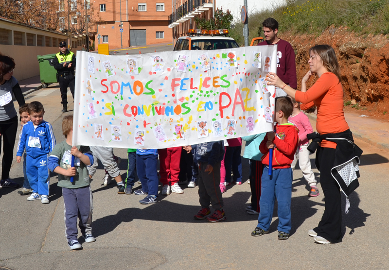 La carrera debía haberse disputado el 30 de enero, Día de la Paz, pero el viento impidió su celebración. Se ha aprovechado la Semana Cultural para celebrar esta bonita carrera, en la que todos y todas han disfrutado haciendo deporte y mostrando su rechazo a la violencia.
