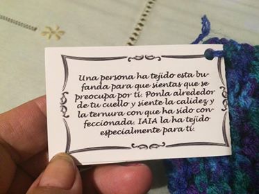 Se han elaborado gorros, cuellos, y bufandas, que servirán para que los más pequeños que acaban de salir del campo de refugiados de Calais, no se sientan desportegidos en este frío invierno. Además, cada prenda lleva una tarjeta con u mensaje de la persona que las ha tejido.