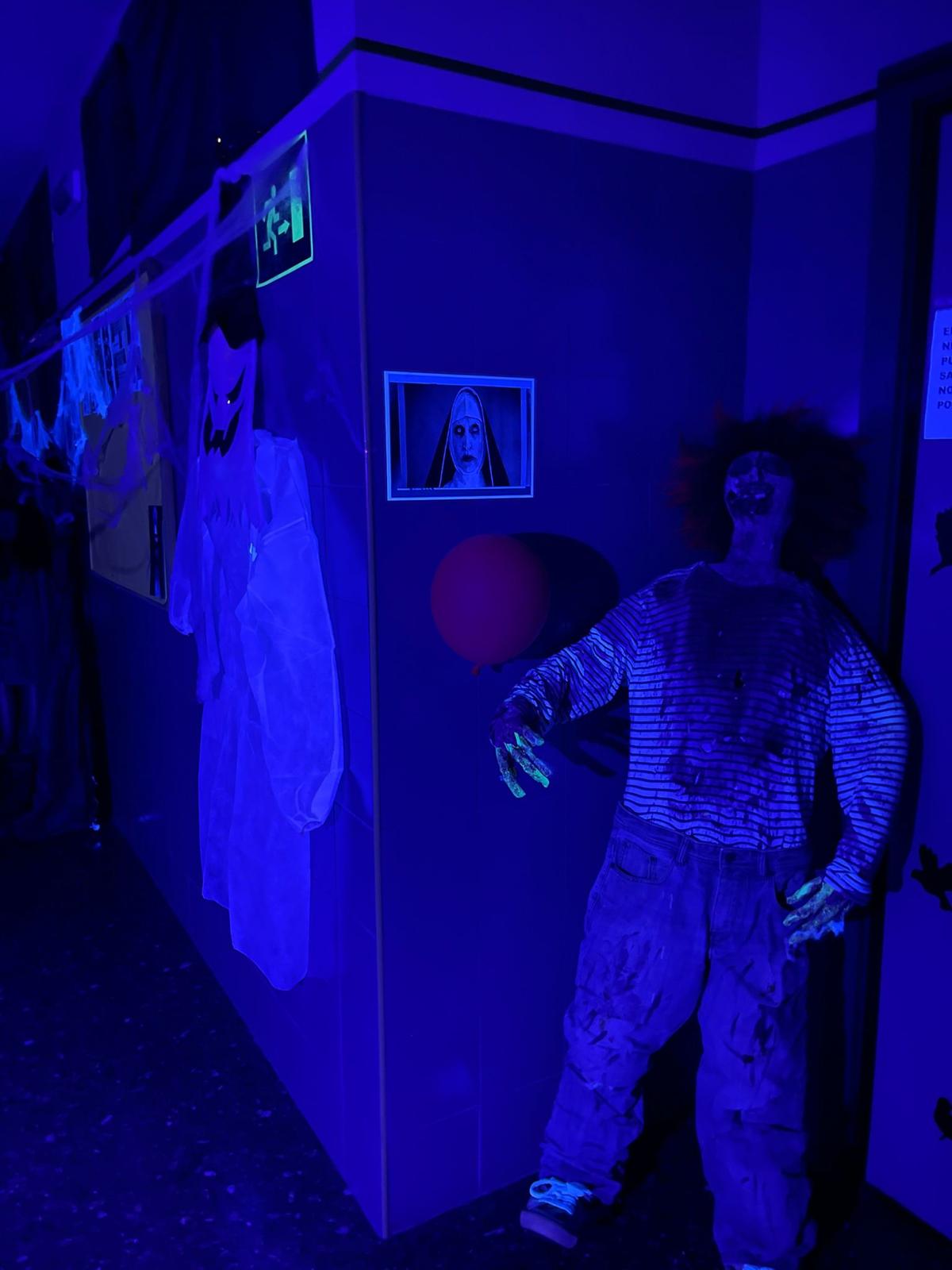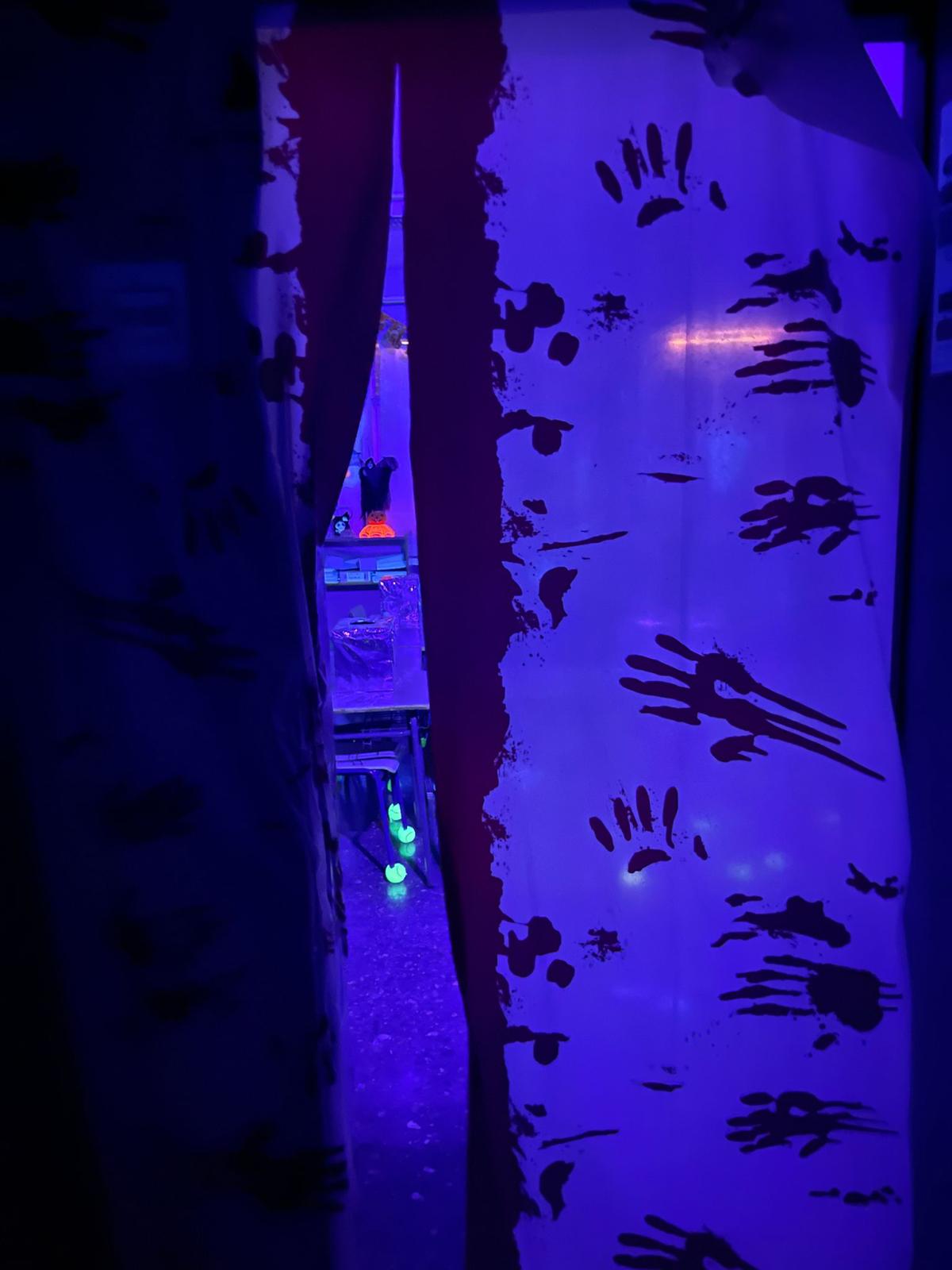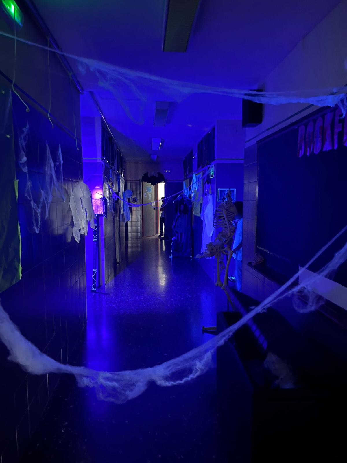 Primero, acompañamos al alumnado hasta el pasillo desde sus aulas, y tras ello, les contamos una historia de miedo y en qué iba a consistir el pasaje. Nosotros nos encargamos de que fuera más terrorífico, dando sustos a todo el mundo, saliendo de un ataúd, agarrados a una momia y a un cuchillo también, huyendo del lugar como si nos persiguiera un monstruo… En el aula de inglés estaba el resto de compañeros de sexto esperando para leer unas frases a los participantes con el fin de que averiguaran que había dentro de unas cajas, las cuales estaban llenas de cosas muy viscosas y asquerosas.