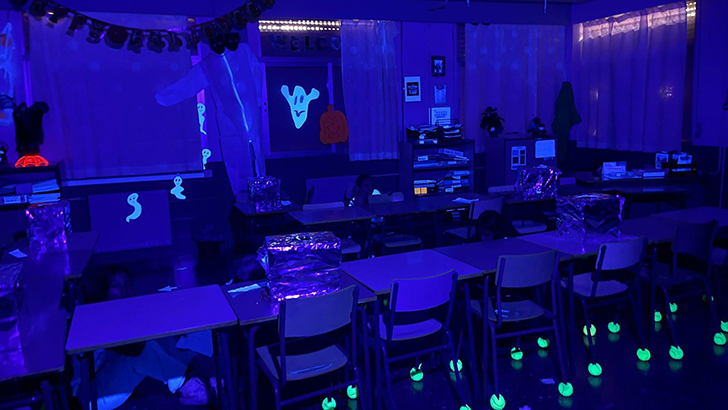 El martes 31 de octubre, Halloween llegó a nuestro colegio. Todos los alumnos nos disfrazamos ese día. Sexto creó un pasillo del terror y lo visitaron todos los alumnos de Primaria .Esta actividad se llevó a cabo en el pasillo de la planta baja y en el aula de inglés. Ahora os contaremos un poco como lo hicimos.