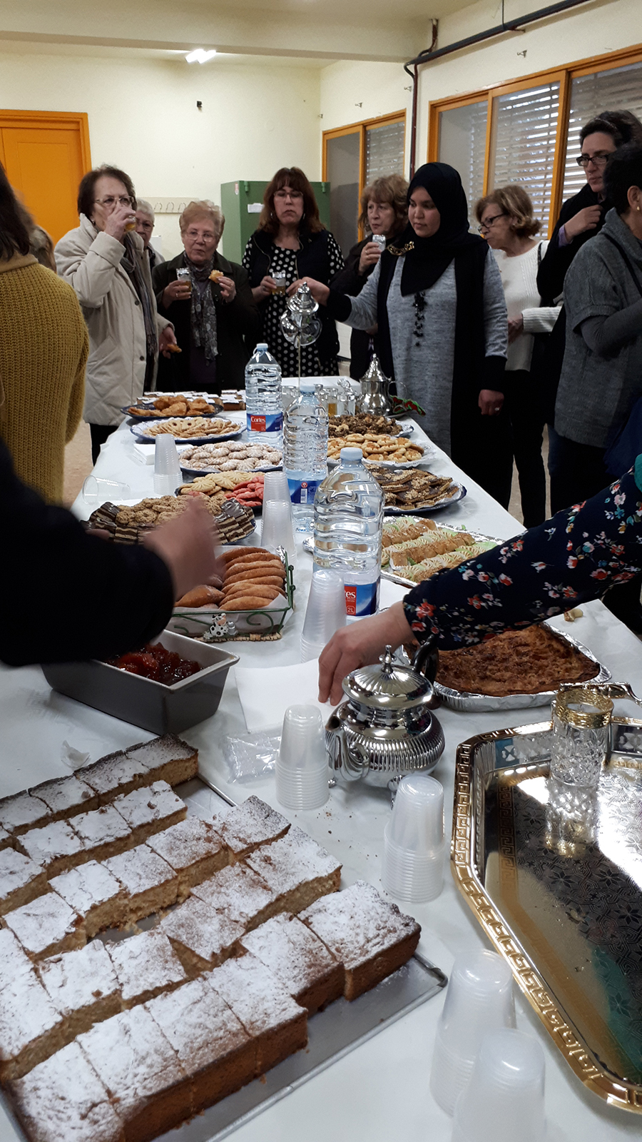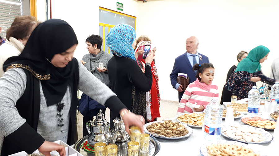 Después de un pequeño discurso a cargo de la edil y el recorrido por la exposición se procedió a la desgustación de dulces y té elaborados por las alumnas del taller «Español para extranjeros».