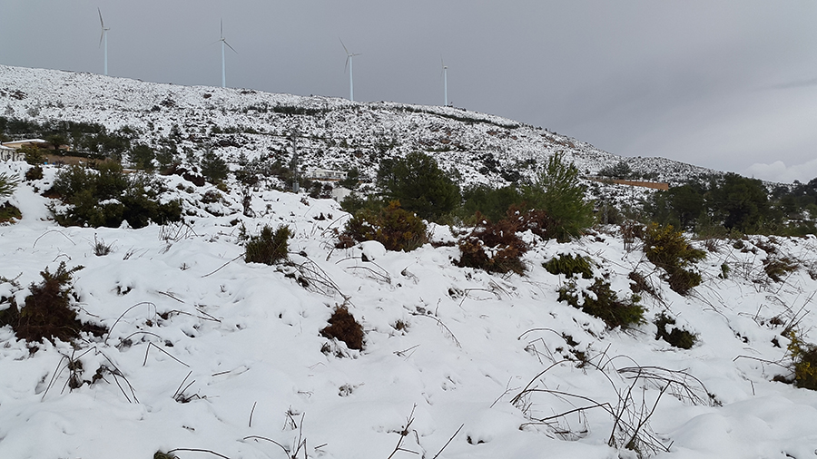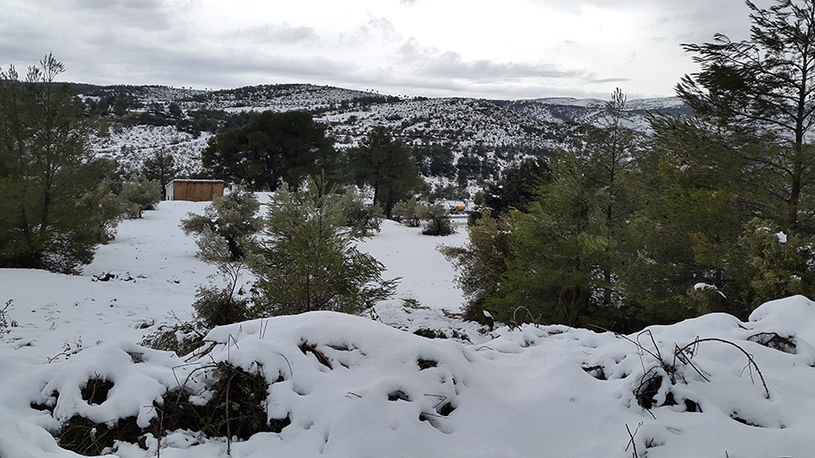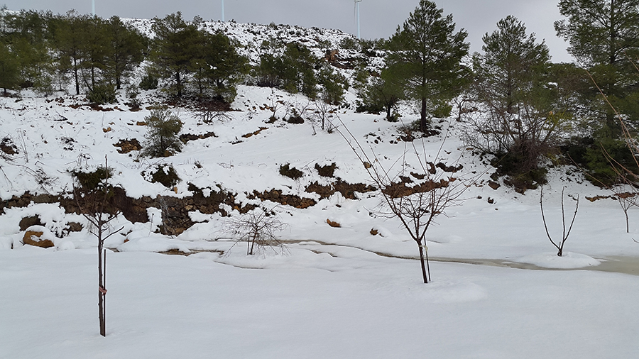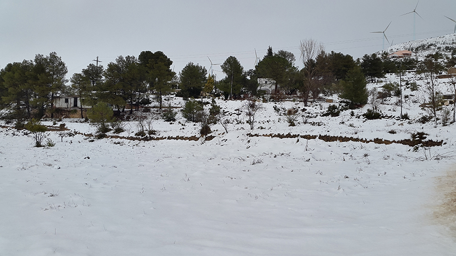También la nieve fue abundante en el conocido como camino de “Cañalagra” donde las pistas forestales presentaban una estampa totalmente navideña. Además, ya en el término de Yátova “La Rambla Bosna” y “La Condesa” también estaban cubiertas de nieve.