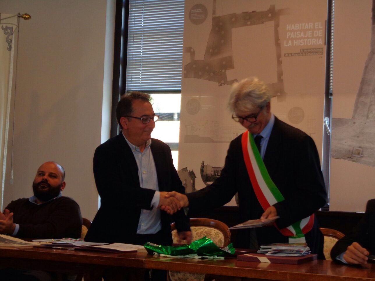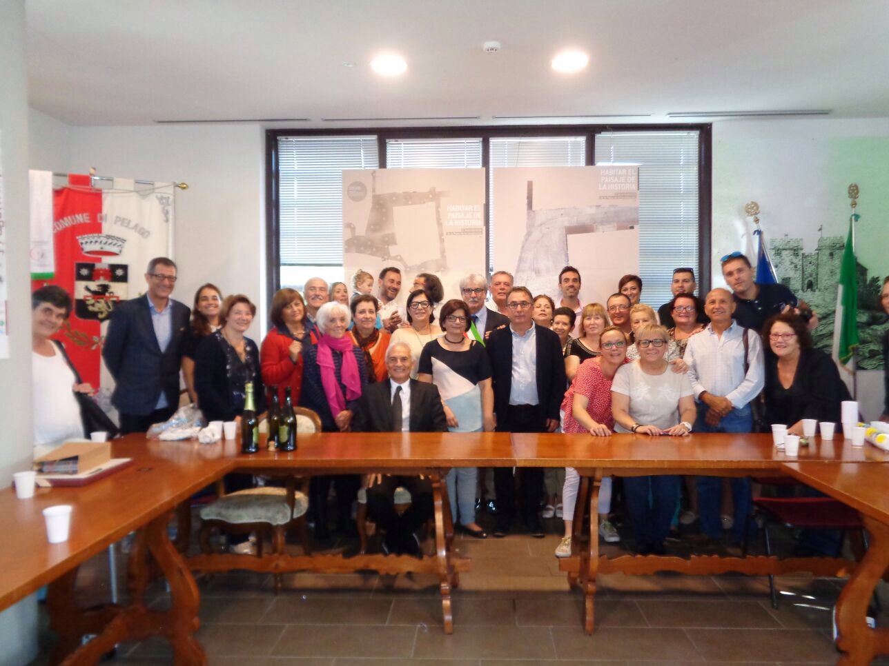 El sábado, día central de la visita, se realizó un pleno en el ayuntamiento italiano en relación al hermanamiento, al cual asistió todo el equipo de gobierno de esa bella localidad, la oposición, un diputado del parlamento europeo e incluso fueron invitados miembros del ejército y de la policía. Fue un acto de mucha relevancia que abrió el alcalde, Renzo Zucchini, seguido de las intervenciones del alcalde de Yátova, Miguel Esteban Tórtola, y del eurodiputado de la circunscripción, donde se dejó clara la necesidad de fomentar iniciativas culturales que estrechen lazos entre los pueblos y sus gentes. El acto finalizó con la entrega de unos detalles por parte de ambos municipios, haciendo Yátova entrega de un libro sobre la historia del pueblo, datado de 1955, y recibiendo de Pelago una litografía sobre las inundaciones que asolaron el pueblo en el siglo XVIII.