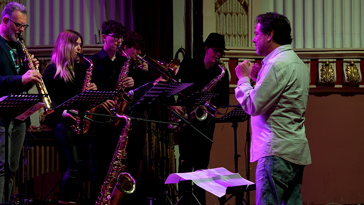 El fin de fiesta lo puso Comando Saxbone, formado por jóvenes músicos de La Artística, en los saxos David Alonso, Ariane Hernández y Ernest Almudever, con el trombón Hugo Más y con el bajo eléctrico Javi Siles. Junto al resto de participantes del concierto interpretaron “So what” de Miles Davis, arrancando la ovación del público asistente.