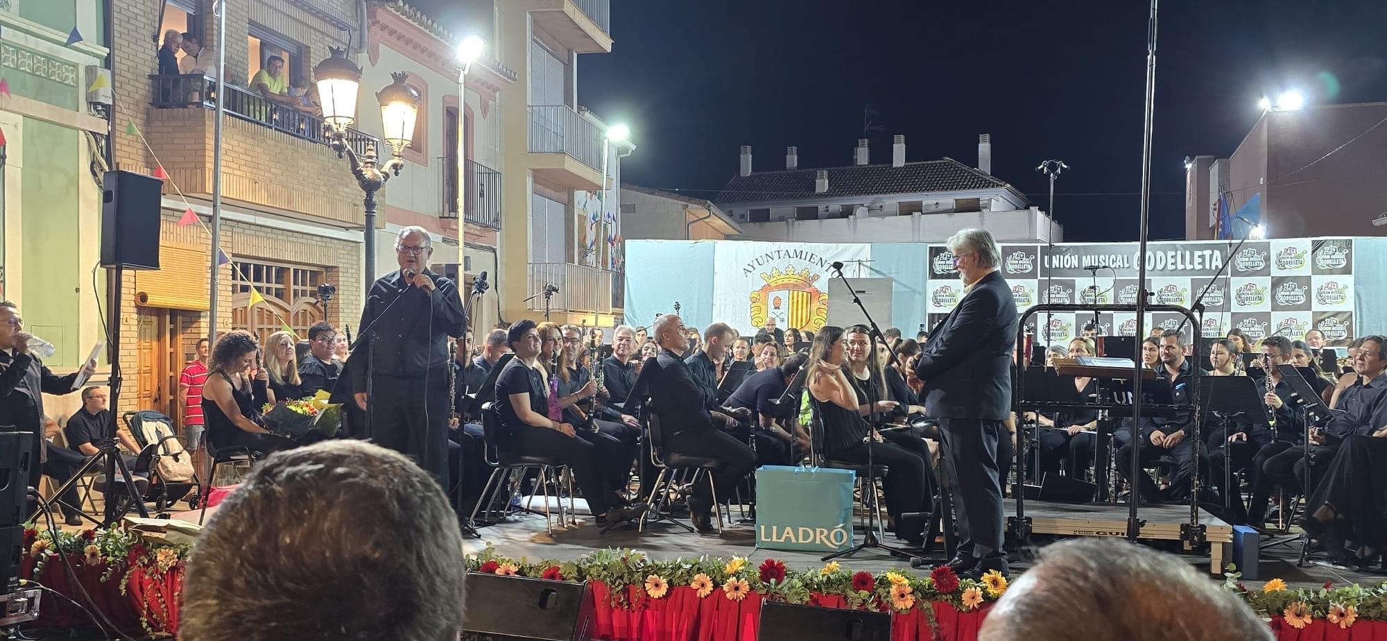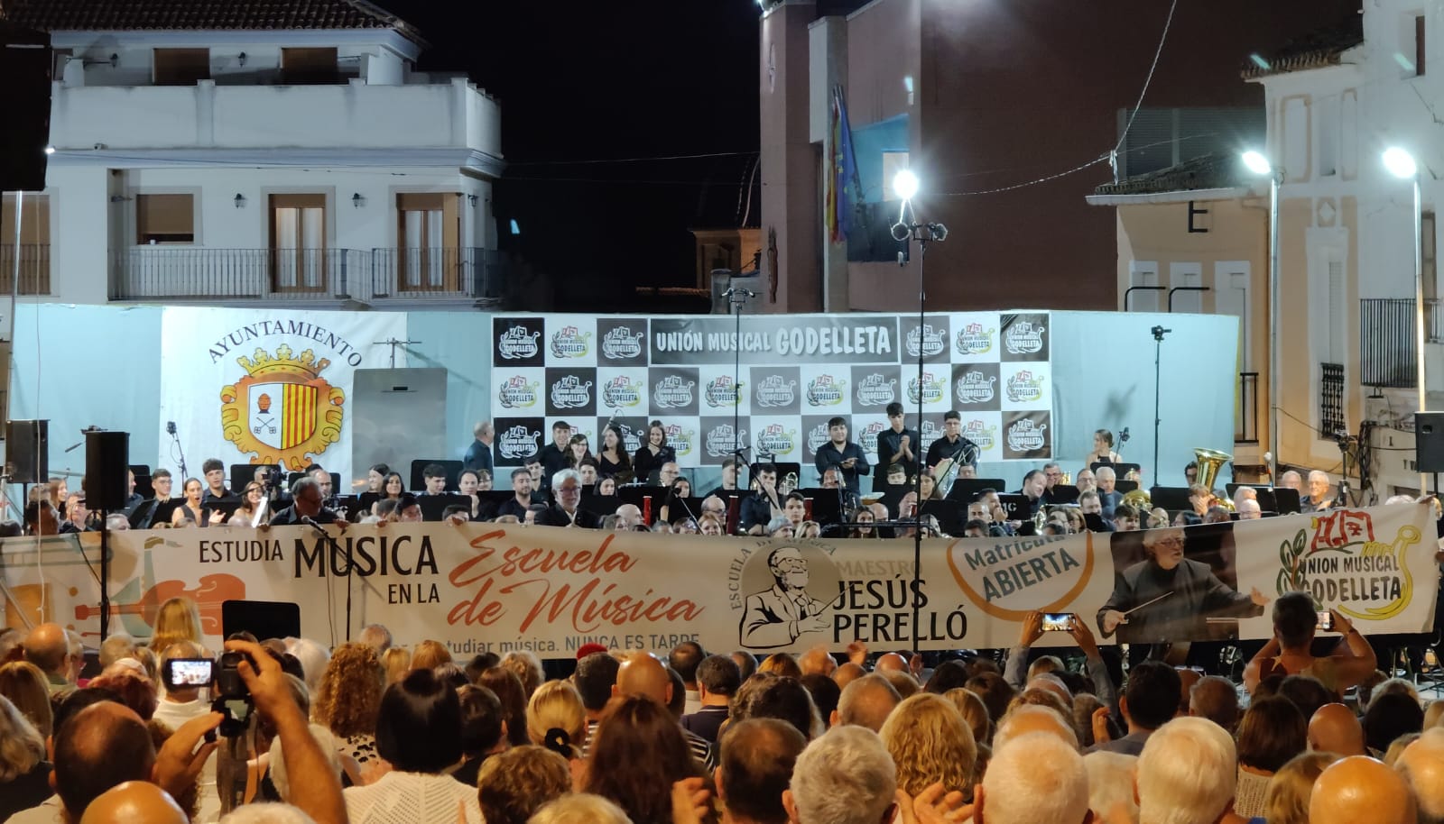 Redacción.- El director buñolense Jesús Perelló Fuster se despidió el pasado 14 de agosto de la que ha sido su banda durante 40 años, la Unión Musical de Godelleta. Lo hizo con un emotivo concierto que se realizó en la Plaza de España de la localidad y en él se reunieron multitud de músicos, entre los que estaba su hija Reyes, amigos del mundo de la música, amigos del mismo Jesús y gran parte de la masa social de la banda del pueblo. Ninguno se quiso perder el homenaje a Perelló, que fue agasajado y alabado en todo momento por amigos, músicos y por el presidente de la sociedad musical, que dedicaron varios discursos a un director que se lo ha dado todo a Godelleta. Lo último fue el Certamen Internacional de Bandas de Valencia.