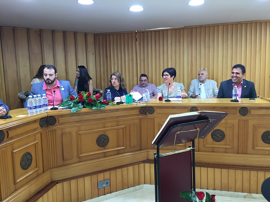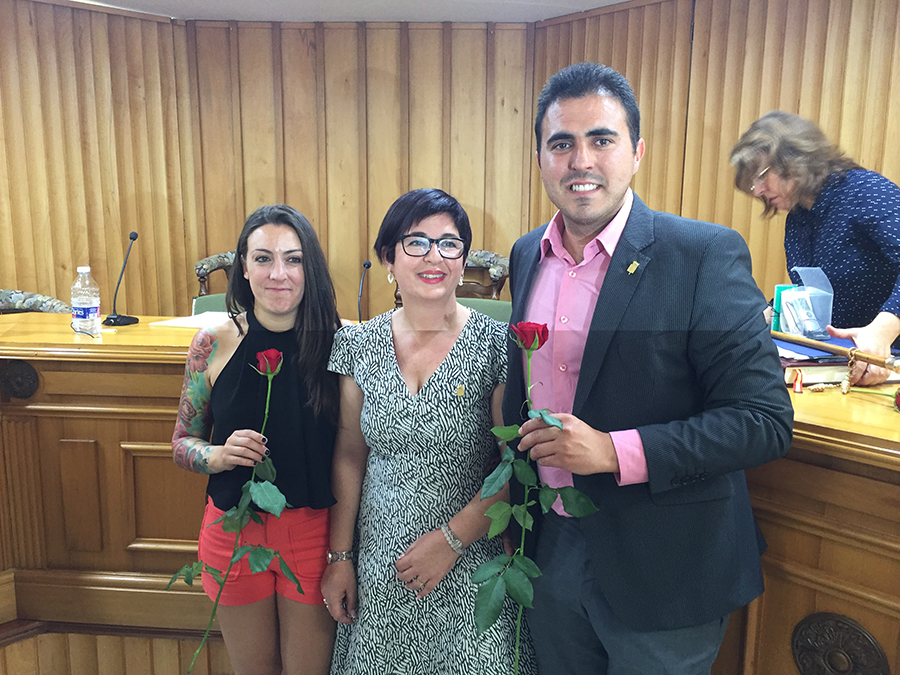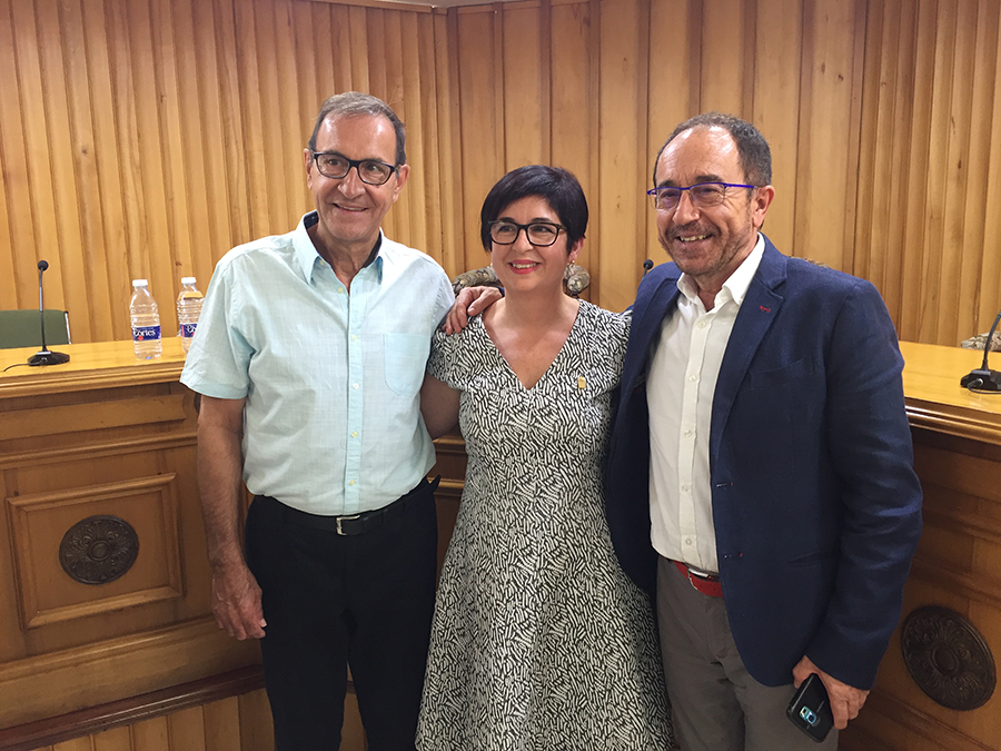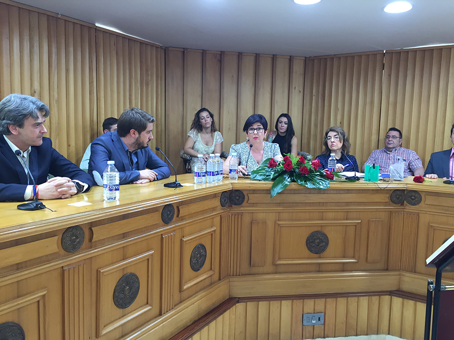 Con un Salón de plenos abarrotado por familiares, amigos y compañeros, el ya ex alcalde Rafael Pérez, el portavoz de Votamos, Alejandro Agustina y el portavoz de IAB, José Luis Carrascosa, le han dedicado palabras de apoyo a la nueva alcaldesa, que se ha comprometido a «trabajar duro por Buñol«.