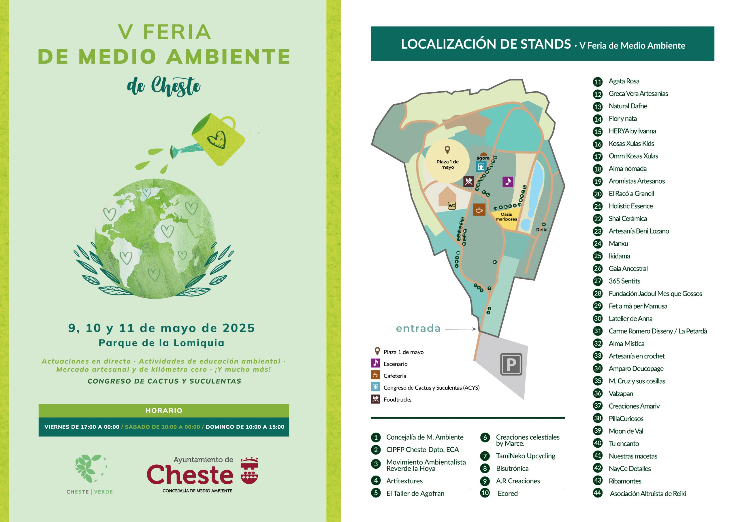 Redacción.- El próximo fin de semana, 9, 10 y 11 de mayo, Cheste celebrará la quinta edición de la Feria de Medio Ambiente de la localidad, que tendrá lugar en el parque de la Lomiquia desde las 17:00 del viernes hasta las 15:00 del domingo.