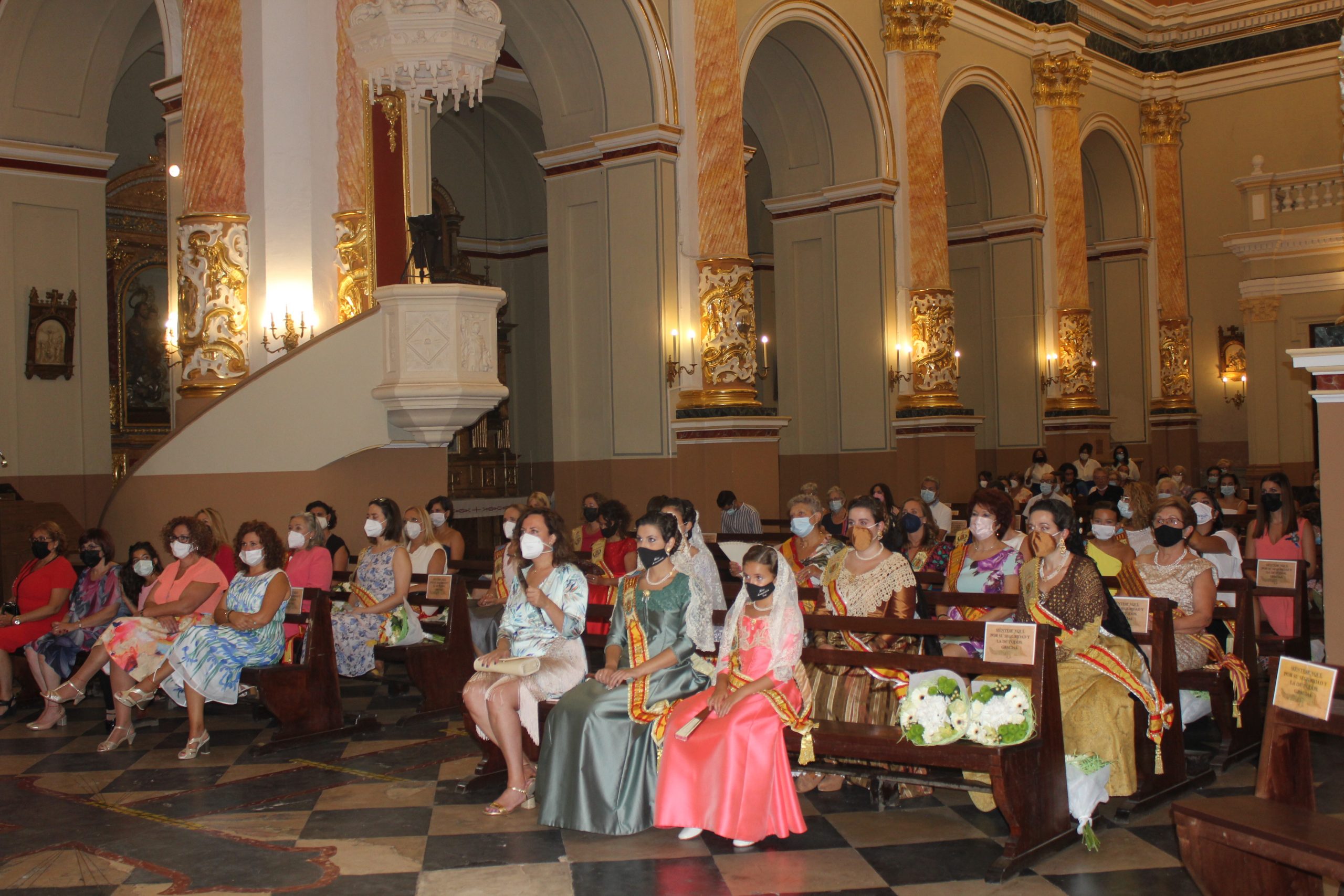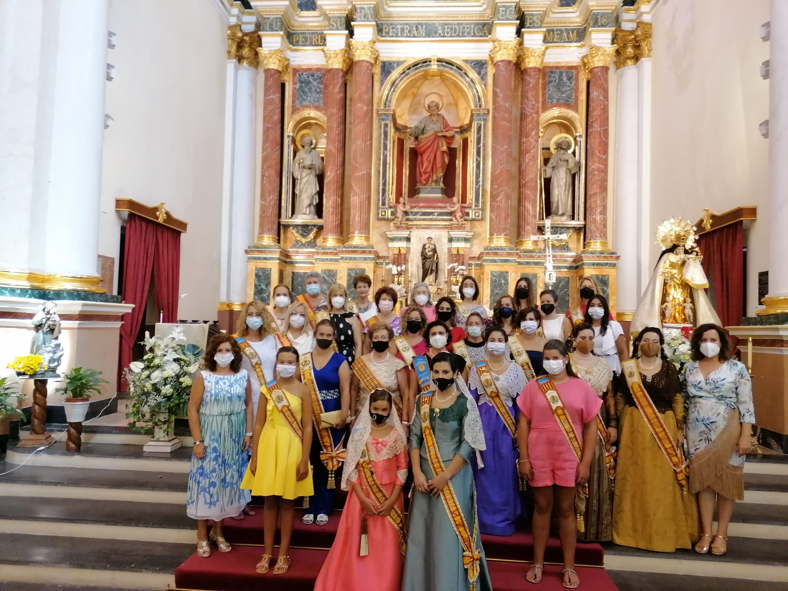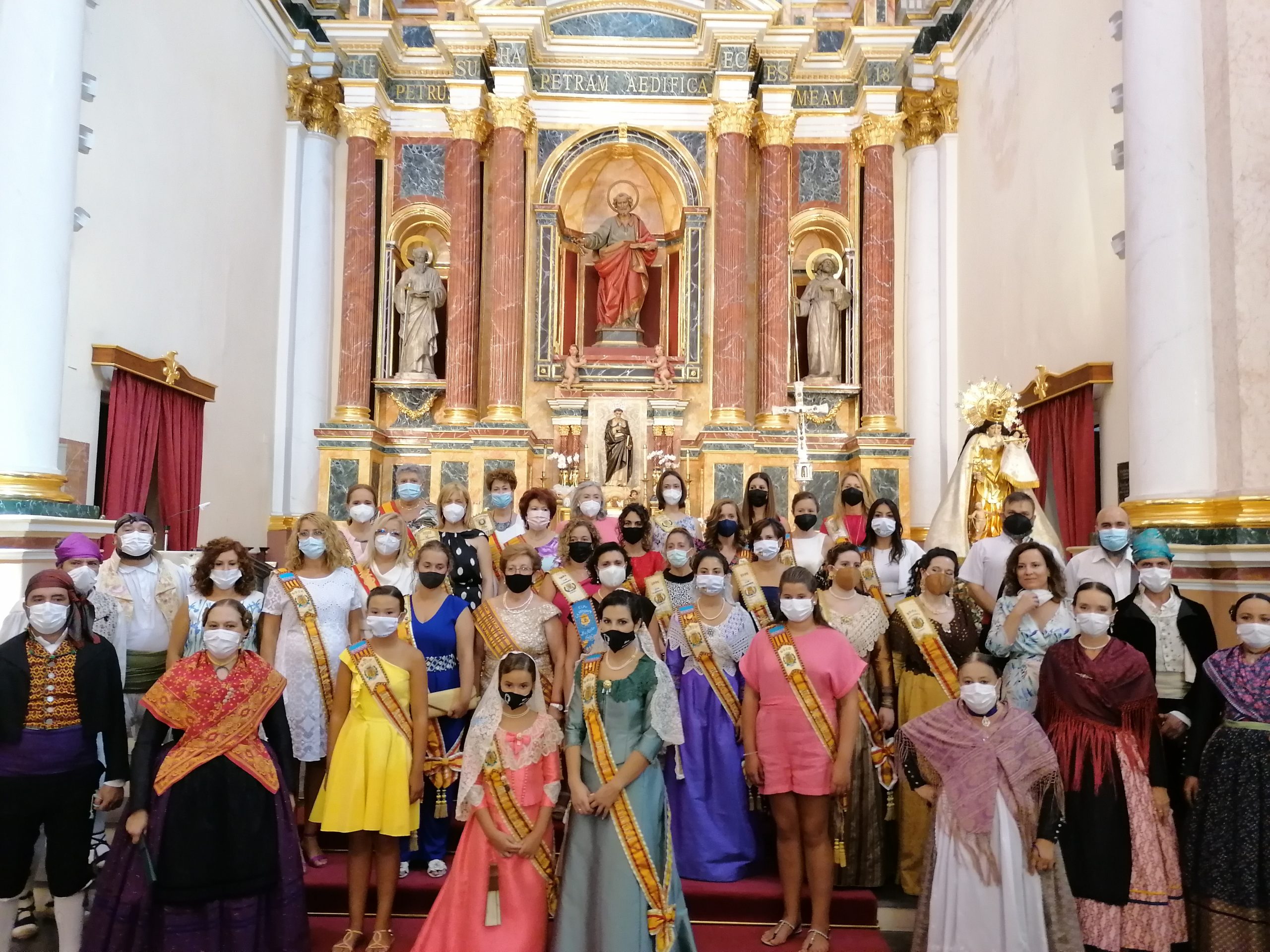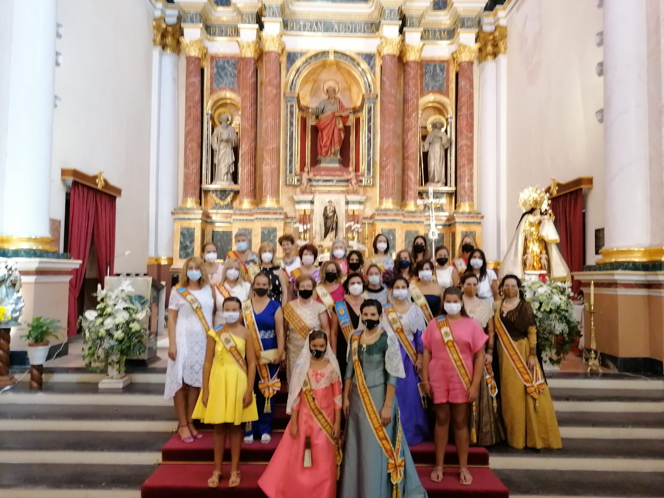 A las 12h se realizó una misa solemne y ofrenda simbólica por las Misses de La Armónica en la Iglesia de San Pedro Apóstol con aforo limitado, en la que se pudieron disfrutar de algunos bailes tradicionales. A esa celebración acudieron las Misses y Representantes de años anteriores vestidas de calle, pero con su banda correspondiente.
