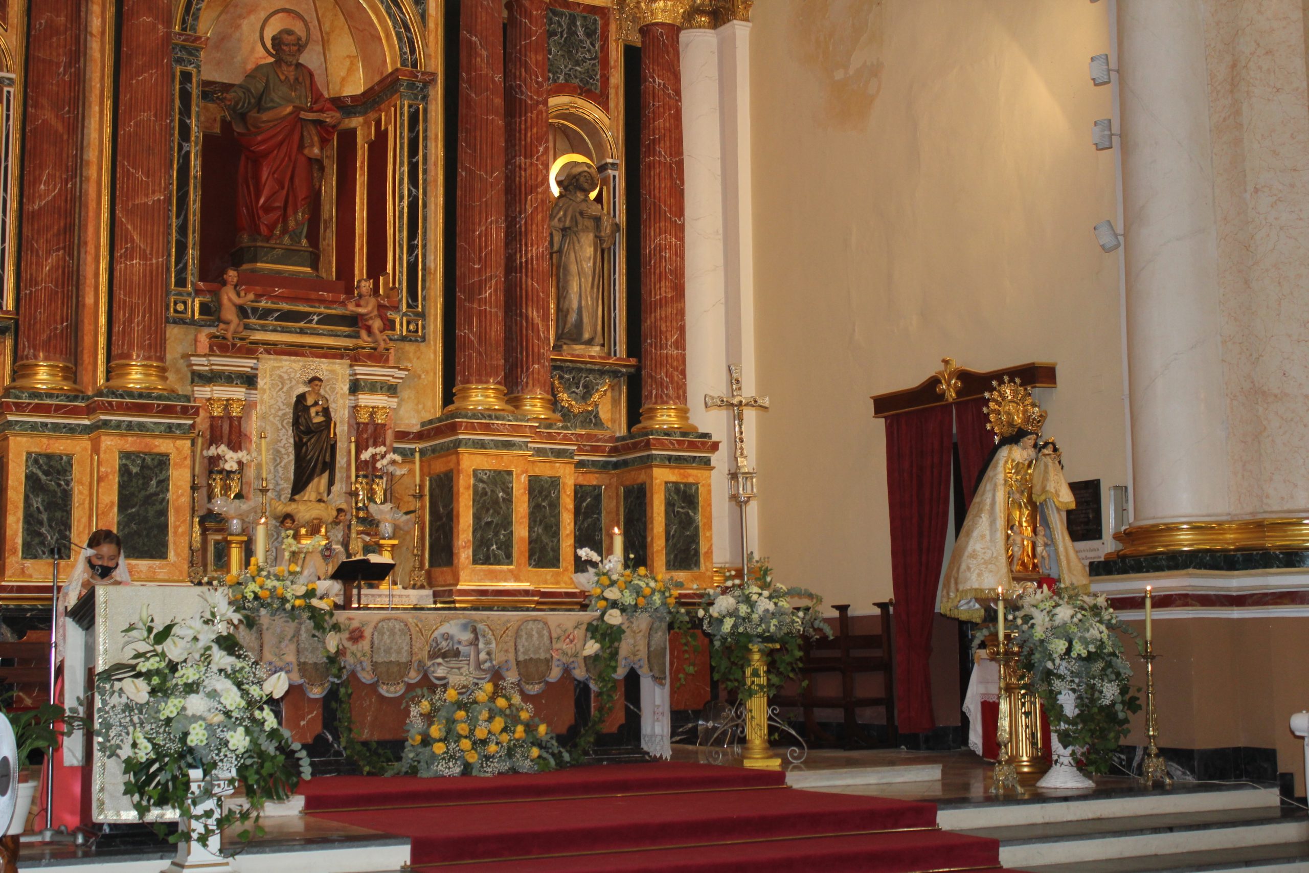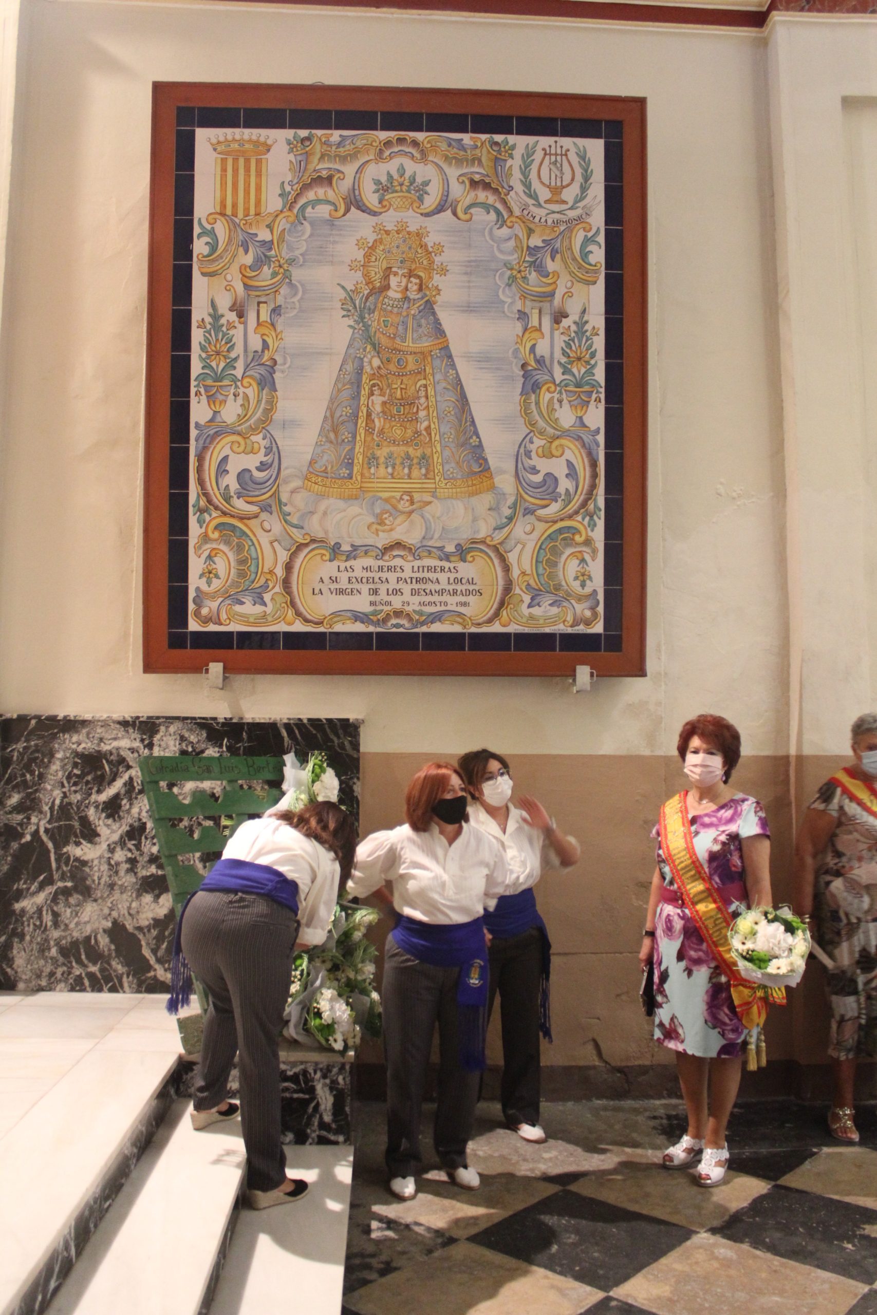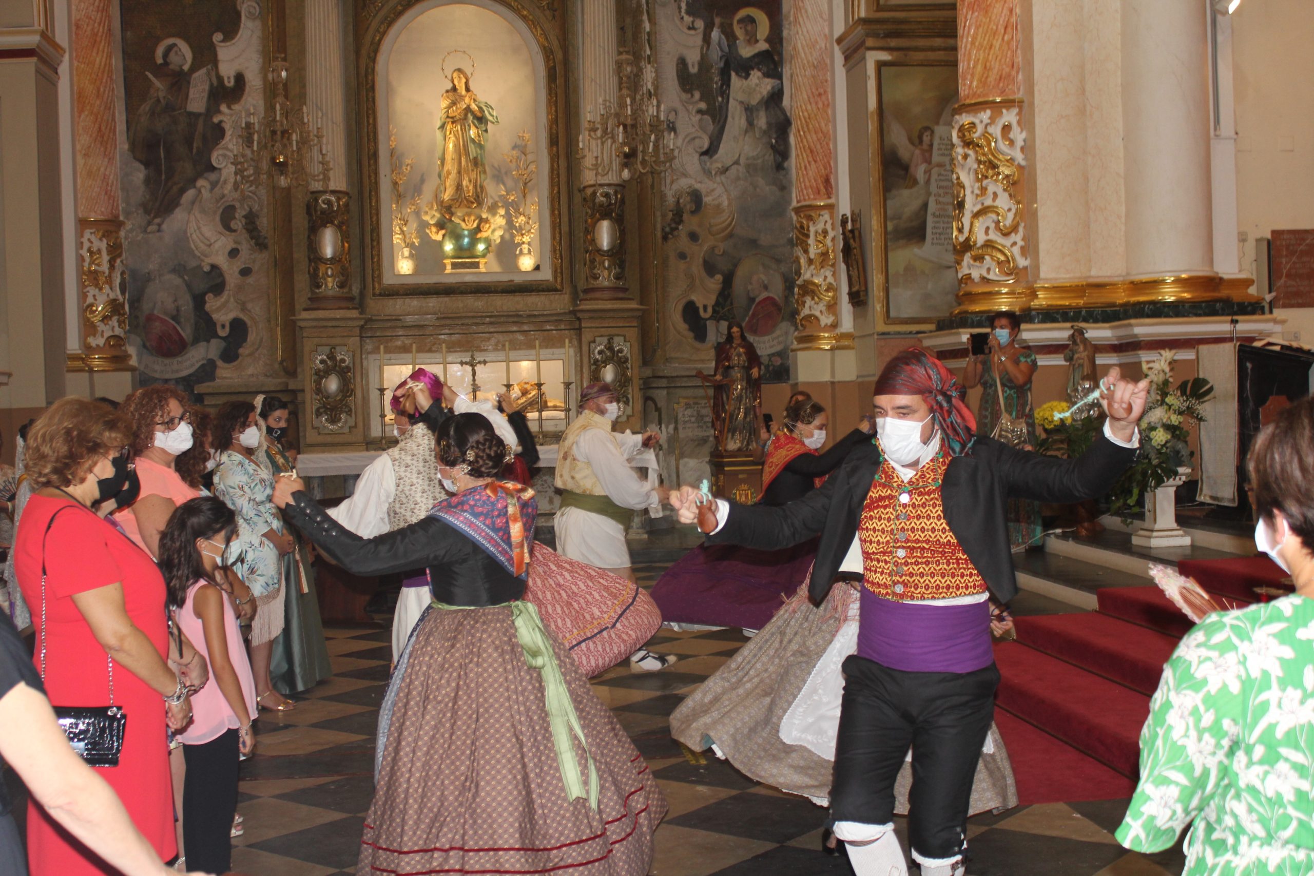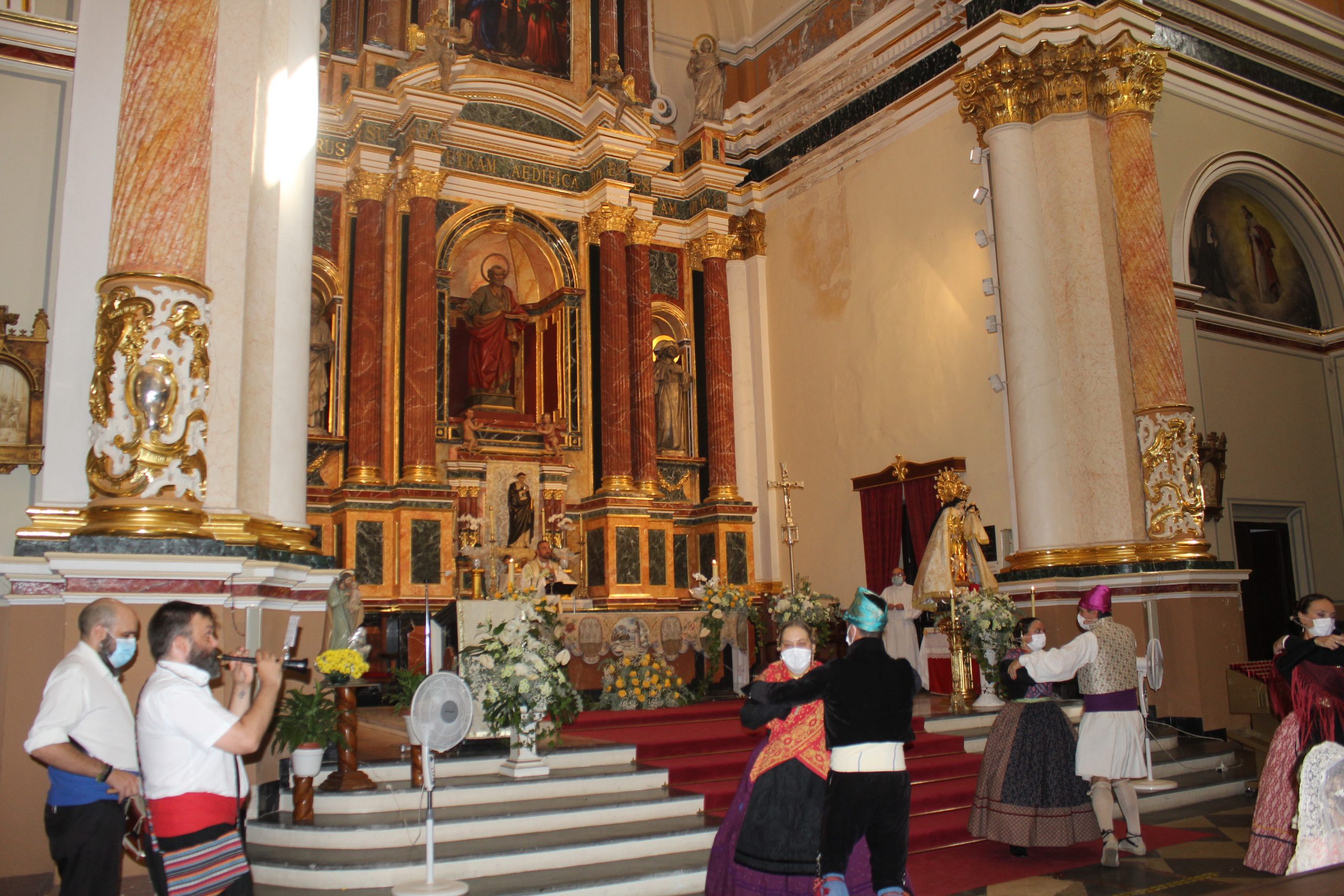 A las 12h se realizó una misa solemne y ofrenda simbólica por las Misses de La Armónica en la Iglesia de San Pedro Apóstol con aforo limitado, en la que se pudieron disfrutar de algunos bailes tradicionales. A esa celebración acudieron las Misses y Representantes de años anteriores vestidas de calle, pero con su banda correspondiente.