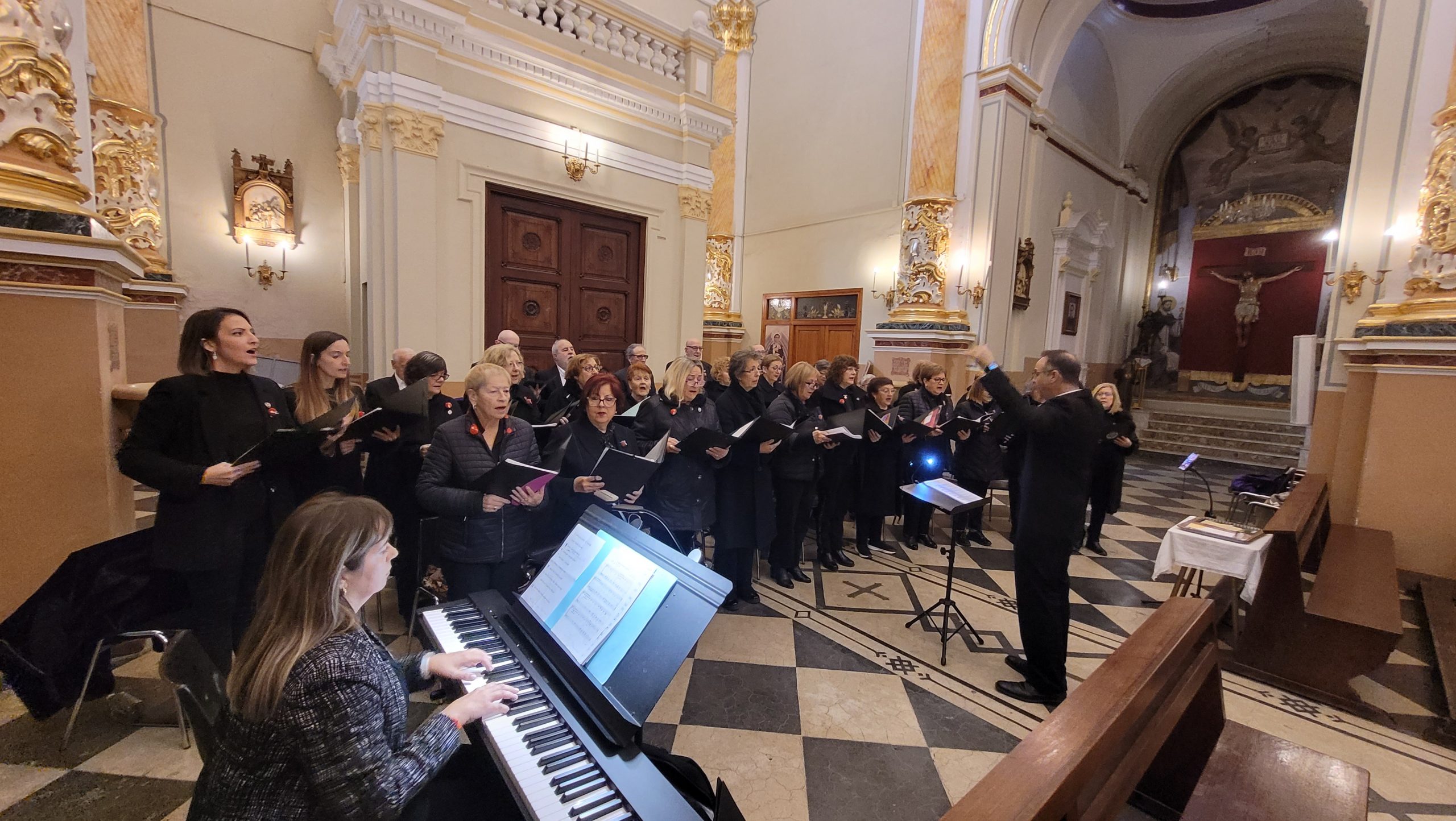 La jornada comenzó con una misa en la Iglesia San Pedro Apóstol, donde la Coral Polifónica CIM «La Armónica» ofreció una destacada actuación que llenó el templo de música y emoción. El repertorio interpretado por la agrupación aportó solemnidad y sentimiento a la ceremonia, creando un ambiente de recogimiento y tradición que conmovió a los presentes.