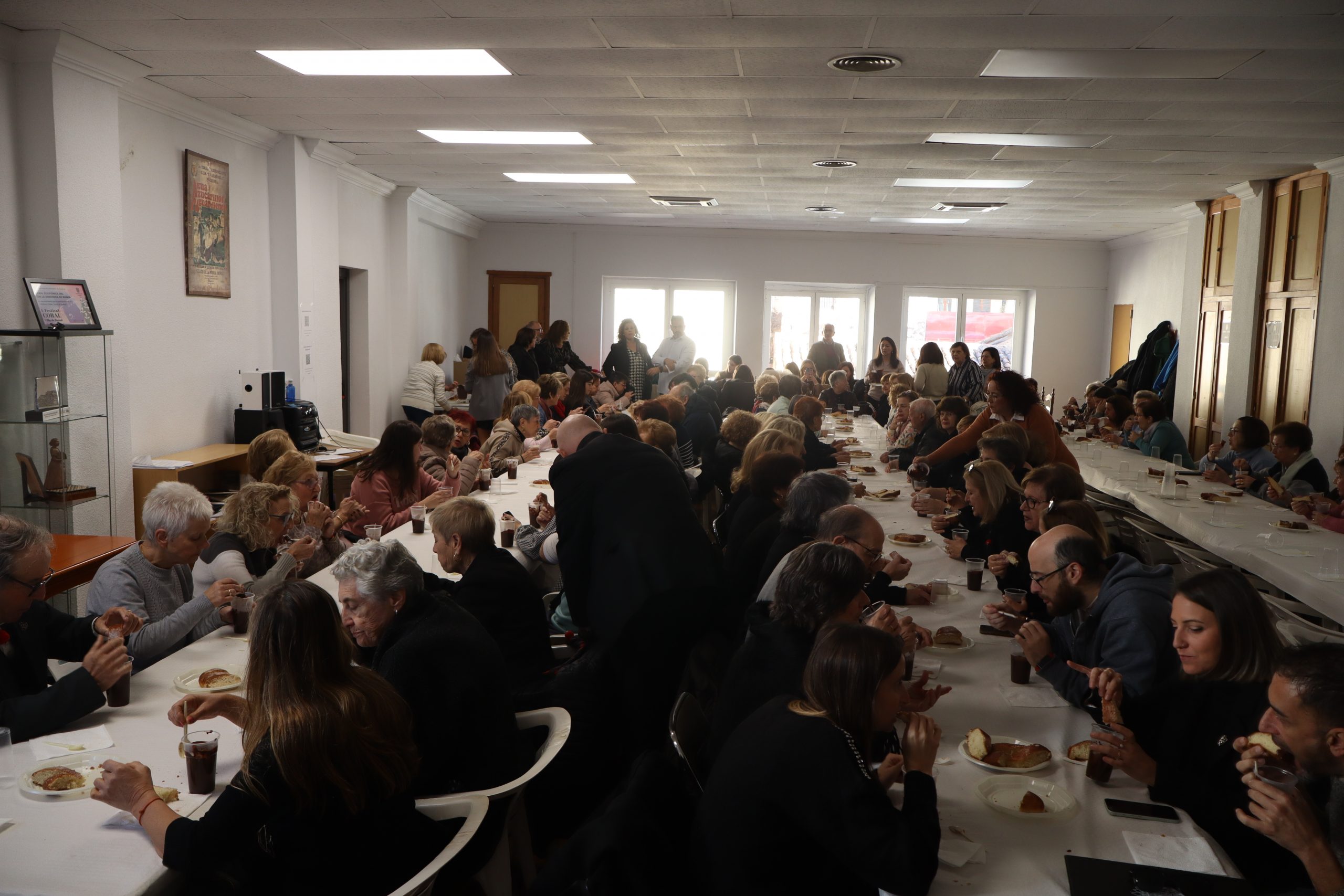 Tras la eucaristía, los actos continuaron en el Salón de Ensayos Manuel Vila, donde socios, amigos y simpatizantes se reunieron para compartir el tradicional chocolate de Santa Cecilia. Un año más, las colaboradoras voluntarias prepararon el chocolate casero que caracteriza esta cita, gesto por el que la sociedad mostró un profundo agradecimiento.