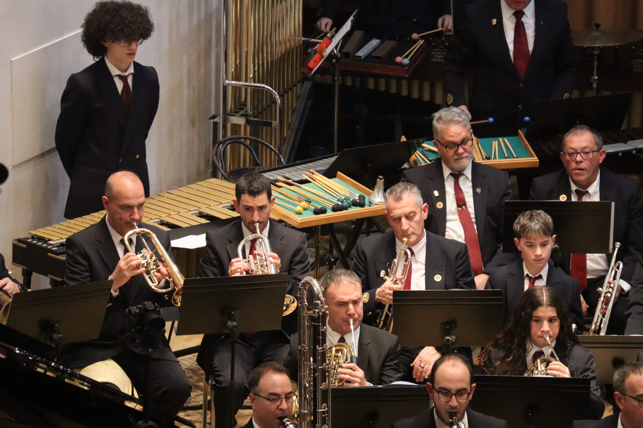 El programa de la noche estuvo cargado de piezas inolvidables que deslumbraron a todos los asistentes. Entre las composiciones interpretadas se destacó “A Mi Buñol” de M. Carrascosa, una obra que evocó el amor por la localidad y que llenó de emoción a los buñoleros presentes. También sonaron “With Heart and Voice” de D. R. Gillingham, y la majestuosa “Cuarta Sinfonía” de Alfred Reed, que cautivaron por su complejidad y armonía.