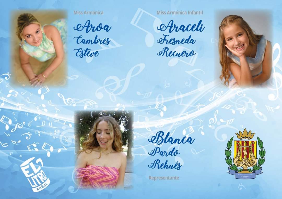 Redacción.- El Centro Instructivo Musical «La Armónica» de Buñol presentará este sábado a sus Misses y Representantes para el ejercicio 2024. Lo hará a las 22:30h en los Jardines de «La Armónica», más conocido como «Viachén».