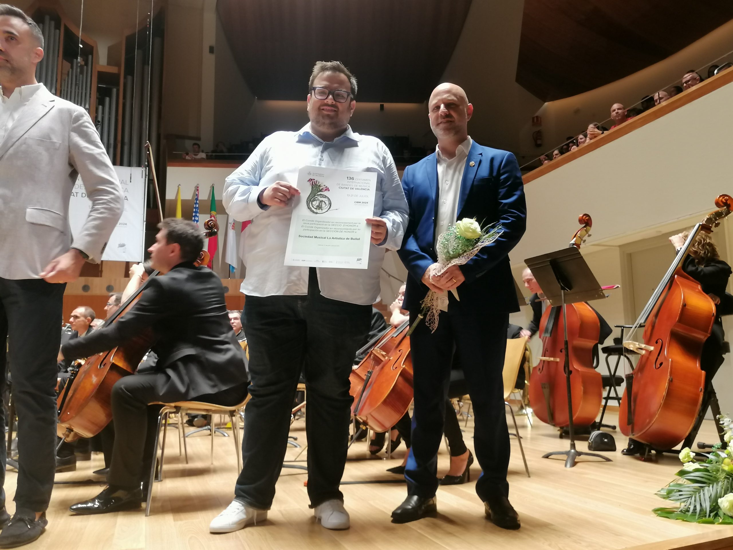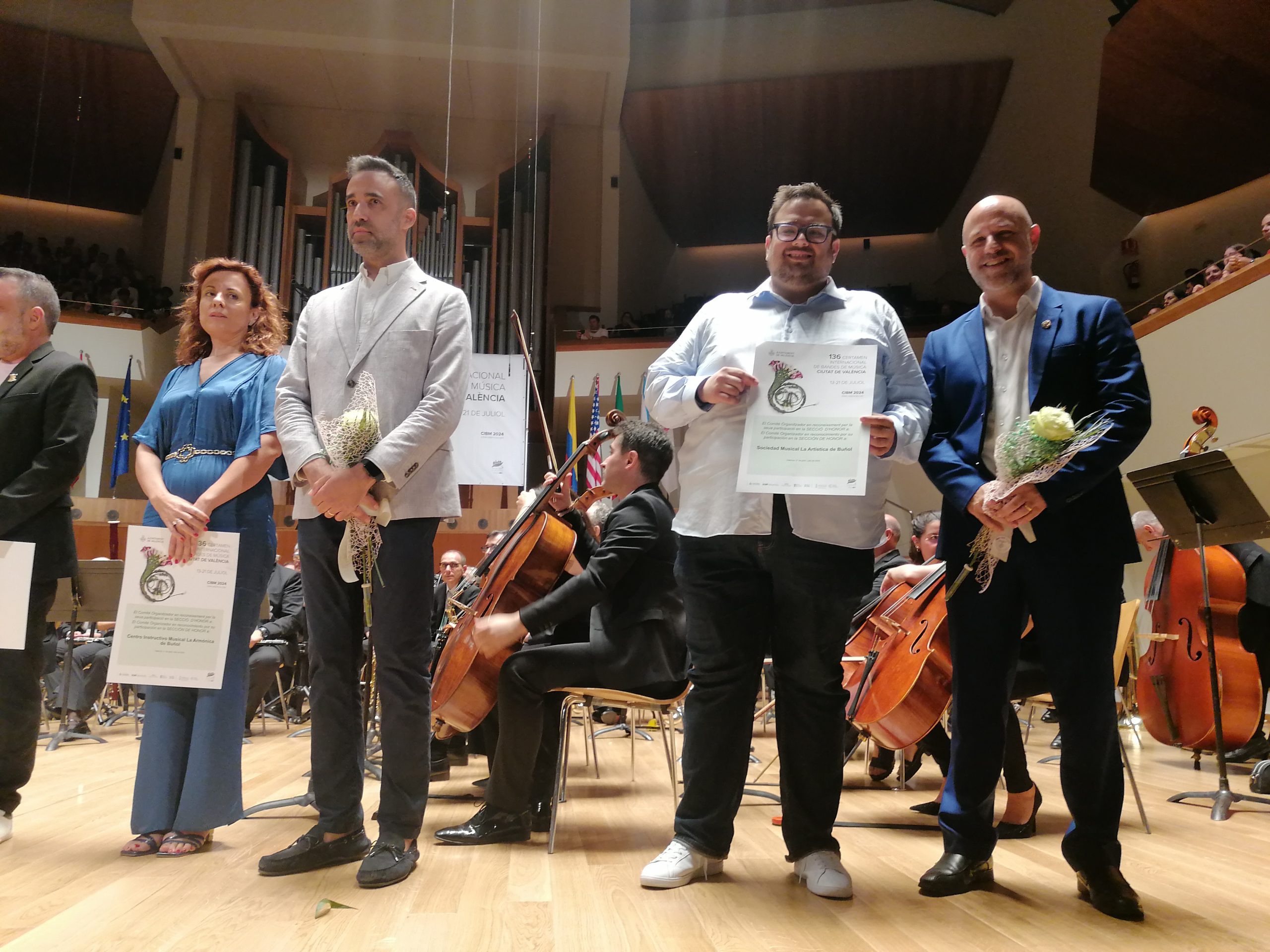 Ya por la tarde, y en último lugar, actuaba la SM «La Artística» que ha logrado el segundo puesto con 361’5 puntos y se ha quedado a tan solo tres puntos de la ganadora. «Los Feos», bajo la batuta de Mario Ortuño ha interpretado el pasodoble «Fiestas de San Jorge» de Azael Tormo, luego fueron con la obra obligada y terminaron con una espectacular «Sinfonía nº4» de David Maslanka, que también hizo rugir el Palau de la Música. Socios, simpatizantes y amantes de la música se unieron en un aplauso unánime, que inundó el recinto durante varios minutos.