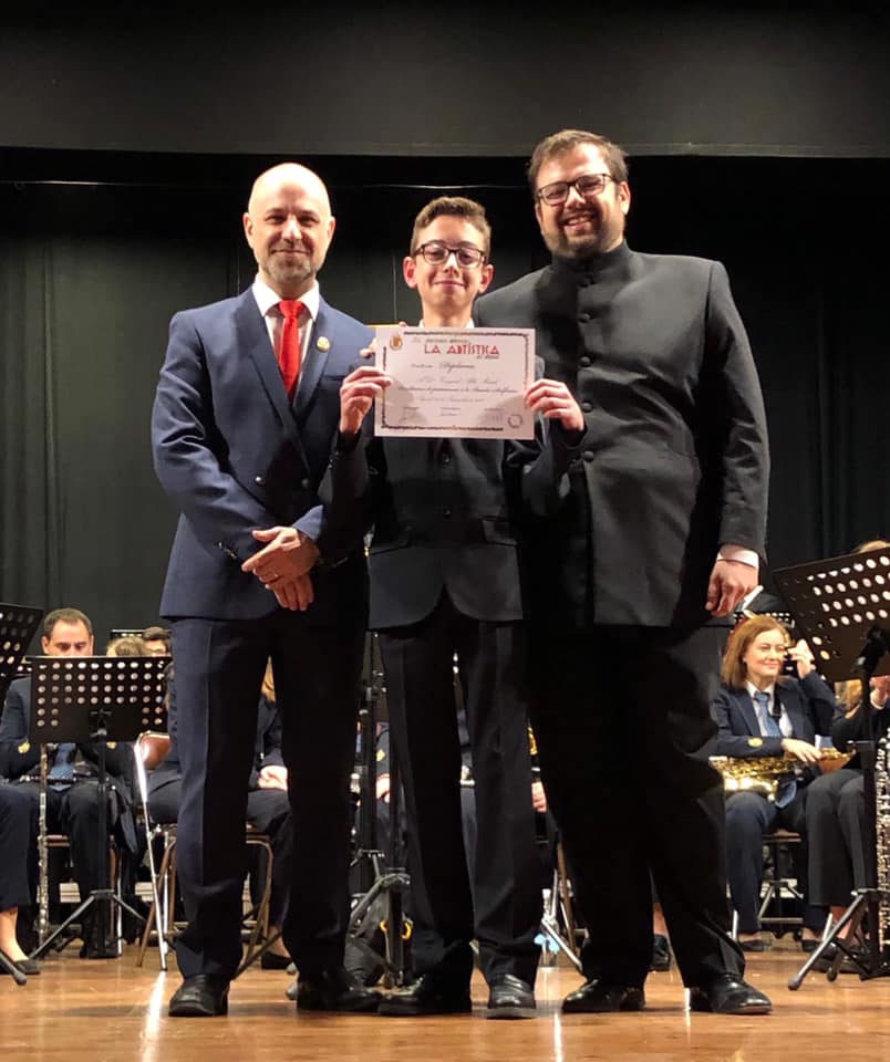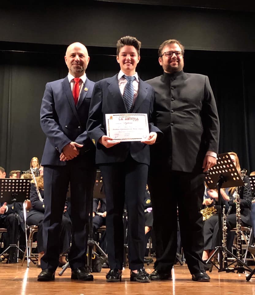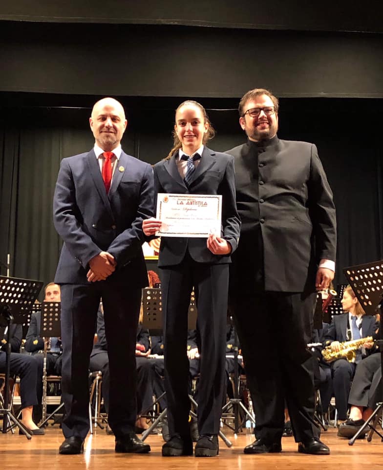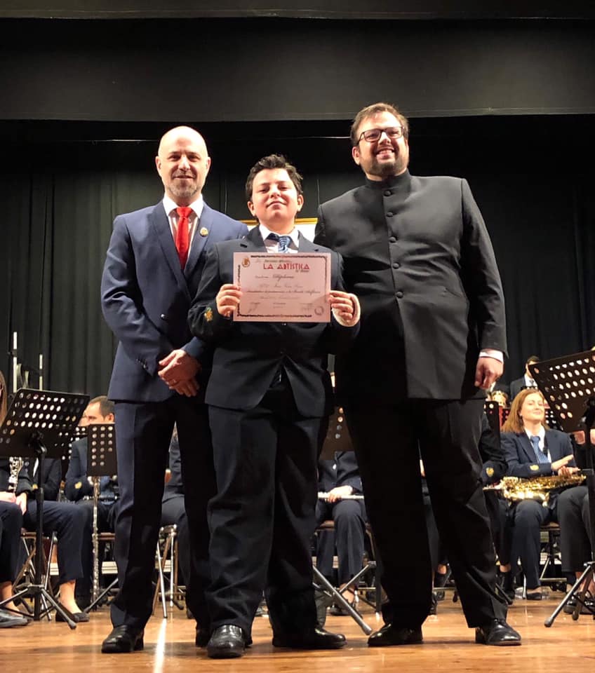 Redacción.- La Banda Sinfónica de la Sociedad Musical «La Artística» de Buñol aprovechó su tradicional concierto en honor a Santa Cecilia para presentar a las y los nuevos músicos que se incorporan a la formación. Fue un acto muy emotivo, donde los jóvenes músicos se mostraron nerviosos por el acto en sí, no por tener que tocar con la Banda Sinfónica. Uno a uno fueron subiendo al escenario y recogieron un diploma que les acredita como nuevos integrantes de la banda. Les hizo entrega de este diploma el presidente de la sociedad, Francisco Blasco, acompañado del director, Mario Ortuño.