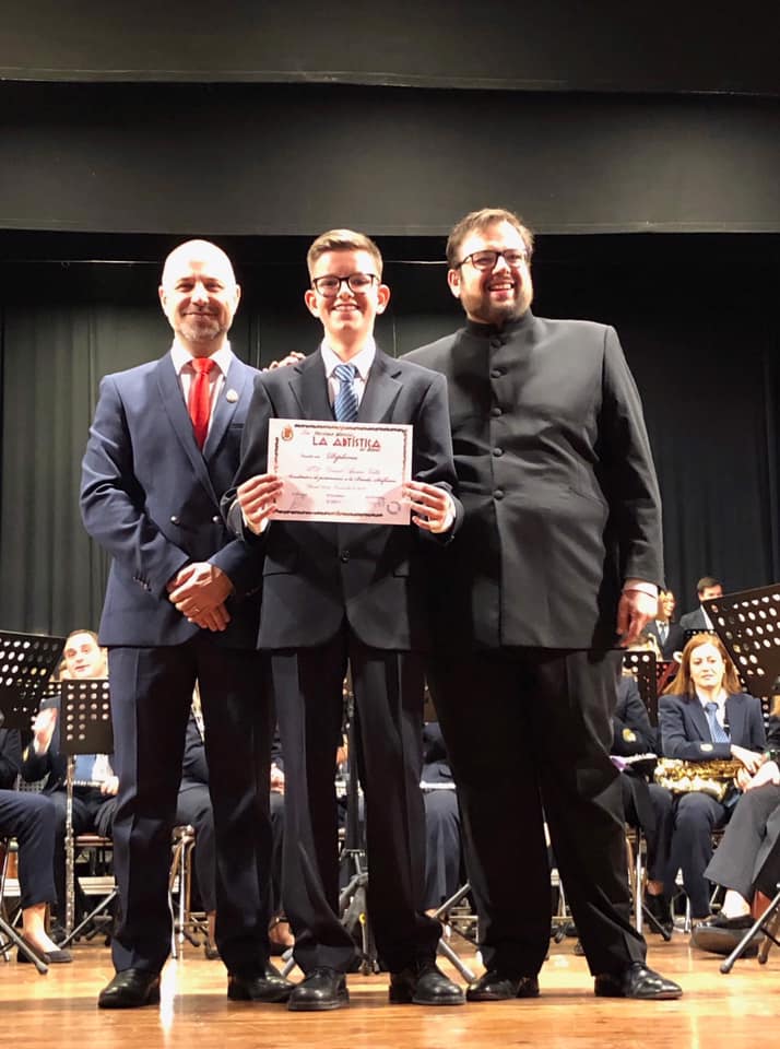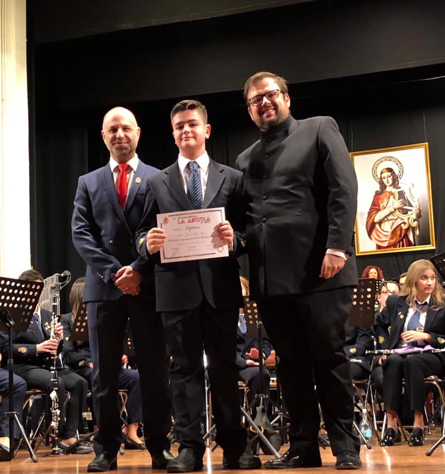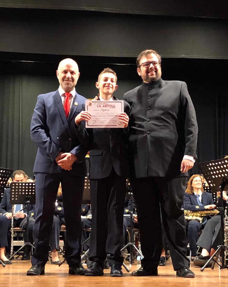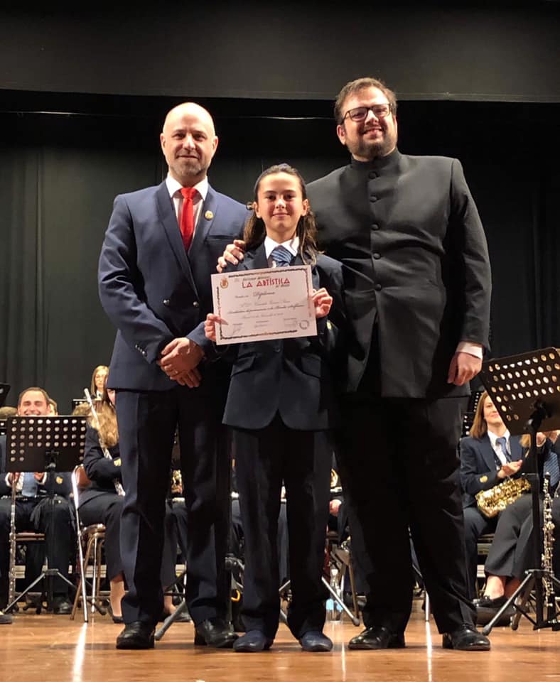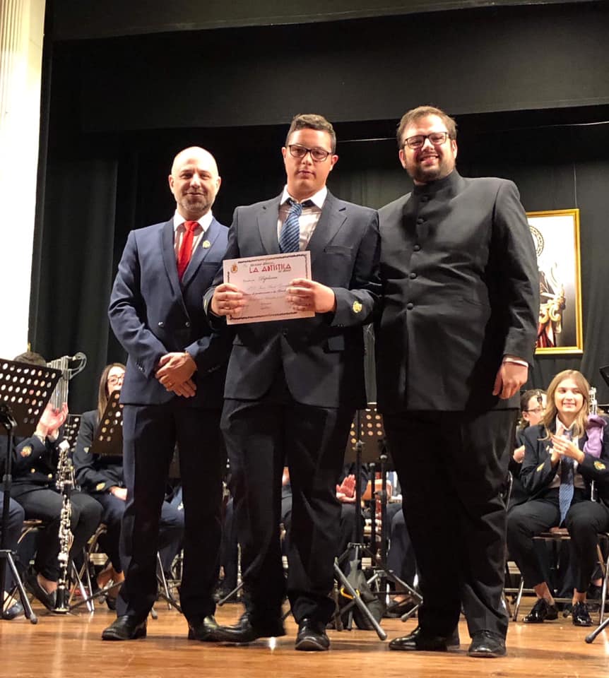 Redacción.- La Banda Sinfónica de la Sociedad Musical «La Artística» de Buñol aprovechó su tradicional concierto en honor a Santa Cecilia para presentar a las y los nuevos músicos que se incorporan a la formación. Fue un acto muy emotivo, donde los jóvenes músicos se mostraron nerviosos por el acto en sí, no por tener que tocar con la Banda Sinfónica. Uno a uno fueron subiendo al escenario y recogieron un diploma que les acredita como nuevos integrantes de la banda. Les hizo entrega de este diploma el presidente de la sociedad, Francisco Blasco, acompañado del director, Mario Ortuño.