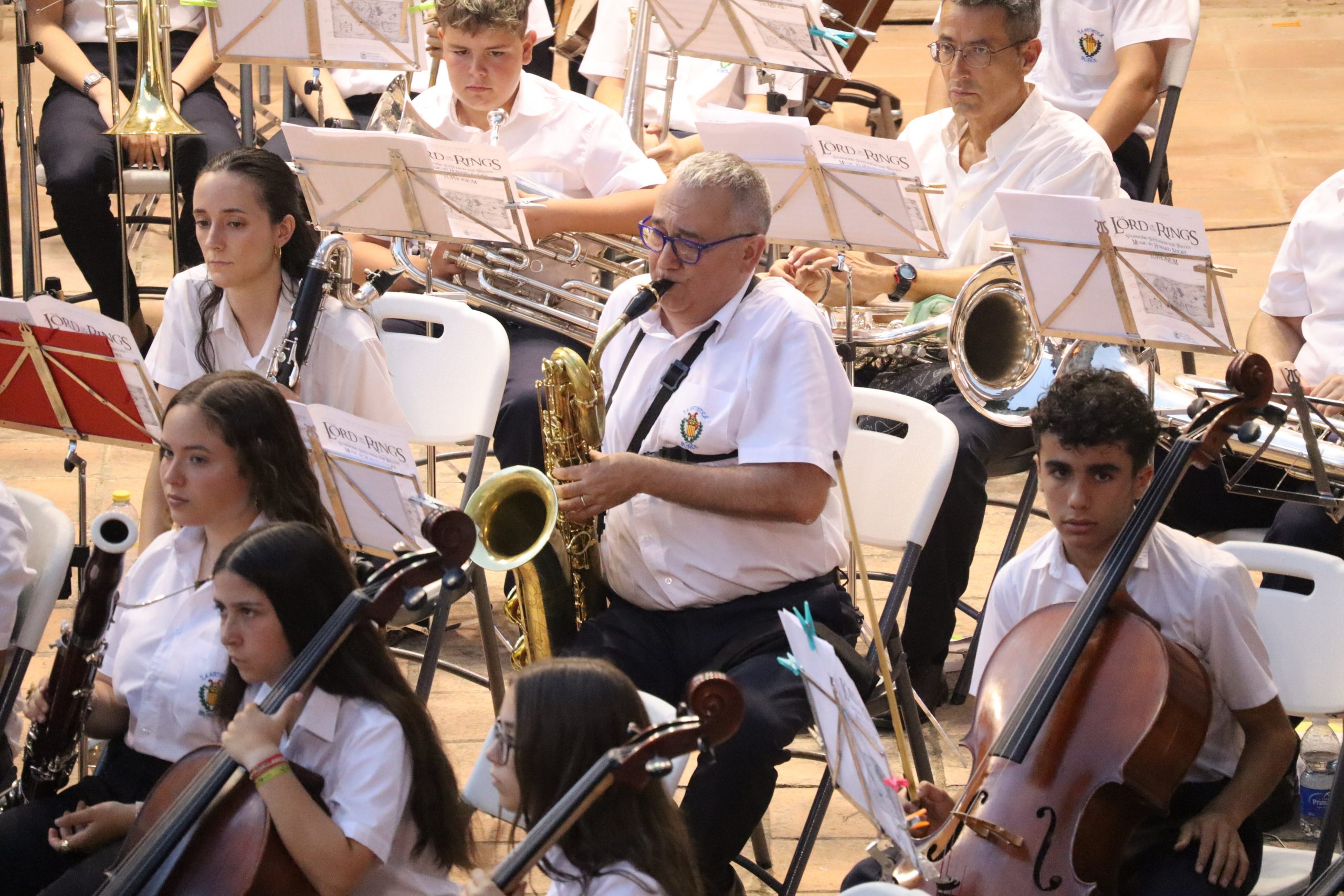 Durante el concierto, los asistentes disfrutaron de piezas como Benaguacil, Tariq’s, Te Deum, o la suite Roma Invicta, compuesta por el valenciano Raúl Doménech Rubio, y cuyo carácter épico enlazó con la pieza final del programa: la imponente banda sonora de “El Señor de los Anillos” de Howard Shore, que será precisamente la obra con la que competirán en el certamen de Azuaga.