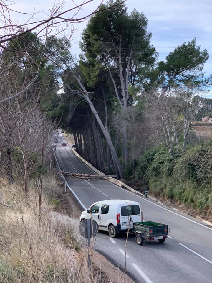 Redacción.- Tal y como ha podido saber hoyunclick.es, la caída de un árbol a causa del fuerte viento que azota la Hoya de Buñol ha obligado a cortar la carretera CV-425, entre Buñol y Alborache, durante varias horas. Según Protección Civil, «afortunadamente el árbol no ha causado daños personales, ya que en ese momento ningún vehículo pasaba por la zona«.